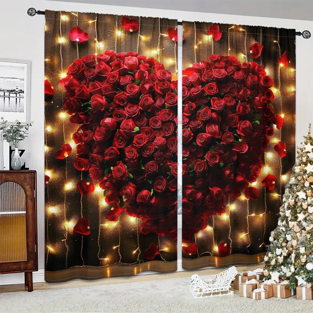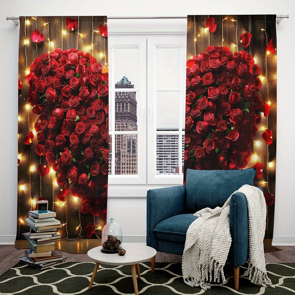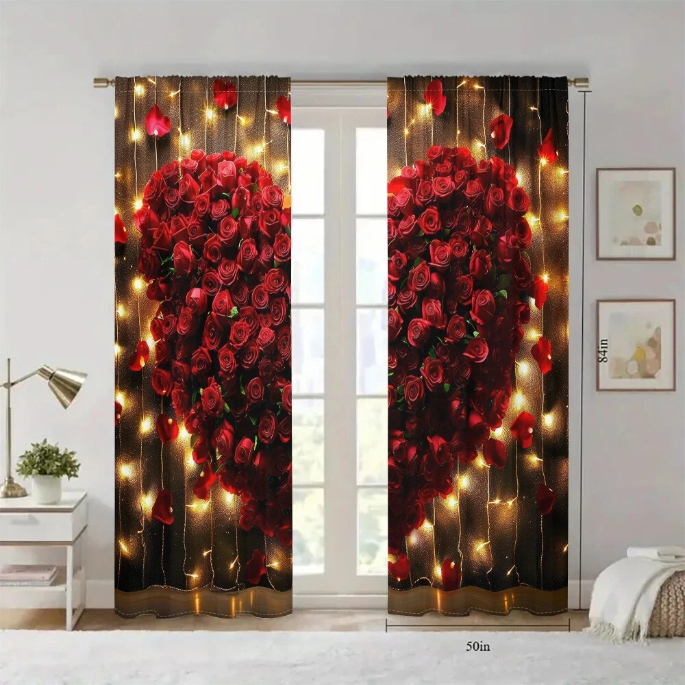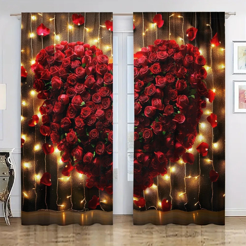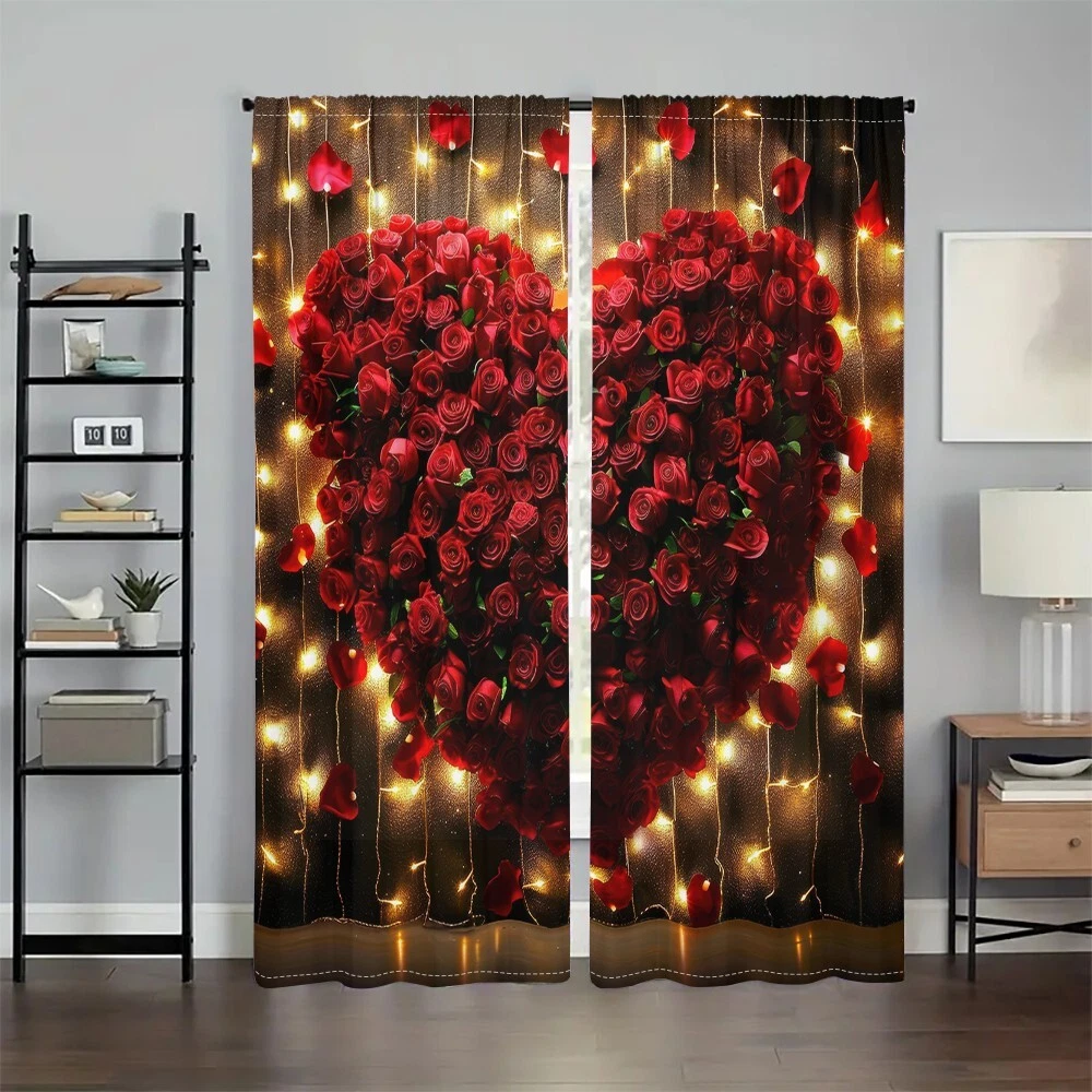 2Pcs Romantic Valentine's Day Window Curtain Drapes Bedroom Living Room Kitchen