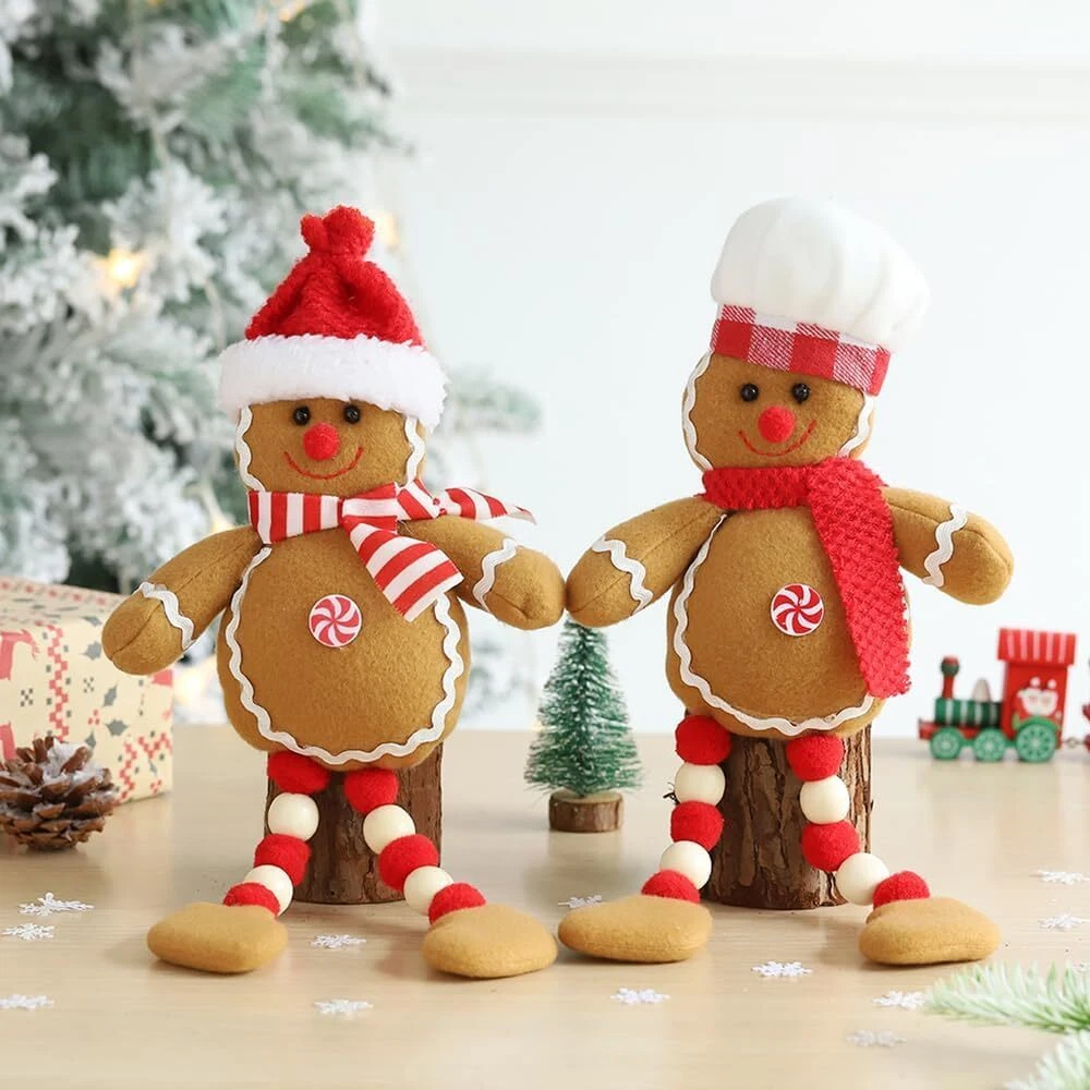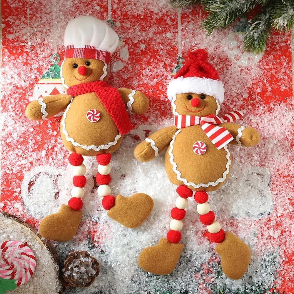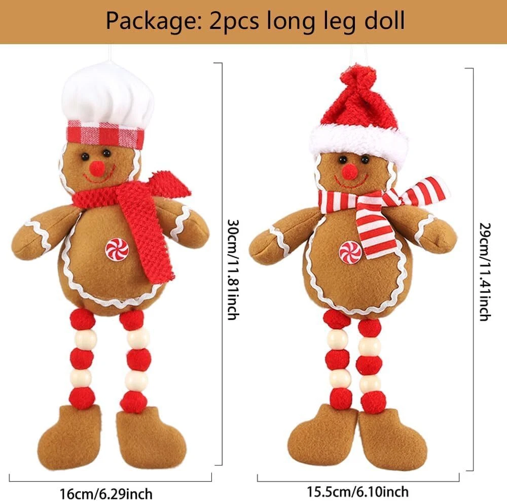 2Pcs/Set Christmas Hanging Gingerbread Man Ornaments, Plush Stuffed Figures with Chef Christmas Hat and Scarf for Xmas Tree New Year Birthday Home Party Decorations Gingerbread Man Ornaments: There is a hanging rope on the top, you can hanging them in Christmas tree, Christmas branches, fireplaces, balcony, indoor/outdoor scene, ceiling or any place. It would be a great festival gift to your family and friends Package Include: The set contains 1pc 11.8x6.3inch gingerbread man wear chef hat, and 1pc 11.4x6.1inch gingerbread man wear christmas hat, the two legs made of bead strings, which looks slender and eye-catching, will bring you so much fun High Quality: The Gingerbread Man ornaments are made from premium plush and elastic polyester, the stitching is strong and the touch is soft, the design is classic and lovely. They are not easy to break. It is perfect for personalizing your Christmas decoration Widely Applications: You can use it in many occasions, such as Christmas tree party, gingerbread theme party, new year eve party, home party, birthday party, wedding party, baby shower party, anniversary party and so on... Please Note: If you have any questions or problems with our products, please send us an email and we will solve it for you until you are satisfied