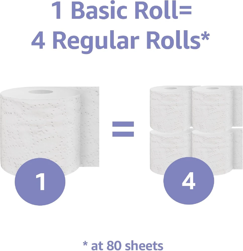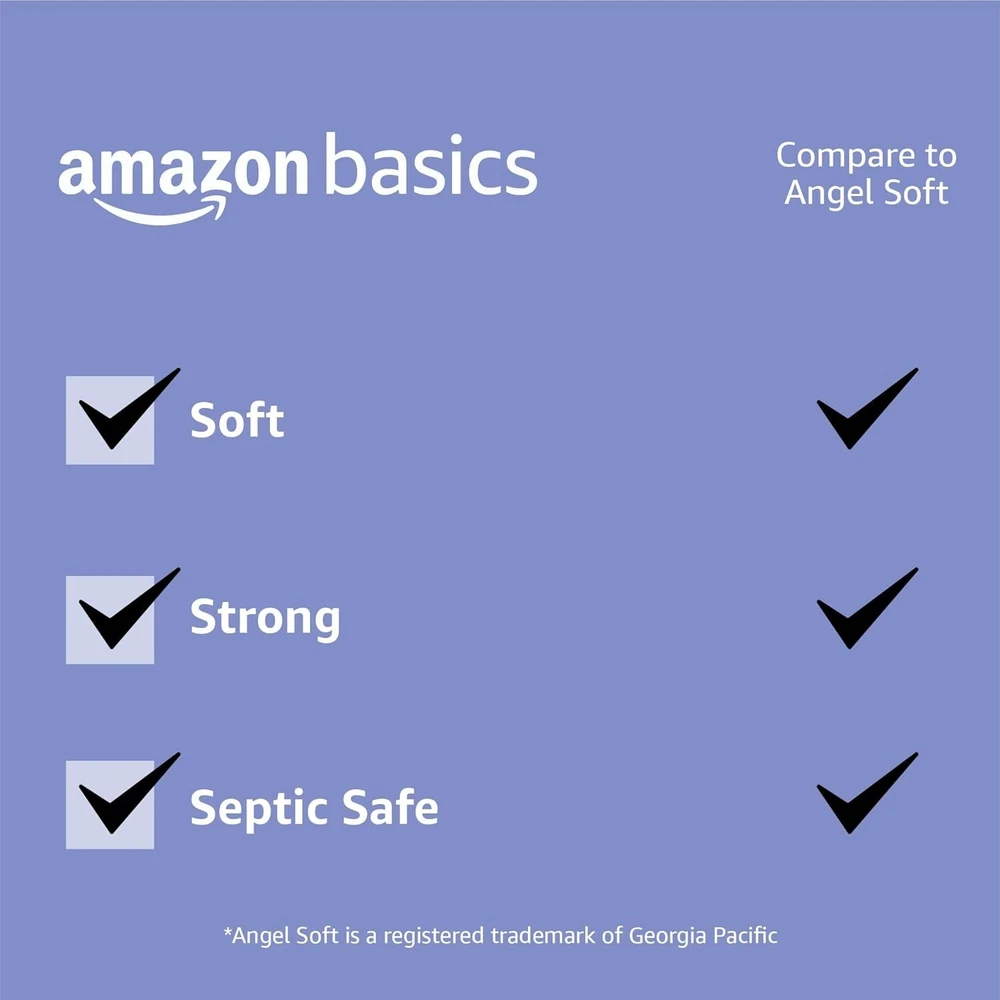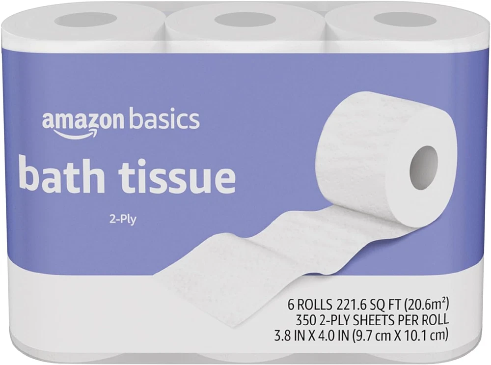 IN THE PACK: 6 Rolls with 350 2-ply sheets per roll TOTAL SHEETS: 6 rolls of Amazon Basics bath tissue for a total of 2,100 sheets GREAT VALUE: Each roll has 4.3 times more sheets than a regular roll (based on regular rolls with 80 sheets) SEPTIC SAFE: bath tissue is suitable for well-maintained sewer and septic systems TRY AMAZON BASICS: If you like Angel Soft, you'll love Amazon Basics toilet paper Upgrade your bathroom experience with Amazon Basics 2-Ply Toilet Paper, the practical choice for households seeking affordability without compromising on performance. Amazon Basics 2-Ply Toilet Paper, now in a convenient pack of 6 rolls of toilet paper for your everyday needs. Each roll boasts 350 2-ply sheets, ensuring ample coverage and durability for a satisfying clean.