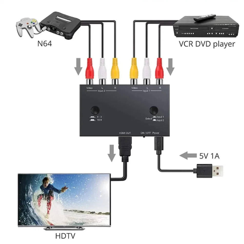 SAFE & SECURE SHOPPING 100% SATISFACTION GUARANTEED FAST SHIPPING Store Categories Store Categories Other Game Acc (Arcade and others) Watch Acc (Movement and Tools) DJI Acc and Other RC Parts Earphone Acc Home&Garden Health&Beauty Music Instruments & Parts Consumer Electronics Auto Parts Toys Office Supplies Business & Industrial Pet Supplies Sporting Goods Military Model Others You may also like You may also like 100* New Self-Adhesive anti collision Rubber Feet Small Round Bumpers 8mm 3.99 USD 3.99 USD EVA Storage Bag Protective Pouch Case for Sony PSP1000/2000/3000 Game Console 13.07 USD 20PCS Soft Plastic Golf Shoe Spikes Replacement Cleat Fast Twist For Adida Champ 12.99 USD 2.4-2.48GHz RC Car Boat Remote Control Receiver Transmitter 4CH LED Indicator 9.99 USD 3.99 USD RC Car Brushed ESC 60A Waterproof Electronic Speed Controller For 1/10 RC 19.07 USD Protector Gimbal Camera Cover Transparent Cap For DJI Mavic Pro Drone Quadcopter 5.99 USD 3.99 USD 2 Port AV To HDMI Converter 2RCA To HDMI Dual AV To HDMI Adapter AV Switcher Product Description Features: 1. 2 Port to HDMI Converter: Connect to Two RCA Sources (such as DVD and for N64) at the Same Time to Avoid Frequent Plugging and Unplugging, Facilitatingthe Use of Multiple Devices 2. Support HDMI Output: 2AV to HDMI Converter is a Universal Converter for Analog Composite Input to HDMI 1080p 60HZ Output 3. Plug and Play: Plug and Play, no Driver Installation Required. Support 4:3 and 16:9 Outputs, Easy Switching. Support PAL, NTSC3.58, NTSC4.43, SECAM, PAL/M, PAL/N Standard TV Format Input 4. Extensive Compatibility: AV to HDMI Converter with for N64, For PS2/3, for SEGA Saturn/ for GENESIS, for PS ONE, for VCR DVD Player, TV and Projector etc 5. 2AV Switcher/2AV To HDMI Converter: Provide Advanced Signal Processing with Greatprecision, Colors, Resolutions, and Details. 2 Port AV to HDMI Converter Specifications: Input Ports: 2xRCA (Yellow, White, Red) Output Ports: 1xHDMI Support for PAL/ for NTSC_M/ for NTSC4.43/ for SECAM/ for PLA-M/ for PAL-N Support resolution: Up to 1080p60hz Power Supply: DC5V1A(Not included 5V1A power adapter) Product List: 1x 2 Port AV To HDMI Converter 1x USB Power Cable 1x HDMI Cable 1x User Manual Shipping Payment Returns Contact Us Shipping 1. Items sent from US warehouse. 2.Receiving time = Processing time + Shipping time. 3. Processing Time: Around 1-2 business Days. 4. Shipping Time: 3-5 business day. it may have a little delay during some holiday (such as Christmas),any problem ,please feel free to contact. Payment We accept all verified payment from eBay. Returns 1. 30 days warranty from the purchased date. Please contact us via email before returning the defective item. 2.Our warranty does not extended to any product that are physically damaged or that are not under normal operating conditions as result of misuse or improper installation on the buyer/user's part. 3.Return items should include the original packaging and all accessories. buyers MUST contact us for the returning address. 4.In all cases, buyers pay shipping fees at their own cost to return products for exchange or refund. We will be responsible for the postage of replacements. Refund will be made upon receipt of the returned item. Contact Us Pls contact us if you have any problems,we will try our best to solve for you. Copyright © 2022 Tongtool