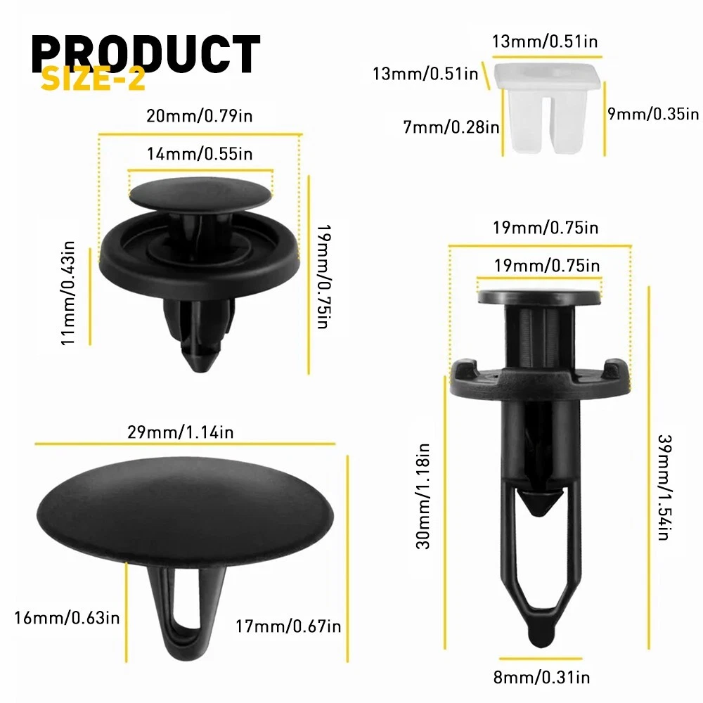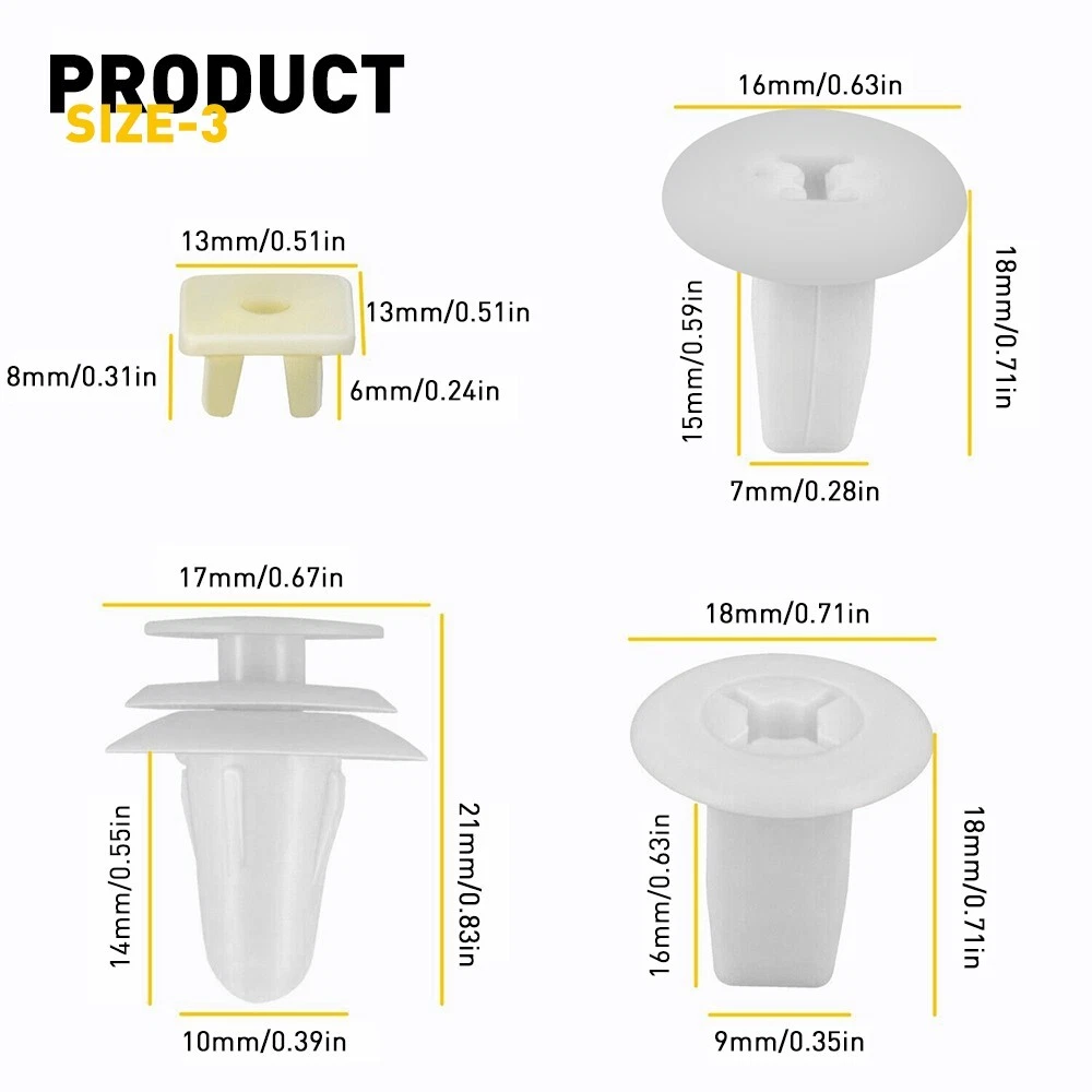 Specification: 10 Pcs Door Trim Panel Retainer White Nylon Top Head Diameter: 13mm Middle Head Diameter: 15.5mm Bottom Head Diameter: 18mm Stem Length: 14mm Overall Length: 20.5mm Stem Diameter: 9.5mm For Isuzu Replaces 8942264920 For Mazda Replaces 9927-40-825 For Toyota Replaces 67771-01010 For Toyota Replaces 67771-12010 For Auveco A14269 18 Pcs Nylon Screw Grommet Natural Nylon #10 Screw Size Width: 13mm Length: 13mm Snaps Into 8.5mm x 8.5mm Hole For Toyota Replaces 90189-06010 For Honda Replaces 75521-611-0000 For Mazda Replaces 9991-00-601 2SET For Toyota Fender Door Hood Bumper Trim Clip Retainer Fastener Assortment Specification: 10 Pcs Door Trim Panel Retainer White Nylon Top Head Diameter: 13mm Middle Head Diameter: 15.5mm Bottom Head Diameter: 18mm Stem Length: 14mm Overall Length: 20.5mm Stem Diameter: 9.5mm For Isuzu Replaces 8942264920 For Mazda Replaces 9927-40-825 For Toyota Replaces 67771-01010 For Toyota Replaces 67771-12010 For Auveco A14269 18 Pcs Nylon Screw Grommet Natural Nylon #10 Screw Size Width: 13mm Length: 13mm Snaps Into 8.5mm x 8.5mm Hole For Toyota Replaces 90189-06010 For Honda Replaces 75521-611-0000 For Mazda Replaces 9991-00-601 Fits For Nissan Replaces 96706-P0105 For Auveco A14274 12 Pcs Screw Type Retainer Material: Black Nylon Head Diameter: 15mm Stem Length: 12mm Fits Into 7mm Hole For Auveco A14260 For GM Replace 20426301 For Mazda Replace 9926-50-625 For Toyota Replace 90467-06017 For Toyota Replace 90467-06017-20 For Toyota Replace 90467-06017-41 18 Pcs Headlight And Grill Nut #10 Screw Size 12mm Wide, 12mm Long Fits into 8mm x 9mm Hole For Toyota Replaces 90189-05013 For Mitsubishi Replaces MS-480002 For Auveco A13932 10 Pcs Fender Liner Retainer Push Type Clip Black Nylon Head Diameter: 20mm (13/16") Stem Length: 8mm (5/16") Fits Hole Size: 7mm (9/32") Fits For Toyota Replaces 90467-07166 For Auveco A18888 12 Pcs #10 Screw Grommet Natural Nylon #10 Screw Size Head Diameter: 18 mm (23/32 inches) Stem Length: 17 mm (21/32 inches) Fits Into 8.5 mm Square Hole Fits For Nissan Replaces 01281-00023 Fits For Toyota Replaces 90189-06001 Fits For Mitsubishi Replaces MB-098145 Fits For Alfa / For Fiat / For Lancia Replaces 14203780 For Auveco A14275 10 Pcs Rear Bumper Cover Clip Push-Type Retainer Black Nylon Head Diameter 18mm (0.71 inch) Stem Length 28mm (1.10 inch) Fits into 9mm Hole (0.35 inch) Fits For Tercel 1988-On Fits For Camry 1988-On Fits For Celica 1996-On Fits For 4 Runner 2003-On Fits For Hi-lux 2003-On Fits For Toyota Replaces 52161-16010 Fits For Toyota Replaces 52161-02020 For Auveco A18873 12 Pcs Screw Grommet With Sealer #6 Screw Size Natural Nylon Head Diameter: 14mm Stem Length: 10mm Fits Into 7mm x 7mm Hole For Honda Replaces 90662-693-0030 For Honda Replaces 90662-693-003 For Toyota Replaces 9018-04066 For Auveco A14281 18 Pcs Trim Panel & Hood Seal Clip Black Nylon Head Diameter: 13mm Stem Length: 11mm Fits Into 5mm Hole For Toyota Replace 90467-08004 For Toyota Replace 90467-08011 For GM Replace 94842841, 94849113 For Geo Prizm 1985-On For Nova 1985-On For Auveco A18297 8 Pcs Front & Rear Wheel Fender Liner Screw Grommet Black Nylon #12 Screw Size Head Diameter: 16mm Stem Length: 19mm Fits Into 9mm x 9mm Hole For Toyota Replaces 90189-06028 For Tacoma, T100 & 4 Runner 1992-On For GM Replaces 94854203 For Chevrolet Nova & Prizm 1985-On For Pontiac Vibe 1985-On For Auveco A19194 8 Pcs Hood Insulation Retaining Clip Hood Pad Insulation, Package Tray Panel, Luggage Compartment Mat Black Nylon Head Diameter: 30mm Stem Length: 17mm Fits 7mm Hole Panel Thickness: 6mm Fits For MR2 1989-On For GM Nova 1985-On For Toyota Replaces 90467-09008 For Auveco A14738 10 Pcs Screw Grommet Black Nylon 1/4" (#14) or M6.3-1.81 Screw Size Head Diameter: 20mm Stem Length: 17mm Fits Into 8mm x 8mm Hole For Toyota Replaces 90189-06013 For Toyota Replaces 96706-W100 For Auveco A14267 Features: *Superior material Adopt to excellent metal and plastic materials to prevent it from corrosion and cracking. *Easy installation Simple installation with direct replacement, other modification is not required. *Please Note: Communication is the best way to solve the problem. If you have any problems after purchasing, please contact us via eBay Message, before return. *Usage They can be used for Hood, Bumper, Fender Liner Retainer, Rear Bumper Cover Clip Push-Type Retainer, Screw Type Retainer, Door Trim Panel Retainer, Trim Panel & Hood Seal Clip, Nylon Screw Grommet replacement. It fits for Auto Car SUV Off-Road Pickup Truck. Package Included: 10 Pcs Door Trim Panel Retainer 18 Pcs Nylon Screw Grommet 12 Pcs Screw Type Retainer 18 Pcs Headlight And Grill Nut 10 Pcs Hood, Bumper, Fender 12 Pcs #10 Screw Grommet 10 Pcs Rear Bumper Cover Clip 12 Pcs Screw Grommet With Sealer 18 Pcs Trim Panel & Hood Seal Clip 8 Pcs Front & Rear Wheel 8 Pcs Hood Insulation Retaining Clip 10 Pcs Screw Grommet Item Specifics Brand Unbranded Type Clips Color Black,White Placement on Vehicle Left, Right, Front, Rear, Upper, Lower Features Easy Installation Material Plastic Universal Fitment No Manufacturer Warranty 1 Year Fitment Type Direct Replacement Package Include 146pcs Clips Application 1 Screw Fender Body Door Trim Panel Hood Application 2 Under Engine Splash Guard Rivet Fastener Clips Application 3 Universal For Auto Car SUV Off-Road Pickup Truck Application 4 146Pcs Car Push Pin Rivet Trim Clip Assortment Kit FAQ ♥ If you have a decoding problem or any other problems, please contact us first, we will help you with it. We will reply you within 24 hours in working days. I'm a new seller, thanks a lot for your trust and convince! I will serve you with all my heart. ♥ Q1: Will this bulb fit my vehicle? A: We can match almost any vehicle to one of our bulb sizes. eBay only lets us include some vehicle fitments per listing, but if your vehicle does not show up on the compatibility table at the top of our listings, welcome you to contact us for free consulation before purchasing a p