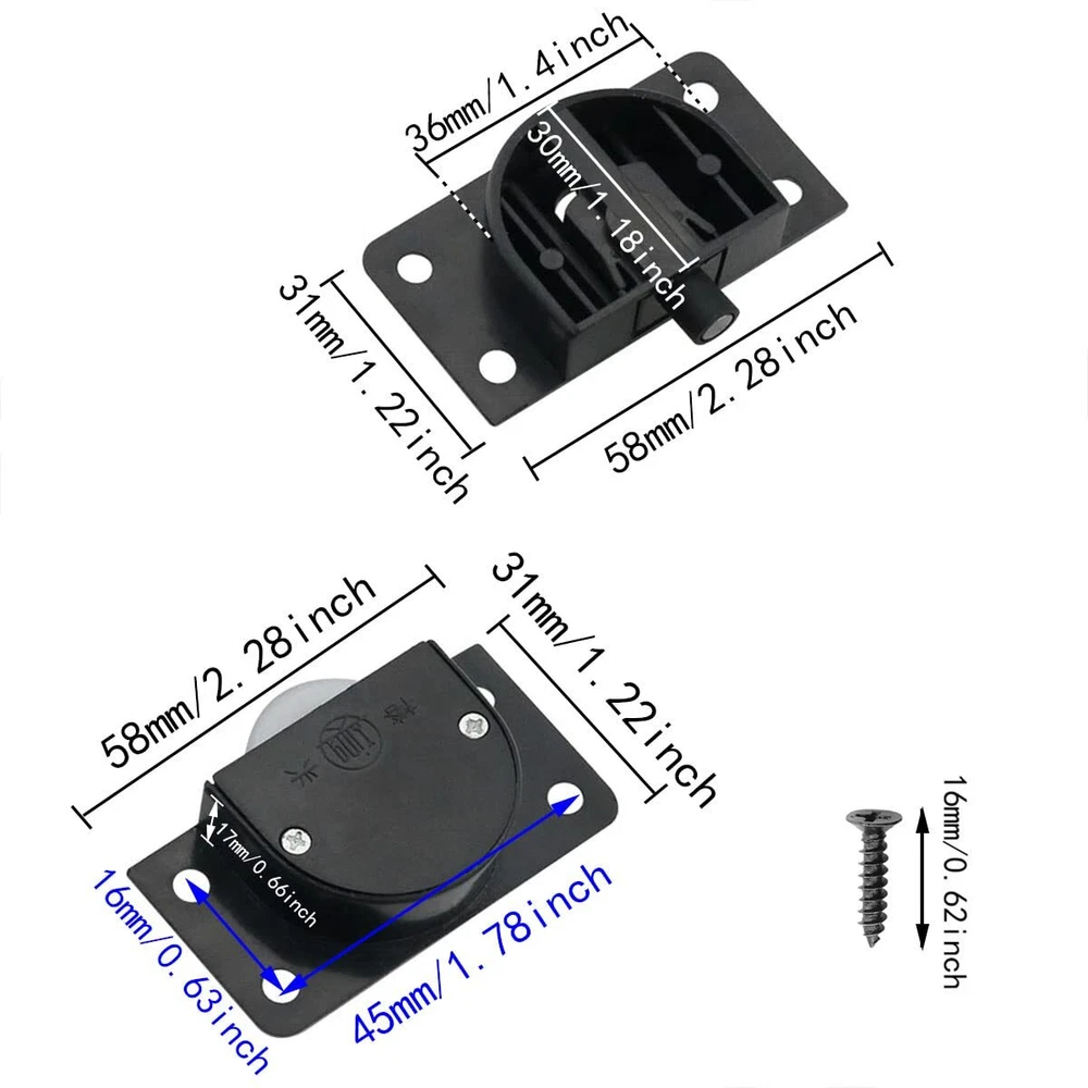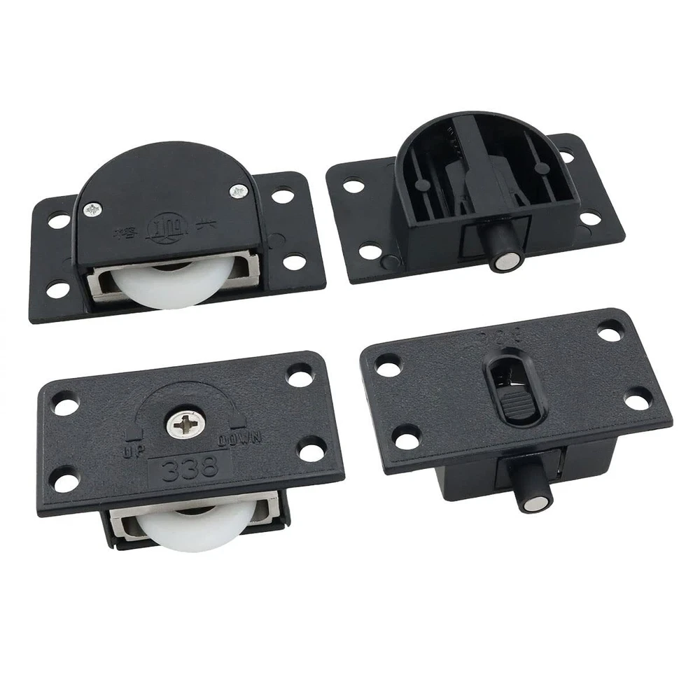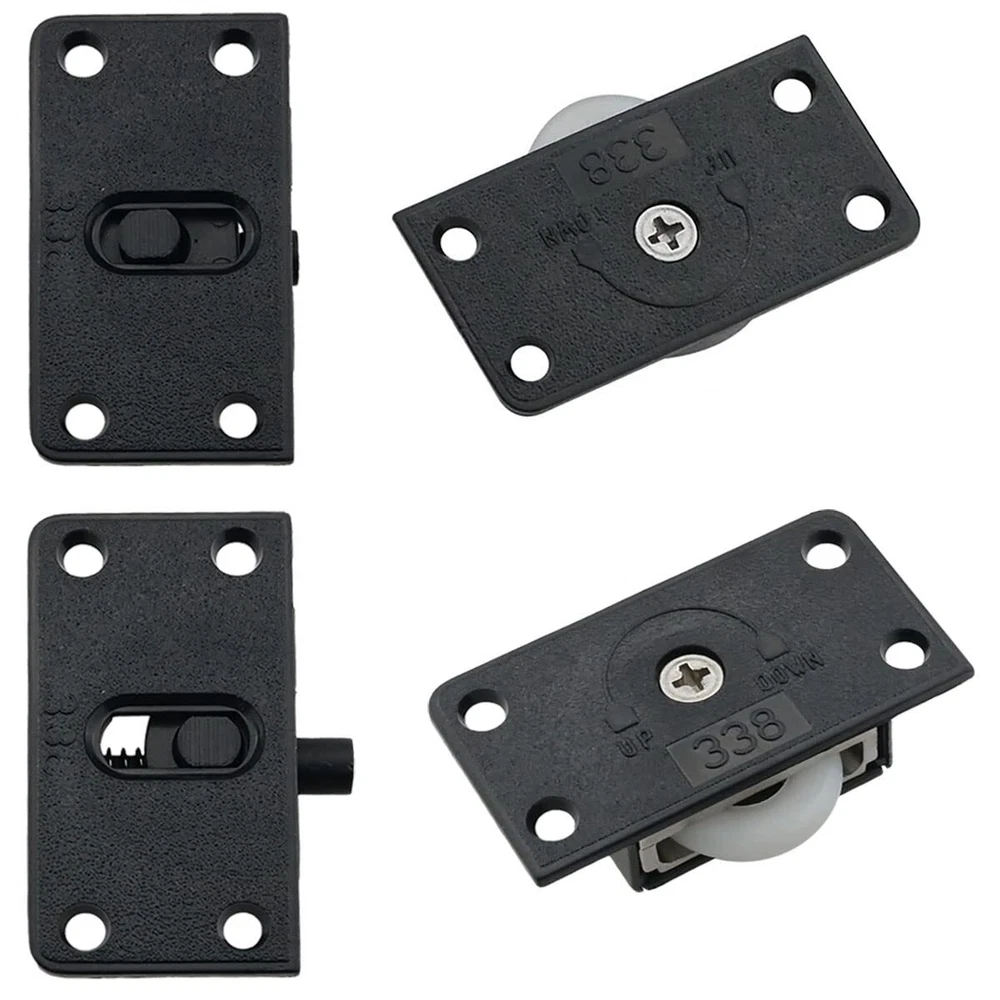 Material: ABS, Nylon Colour: Black Size: 58 x 31mm / 2.28 x 1.22 Inch (please refer to the picture for detailed size information) Column-type upper wheel: 360-degree rotation, adjustable switch, one-click pop-up, convenient and fast. Package content: 2X sliding door rollers (4 pieces in total) 16x screws Notice: 1. Manual measurement, the size is slightly wrong. 2. Due to different screens, there may be slight differences in color. Easy installation: we provide you with and installation screws, which can be installed with simple tools, making your sliding door slide more easily and labor-saving. High quality material: it is made of high-quality ABS and nylon materials. It is durable and environmentally friendly. It has strong toughness and wear resistance. It can be used for a long time and is not easy to be damaged. Smooth pushing and pulling: the built-in metal bearing structure makes sliding more smooth and stable. Nylon wheels can effectively reduce noise and will not disturb your quiet and comfortable atmosphere. Widely used: widely used in sliding doors, drawers, windows, closets, cabinets, wardrobes, etc. Suitable for families, hotels, classrooms, offices, etc. Package content: you will receive 2 sets (4 pieces in total) of sliding door rollers and some mounting screws to meet your use needs. Please confirm the product size before purchasing.