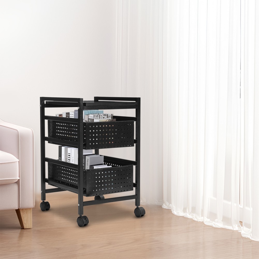 2-Tier File Storage Drawer Cart Organizer on Wheels for Home Office Small Space Description Our file storage cart is both stylish and practical. Made of high-quality carbon steel, it is sturdy and durable. It has enough storage space for you to categorize and store most kinds of files, providing you with a neater and more comfortable living environment. This is a practical storage product—bring it home! Key Features High-quality Material : It is made of high-quality carbon steel, with a s pray coating process, which is sturdy, r ust-resistant, and corrosion-resistant , ensuring a long service life. Elegant Appearance : The classic black color, rectangular shape, and smooth line give it a simple style, so it can match various scenes to create a minimalist atmosphere. Excellent Load-bearing Capacity : The high-quality material and sturdy structure give it a strong load-bearing capacity of 44.09 lbs, allowing you to place various items safely. Storage Assistant: The product is designed with 2 tiers and one top platform to categorize and store your items, such as the lower two-tier drawers for books, files, etc., and the top platform for table lamps, napkins, pen holders, cups, and other items to make your life more neat. Easy to Move& Fix: Equipped with 4 universal wheels (2 with brakes), this product can be moved from one room to another smoothly and easily, or fixed stably in the corner. Thoughtful Design: The open top and the drawers with evenly distributed holes allow for excellent ventilation, ensuring the storage space is dry and avoiding bacteria growth. Convenient to Clean : The simple structure and removable drawers make it easy to clean. All you need to do is wipe it gently with a damp cloth (not included). Protective Package: Foam can effectively reduce the normal impact and ensure that it is fully delivered to you to the greatest extent. Ideal Gift: This is an ideal gift for friends, family, and storage enthusiasts on housewarming days or various holidays, helping them save space and keep their work/living space tidy. Buy with Confidence: We stand behind all our guests and look forward to assisting you with your purchase. It is our pleasure to answer your confusion and questions. The end of the story between us is not "we sell and you buy". Details Raised Bottom: It is conducive to moisture resistance and facilitates cleaning. Smooth Edges: They no t only increase the beauty of the product but also improve the safety of use. Application It is suitable for bedrooms, study rooms, offices, and other places. Specification Color: Black Style: Modern Shape: Rectangle Material: Carbon Steel Process: Spray Coating Assembly Required: Yes Mount Type: Free Standing Number of Tiers: 2(Not Including the Top) Total Load-bearing Capacity: 20kg/44.09 lbs Each Drawer Size: 42*30.5*14cm/16.54*12.01*5.51in Product Size: 37.8 *43*68 cm/14.88*16.93*26.77in Package Size: 44 *31*10 cm/ 17.32 * 12.2 * 3.94 in Gross Weight: 6kg/13.23lbs Net Weight: 5.5kg/12.12lbs Package Included 1* File Storage Cart 4* Universal Wheels All Accessories for Assembly Notes Please carefully check if the size is suitable before placing an order. Please note that this product does not include files and other storage items. Please allow the slight color difference caused by the shooting light and 1-3cm error due to manual measurement. Please make sure you do not mind before you order. Brand OCASAMI Color Black Style Modern Shape Rectangle Material Carbon Steel Process Spray Coating Assembly Required Yes Mount Type Free Standing Number of Tiers 2(Not Including the Top) Total Load-bearing Capacity 20kg/44.09 lbs Each Drawer Size 42*30.5*14cm/16.54*12.01*5.51in Product Size 37.8*43*68cm/14.88*16.93*26.77in Gross Weight 6kg/13.23lbs Net Weight 5.5kg/12.12lbs Item Length 37.8cm Item Height 43cm Item Width 68cm Type File Storage Cart