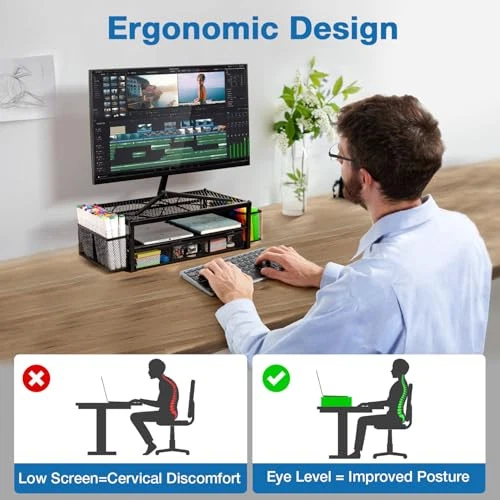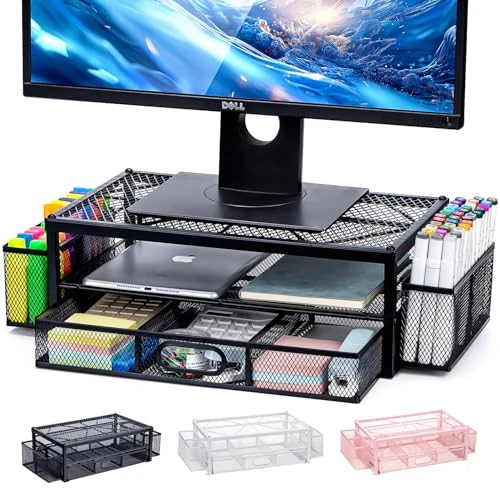 Menu 1. We require immediate payment. 2. We currently accept payment via eBay managed payments only. 3. Once payment is cleared, we will dispatch your shipment within 1-3 business days. Please refer to the "Shipping" tab for more information regarding shipping speed to your destination. 2-Tier Monitor Stand for Desk, Metal Computer Monitor Riser with Drawer and 2 Pen Holders, Laptop Riser Mesh Desk Organizer for Home Office Supplies Desktop Accessories, Black Product description ❥【Ergonomic Posture】Elevate your monitor or laptop to eye level with this updated metal desktop computer riser with drawer storage, so that you can maintain a more ergonomic posture, reducing neck and shoulder strain while you work, and keep your workspace organized and clutter-free. ❥【Organized Workspace】The 2-Tier monitor riser for desk includes one sliding tray + one sliding drawer with 3 compartments + 2 hanging pen holders, providing ample storage space for various office desk accessories, allowing for easy categorization and improving work efficiency. ❥【Durable and Ventilated】Made of solid steel metal, this computer stand is sturdy (33 lbs capacity), stable, and not prone to dent or damage, and is easily cleaned with a soft cloth. Its mesh ventilated design increases cooling and airflow for your laptop to increase its performance. ❥【Sleek and Versatile】Durable two-tier desk organizer can be used as a laptop or printer stand, monitor riser, or overall computer organizer with storage for all your office supplies and essentials. It has compact size, sleek design with clean lines, adding a contemporary aesthetic touch to any desk decor, ideal for home and office organization. ❥【Satisfying Your Needs】The 2-tier computer stand desk organizer is the right size for maximizing space. Easy assembly and wide compatibility. Reassuring purchase with 100% satisfaction service and 90 days return policy. Start an effective new year with an organized workspace now! PLEASE MESSAGE US IF YOU HAVE ANY OTHER QUESTIONS, AND MANY THANKS FOR READING ALL OF THIS. Copyright ©#. All Rights Reserved.