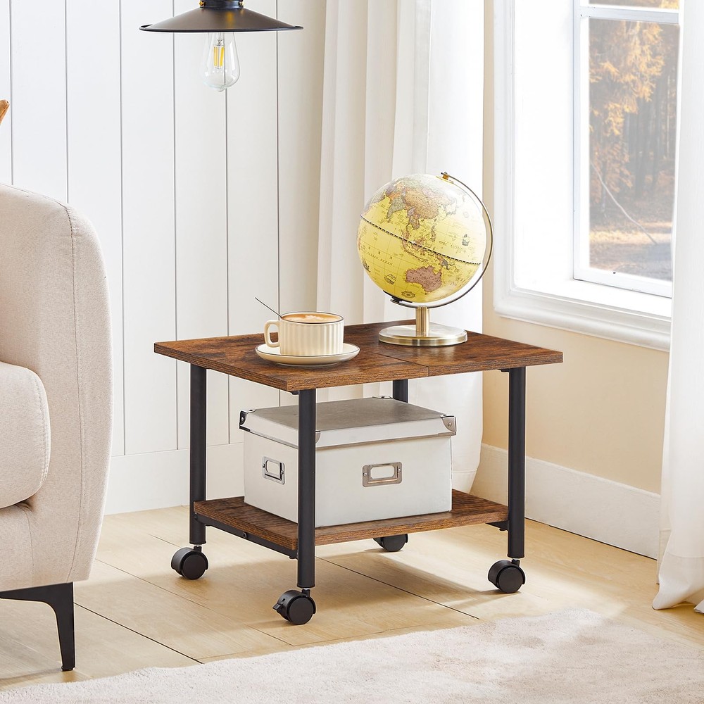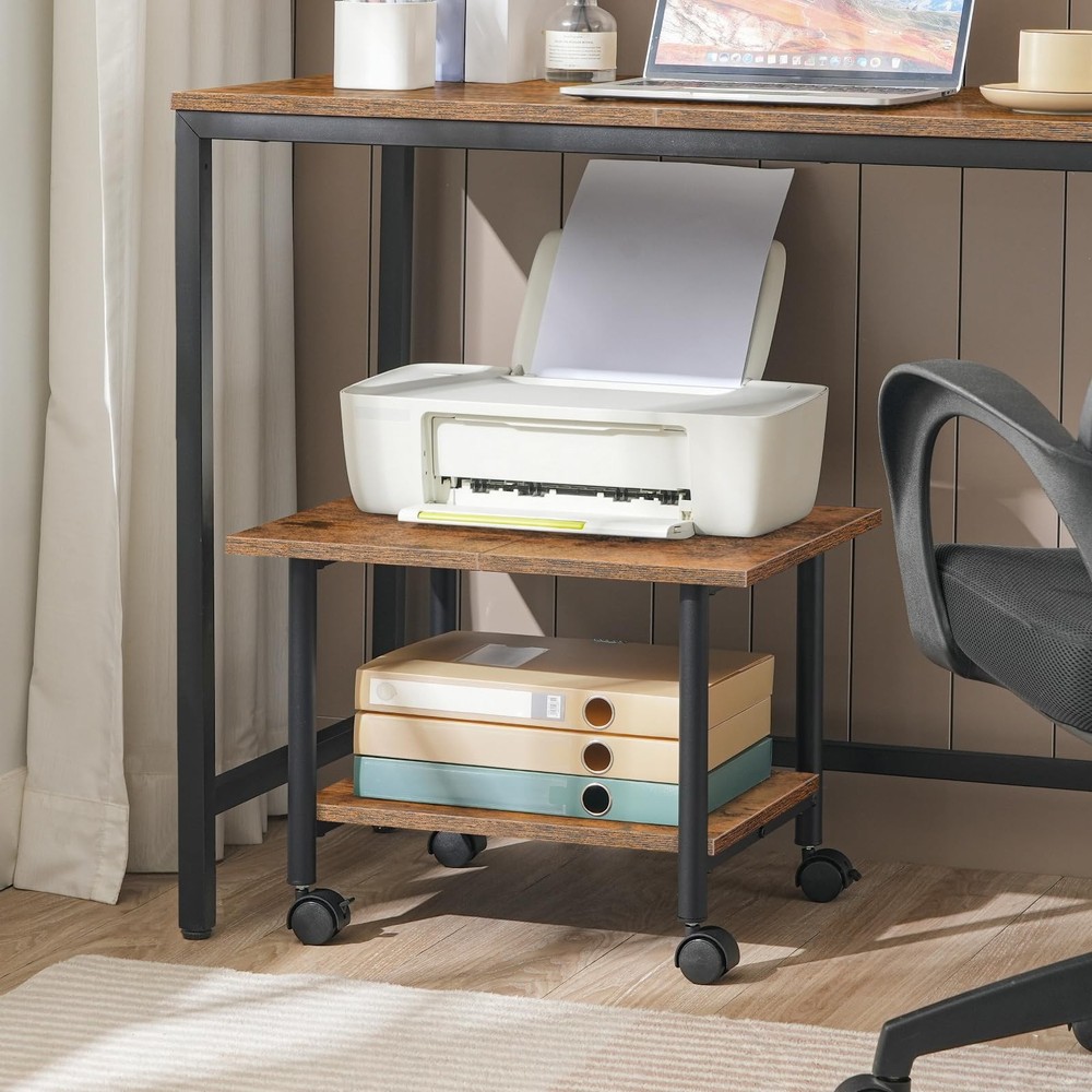 Printer Stand, 2-Tier Industrial Under Desk Printer Cart with Shelf, Mobile Heavy Duty Storage Rack on Wheels for Home, Office, Rustic Brown and Black BF02PS01G1 Office Efficiency: Copier or laser printer is placed on the stand next to you, scan, copy, or print will be done when sitting at the desk as the scanner, It is the right printer stand for the job! Great Storage Printer Stand: The printer table with 2 open shelves is a true space problem solver. Why not unload office machine and freed up precious space on the desk? And the shelves as a nice plus that store several reams of paper, as well as printer cartridges, stamps and clips Durable & Stable: A combination of well made iron frame and P2 chipboard panels gives the printer table great durability, with its thick black metal legs and under-shelf support rods guarantees its stability 2-Level Structure Printer Table :Dimensions: 19.1” x 15.7” x 14.4” (L x W x H). The upper shelf easily bears 88 lb and reliably holds a printer. And the bottom layer panel bears 33 lb. The height perfectly matches under the desk or desktop and makes office supplies easy to access Fixed or Mobile Printer Cart: The printer stand with storage is equipped with 2 lockable wheels so you can move it easily without having to lift it, thus saving energy and protecting the floor. Of course, if you want printer table to stay where it is, just lock the wheels Printer Stand is your right hand in office. Thick metal legs and extra support rods are important guarantees for its stability. You can put office supplies needed on the printer shelf to free up more work space. 2 lockable wheels allow to slide in or out easily without any effort. Specifications: - Color: Greige - Material: Particleboard, Metal - Product Size: 19.1'' L x 15.7'' W x 14.4'' H - Product Weight: 11 lb Package Contents: - 1 x Printer Stand - 1 x Accessory Kit - 1 x Allen Key - 1 x Instructions Notes: - Please don't expose the product to direct sunlight or place it in a damp environment. - Please keep the product away from sharp, pointed objects and corrosive chemicals. Shipping We offer FREE shipping on all orders! We ship within Three business days of payment, usually sooner. We use a selection of shipping services such as UPS, FedEx, USPS etc. We only ship to the lower 48 states, no APO/FPO addresses or PO Boxes allowed. Local pickups and combined shipping options are not provided at this time. Return You can return a product for up to 30 days from the date you purchased it. Any product you return must be in the same condition you received it and in the original packaging. Please keep the receipt. Payment We accept payment by any of the following methods: PayPal Please pay as soon as possible after winning an auction, as that will allow us to post your item to you sooner! Feedback Customer satisfaction is very important to us. If you have any problem with your order, please contact us and we will do our best to make you satisfied. Contact Us If you have any queries, please contact us via ebay. We usually respond within 24 hours on weekdays. Please visit our eBay store to check out other items for sale! Thank you for shopping at our store.
