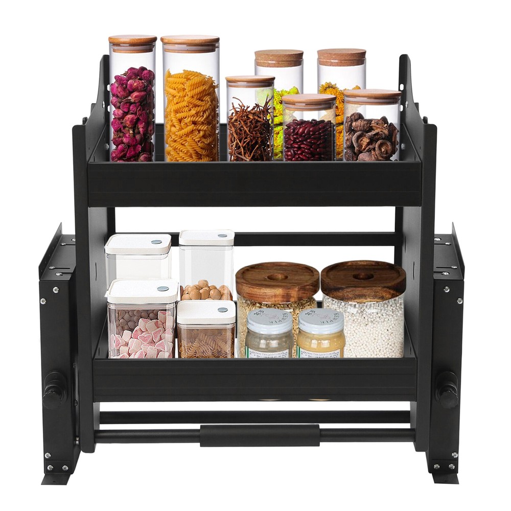 2-Tier Pull-Out Shelf Cabinet Shelf Drop Down Shelf Kitchen Pull-Down Cabinet 24 Inch Pull Down Shelf, Pull Down Shelf Cabinet Organizer, Kitchen Cabinet Pull Down Shelf, Convenient Heavy-Duty 2-Tier Wall Pull Down Shelf, High Cabinet Pull Down Shelf Description Are you still struggling with cluttered cabinets and inadequate kitchen space? Then you can't go wrong with our pull-down cabinet. It has a pull-down design, so you can easily get high items, which is convenient and fast. The double-layer basket design helps you make full use of the kitchen space. Such a beautiful and practical pull-down shelf is a good assistant for your kitchen. Key Features 1. High Load-bearing Capacity: Its thickened side panels guarantee a solid structure and a strong load capacity (up to 30 kg/66lbs) to bear kitchen utensils with ease. 2. Improved Space Utilisation: It takes full advantage of the unreachable high cupboard space while adding working space to the bottom worktop, increasing space utilization without taking up space for routine activities and making the room more spacious. 3. Large Capacity: The double-layer enlarged laminate (25.19*9.64*1.77in) has enough capacity to easily meet your daily storage needs. 4. Pull-down Design: The pull-down design lowers the access height by 36cm/14.17in, making it easy to access items without climbing, so the whole family can use it. 5. Sturdy and Durable: The frame is made of iron with a painted surface and the basket is made of aluminum, which is strong, wear-resistant, and rust-proof, ensuring a long service life. 6. Adjustable Design: The pull-down shelf has three adjustable bearing strengths, 22lbs/33lbs/55lbs, which can be adjusted freely according to the weight of the items placed. The two sides of the fixed support can be adjusted by 5cm, which is well adapted to the width of your cabinet. 7. Buffer Function: The hydraulic damping booster design can prevent abrupt lowering and homing, ensuring a stable, smooth, silent, effortless pull-down and return, to give you a good user experience. 8. Easy to Install: Its simple construction and complete range of mounting accessories facilitate installation. You can install it independently in a short time. 9. Good Decorative Effect: It introduces the simple black style design of Northern Europe, and its appearance is simple and atmospheric. It can be better matched with kitchen decoration style and tableware, and become a decorative addition to your kitchen. 10. Customer Service: We aim to provide quality products and services. If you have any problems, please feel free to contact us. We will reply and solve the problem for you as soon as possible. Details 1. Anti-slip Handle: The drop bar comes with a non-slip silicone handle for a comfortable grip and stable operation. Its silicone material won't chill your hands even when used in winter. 2. Raised Guard Rails: The laminate is designed with raised guard rails at the front and rear to prevent items from falling, making it more secure and worry-free to place. Application It can be used as a coffee cabinet, pantry, kitchen closet, or in other wall cabinets with an inner width between 22.2in and 24.17in, an inner depth of more than 12.2in, and an inner height of more than 23.62in. The cabinet is suitable for the storage of kitchen utensils such as dinner plates, bowls, etc. Specifications Material: Iron, Aluminium Color: Black Frame Surface Treatment: Painted Mounting Type: Hanging Mount Shape: Square Suitable Inner Height of Wall Cabinet:>60cm/23.62in Suitable Inner Depth of Wall Cabinet: >31cm/12.2in Suitable Inner Width of Wall Cabinet: 56.4-61.4cm/22.2-24in Laminate Size: 64*24.5*4.5cm/25.19*9.64*1.77in Packing Size: 60*33*33cm/23.62*12.99*12.99in Drop-down Depth: 36cm/14.17in Product Size: 56*28*45cm/22.2*11*17.7in Gross Weight: 14kg/30.86lbs Net Weight: 13kg/28.66lbs Adjustable Load-bearing Capacity: 10kg/15kg/25 kg(22lbs/33lbs/55lbs) Max. Load-bearing Capacity: 30kg/66lbs Package Included 2* Side Panels 2* Laminates 1* Handle Bar All Accessories Required for Installation Notes Please allow the slight color difference caused by the shooting light and 1-3cm error due to manual measurement, and make sure you do not mind before you order. Payment Delivery details Terms of sales About us Contact us Payment We accept ebay payment 。 Fees such as import duties, taxes are not included in the item price or shipping costs. These charges are the buyer's responsibility. Delivery details Shipping: 2-9 working days to: USA Terms of sales We maintain high standards of excellence and strive for hundred percent customer satisfaction. Feedback is very important to us. We hope that you contact us immediately before you give neutral or negative feedback, so that we can address your concerns. It is impossible to address issues if we do not know about them! About us Your satis faction is our ultimate goal. We work hard to earn your trust and future business. Our certified technicians have tested each item before shipping. The unit comes with 1 year limited warranty on all manufacturing defects. a) If you receive a defective item, you may return it or ask for a discount. Please contact us within 14 days after you receive the package. b) What you returned must be intact and in its original packaging as re? u. Customer is responsible for shipping costs of the returned item. c) We will cover the cost of shipping back t with the shipping rate indicated in the registration page. We will send you a new unit or refund the full payment you paid. Thank you. Contact us Business Hour Business Hour: Monday To Friday: 8:30 AM to 5:00 PM (Beijing China time) Due to time zones, our reply to your questions may not be immediately. But within above working time, we will reply your email within 24 hours. If it's non-workdays, please kindly be patient and wait till Monday. Please contact us with ebay message. Please feel free to contact us if you have any questions. Monday To Friday: 8:30 AM to 5:00 