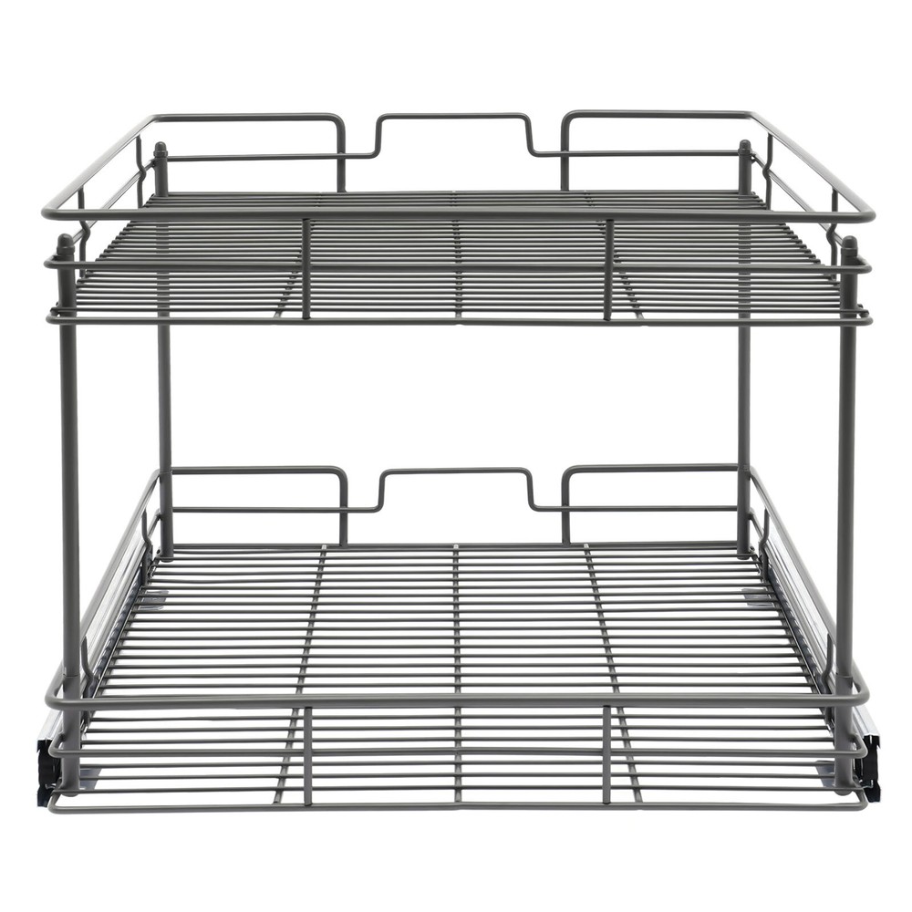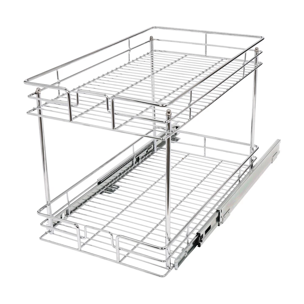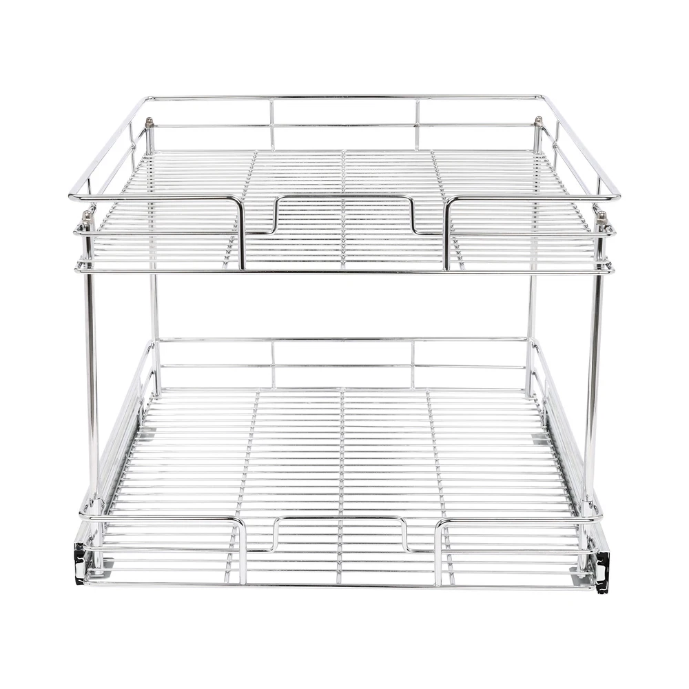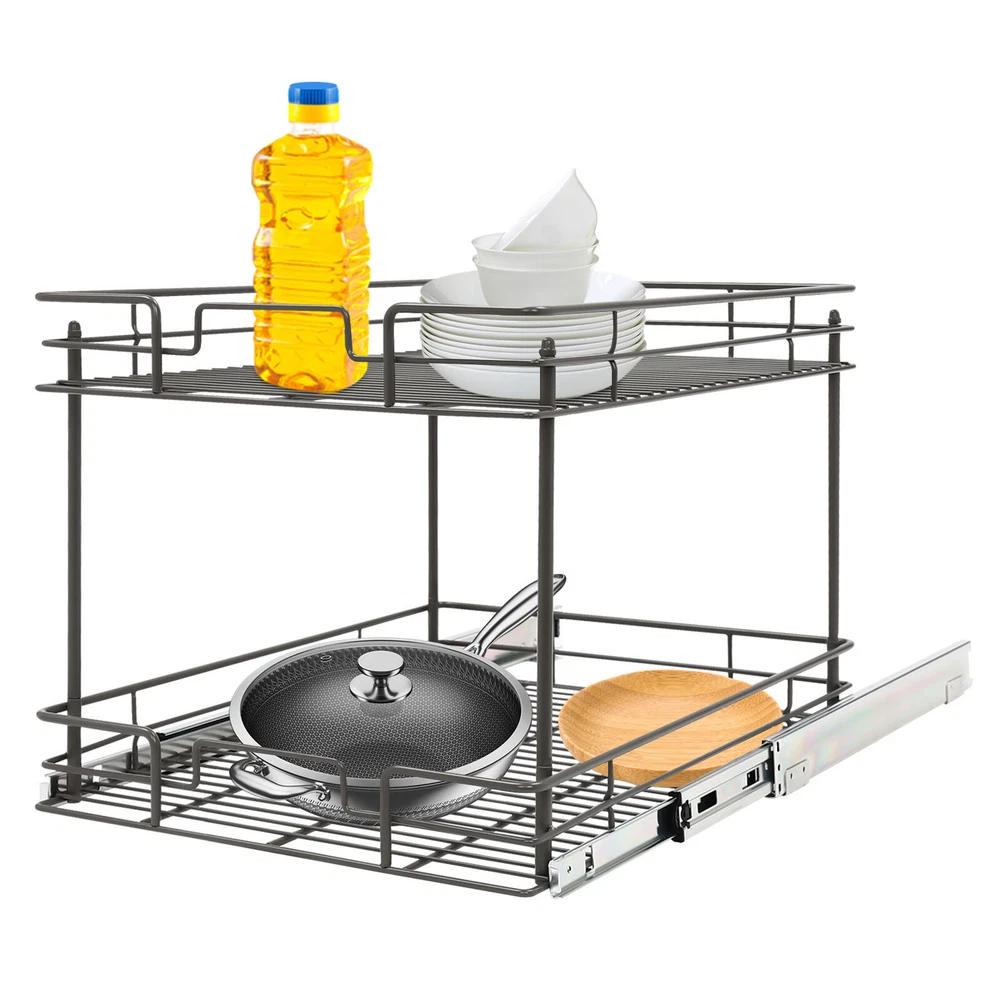 Color: Gray/Silver Width x Depth 20" W X 21" D Dimensions (W x D x H): 54.61*49.53*38.1cm/21.5*19.5*15in 17" W X 21" D Dimensions (W x D x H): 54.61*41.91*38.1cm/21.5*16.5*15in 11" W X 21" D Dimensions (W x D x H): 54.61*26.67*38.1cm/21.5*10.5*15in 14" W X 21" D Dimensions (W x D x H): 54.61*34.29*38.1cm/21.5*13.5*15in Details Raised Guardrails: Raised guardrails around the basket can prevent items from falling, making it more secure and worry-free to place. Round Edges: The arc design can effectively care for your skin compared with the traditional square corners. Rubber Rail Lock: It can prevent the basket from automatically sliding out, so when you push the basket in, be sure to snap in. Package Included 1* Pull-out Cabinet Organizer All Accessories for Installation 2-Tier Kitchen Cabinet Pull Out Shelf and Drawer Organizer Slide Out Gray/Silver Description Are you still struggling with cluttered cabinets and inadequate kitchen space? Then you can't go wrong with our pull-out cabinet organizer. It is made of high-quality iron and adopts an exquisite chrome-plating process, so it is sturdy and durable. Its pull-out design allows you to easily get items inside the cabinet, which is convenient and fast. The 2-tier basket provides you with enough space to store dishes, spices, and other items. Such a beautiful and practical pull-out cabinet is a good assistant for your kitchen. Width x Depth 20" W X 21" D Dimensions (W x D x H): 54.61*49.53*38.1cm/21.5*19.5*15in 17" W X 21" D Dimensions (W x D x H): 54.61*41.91*38.1cm/21.5*16.5*15in 11" W X 21" D Dimensions (W x D x H): 54.61*26.67*38.1cm/21.5*10.5*15in 14" W X 21" D Dimensions (W x D x H): 54.61*34.29*38.1cm/21.5*13.5*15in Features Sturdy and Durable: Premium iron and exquisite plastic spraying process make this item strong, wear-resistant, corrosion-resistant, and rust-proof, ensuring a long service life. High Load-bearing Capacity: Its thickened material and strong fixation guarantee a solid structure and a maximum load-bearing capacity of about 44.09 lbs to bear kitchen utensils with ease. Neat Storage: The 2-tier design provides you with sufficient space to neatly store bowls, spice bottles, plates, and dishes, making your kitchen tidy. What's more, the high enough tier spacing allows you to easily store tall items. Convenient Life: With two silent ball-bearing rails, this item can smoothly slide out, and you don’t have to deeply search into the cabinet when you are looking for what you need. In addition, the pull-out design can also maximize your cabinet space, making it easy to store, organize, and access your kitchen accessories, cleaning supplies, and various odds. Thoughtful Design: The hollowed-out bracket can drain the water left behind in the dishes after washing, preventing the growth of bacteria and making it more reliable to use. Easy to Install: Necessary accessories, a simple structure, and convenient hooks design allow you to quickly complete installation, saving time and effort and reducing the use of screws. Effortless Cleaning: The smooth surface and simple structure make it easy for you to clean it with a wet towel and water. Ideal Gift: The convenient pull-out design and large storage space make this item a great Christmas, New Year, and housewarming gift for your family, friends, and lovers. Customer Service: We aim to provide quality products and services. If you have any problems, please feel free to contact us. We will reply and solve the problem for you as soon as possible. Details Raised Guardrails: Raised guardrails around the basket can prevent items from falling, making it more secure and worry-free to place. Round Edges: The arc design can effectively care for your skin compared with the traditional square corners. Rubber Rail Lock: It can prevent the basket from automatically sliding out, so when you push the basket in, be sure to snap in. Application It is suitable for storing kitchen utensils such as dinner plates, bowls, spices, baking supplies, dishes, cups, essential oils, and other daily items. It is ideal for bathrooms, laundry rooms, kitchens, and pantries and can be served as an under-sink organizer, pot rack, spice rack, etc. Package Included 1* Pull-out Cabinet Organizer All Accessories for Installation Notes Please measure your cabinet opening do not include the hinge width, just measure from the hinge to the opposite side. Please do not use hard tools to clean the basket, as it may scratch the surface of the product and affect the appearance of the product. Please allow the slight color difference caused by the shooting light and 1-3 cm error due to manual measurement, and make sure you do not mind before ordering. Color: Gr ay; 20" W X 21" D Color: Gray; 17" W X 21" D Color: Silve r; 20" W X 21" D Color: Silver; 17" W X 21" D Material: Iron, Rubber Color: Gray Style: Modern Shape: Rectangle Assembly Required: Yes Number of Items: 1 Surface Treatment: Plastic Spraying Mounting Type: Cabinet Mount Number of Tiers: 2 Total Load-Bearing Capacity: About 20kg/44.09 lbs Product Size(L*W*H): 54.61*49.53*38.1cm/21.5*19.5*15in Package Size: 54*55.5*16cm/21.56*21.85*6.3in Gross Weight: 5.8kg/12.79 lbs Net Weight: 5.3kg/11.68 lbs Material: Iron, Rubber Color: Gray Style: Modern Shape: Rectangle Assembly Required: Yes Number of Items: 1 Surface Treatment: Plastic Spraying Mounting Type: Cabinet Mount Number of Tiers: 2 Total Load-Bearing Capacity: About 20kg/44.09 lbs Product Size(L*W*H): 54.61*41.91*38.1cm/21.5*16.5*15in Package Size: 45*55.5*16cm/17.72*21.85*6.3in Gross Weight: 5.4kg/11.9 lbs Net Weight: 5kg/11.02 lbs Material: Iron, Rubber Color: Silver Style: Modern Shape: Rectangle Assembly Required: Yes Number of Items: 1 Surface Treatment: Chrome-plating Mounting Type: Cabinet Mount Number of Tiers: 2 Total Load-Bearing Capacity: About 20kg/44.09 lbs Product Size(L*W*H): 54.61*49.53*38.1cm/21.5*19.5*15in Package Size: 54*55.5*16cm/21.56*21.85*6.3in Gross Weight: 5.8kg/12.79 lbs Net Weight: 5.3k