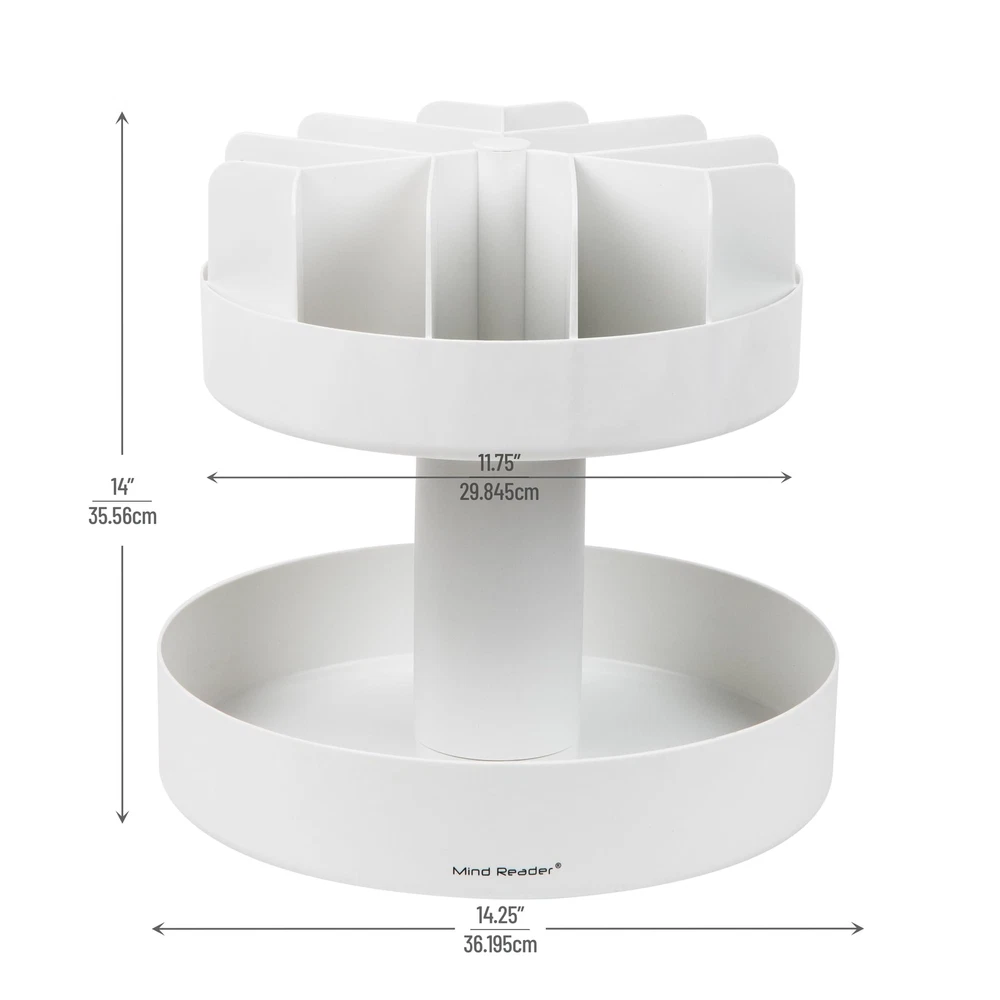 360-Degree Rotating Snack Organizer Add convenience to snacking with this versatile snack holder. This portable organizer provides a range of storage options and is a perfect addition to your office breakroom or home kitchen. Whether hosting a party or barbecue, or catering to guests in hotel lobbies or lounges, this snack caddy ensures easy access to snacks for everyone. Featuring a 360-degree swivel design, you can grab snacks on-the-go without rifling through the contents. Its tiered-shelf design enhances visibility, letting you see all your snack options at a glance. The organizer boasts 12 compartments on the upper tier for smaller items and a larger open compartment on the bottom for bulkier snack bags. Fill it with protein bars, granola bars, snack bags, or any other snack and condiment of your choice. The snack holder's durable plastic construction guarantees sturdiness for everyday use. Lightweight and easy to move around, offering versatile use wherever needed. This rotating snack organizer makes an excellent gift for housewarming parties, office kitchens, or hospitality professionals. Versatile snack storage: This organizer is designed to store various types of bagged snacks, such as granola bars, protein bars, chips, pretzels, popcorn, and more Convenient grab-and-go: Placing this organizer on your countertop saves you time by making snacks easily accessible to everyone, allowing them to quickly grab what they need Stylish and functional design: The tiered-shelf design adds a touch of style to your space, while the neutral color seamlessly blends with any existing home, office, or breakroom decor Durable and easy to clean: Made from strong plastic, this organizer is built to withstand daily use and can be easily cleaned with warm water and mild dish soap, ensuring long-lasting durability Optimal dimensions: Measuring 14.25 inches long x 14.25 inches wide x 14 inches tall (36.20 x 36.20 x 35.56 centimeters), this snack organizer fits neatly on any surface, providing a compact and organized solution for storing your favorite snacks