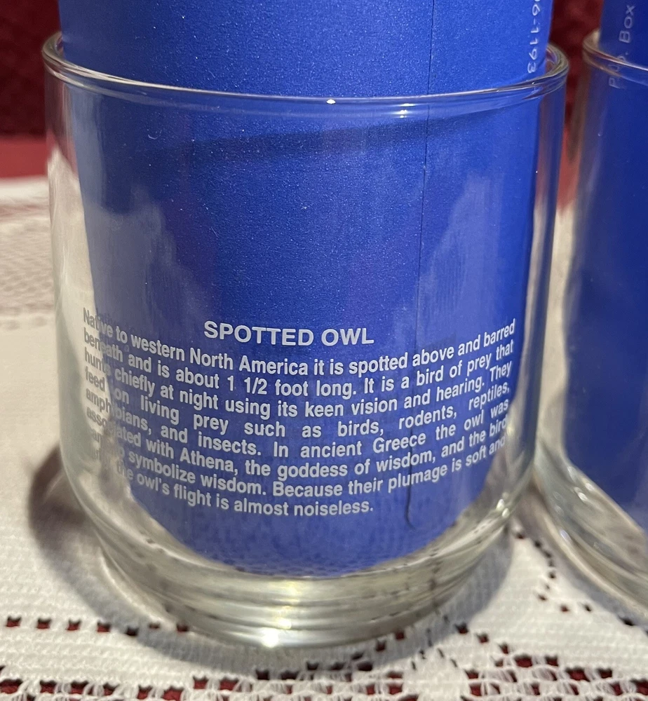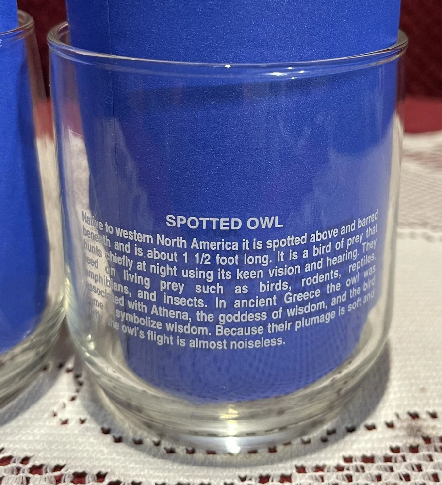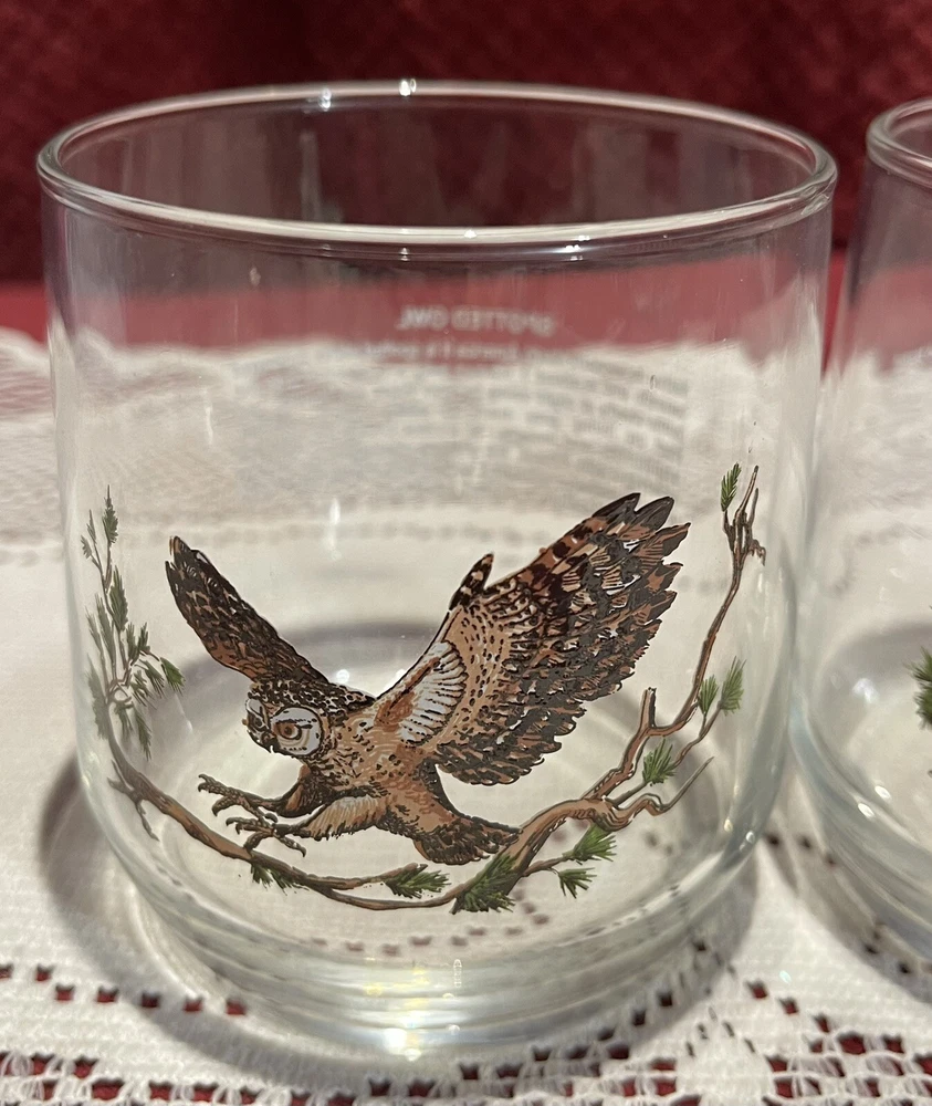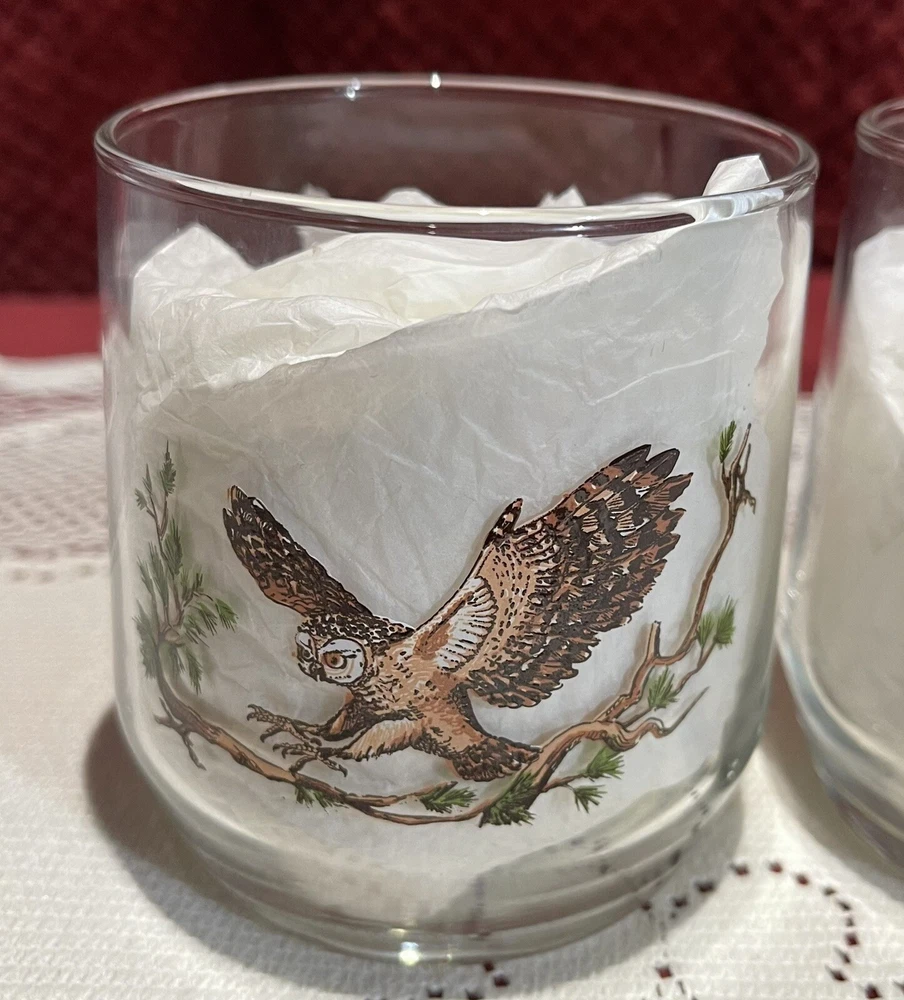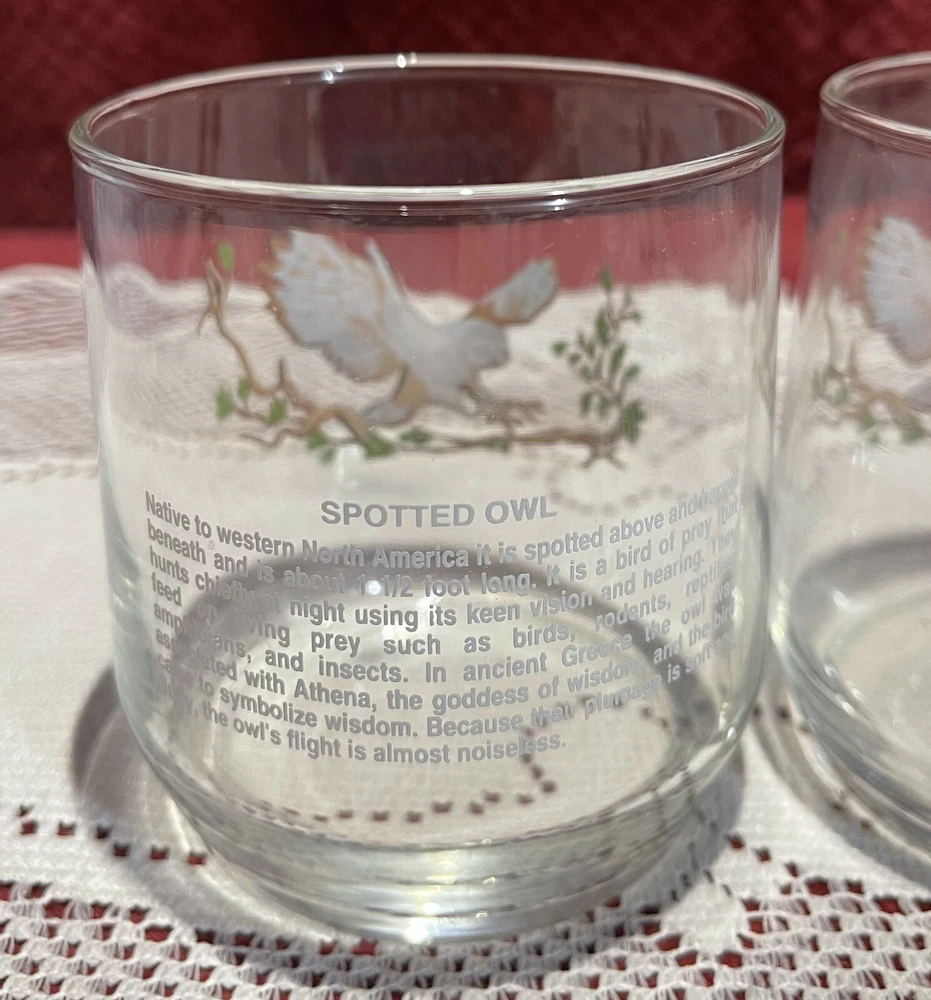 Add a touch of vintage charm to your collection with this 90's Libbey Sunoco American Wildlife Series "Spotted Owl" Drinking Glass. The set of 2 clear glass showcases a beautiful spotted owl design and is perfect for use or display. Made in the United States, this original piece of advertising memorabilia is a must-have for collectors of gas and oil company items. The glass is ideal for use as a drinking glass or as a decorative piece in your home bar or collection. Don't miss out on the opportunity to own this unique and original piece of Sunoco history. This is a set of two. 3 5/8” tall x 3 1/4” in diameter. All reasonable offers will be considered. Please see pictures for the exact items.