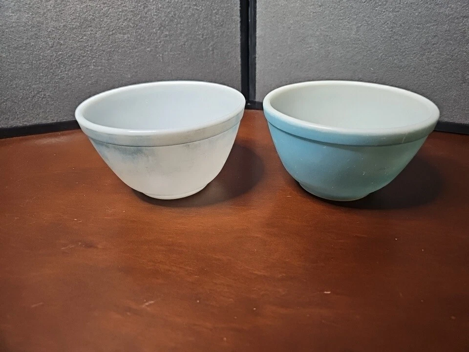 2 Vintage Pyrex 401 1 1/2 Pint Mixing Bowls Measurements About 5 1/2 inches diameter 3 1/2 inches deep Together weigh 2 pounds