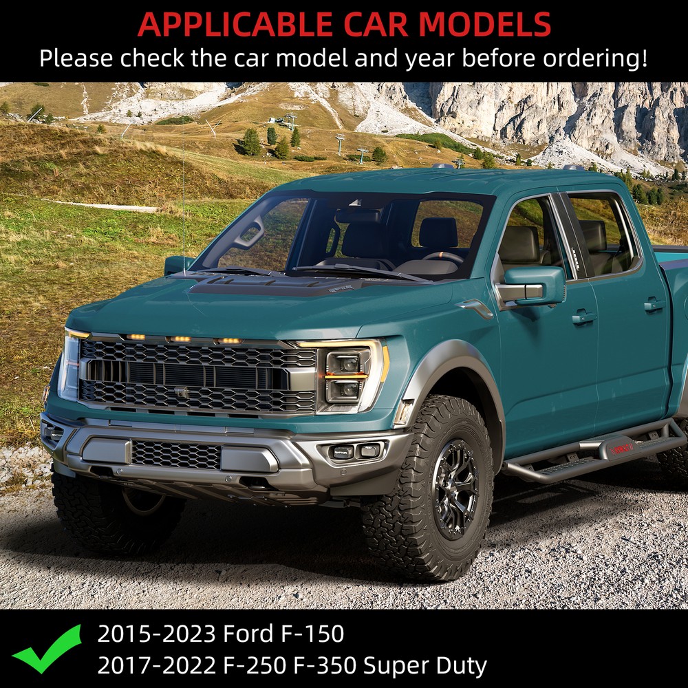 2X 6.5" Running Boards For 2015-24 Ford F150 Super Crew Cab Side Steps Nerf Bars Description: ---Robust Construction: Our steel two-step running boards are engineered with heavy-duty steel construction, providing exceptional strength and durability. The sturdy design ensures reliable support and enhances the overall rugged look of your car Enhanced Accessibility: Featuring two wide stepping platforms, Our two-step running boards offer improved accessibility for entering and exiting your car. The non-slip surface on each step provides added safety and stability, especially in challenging weather conditions. ---Aggressive Off-Road Look: The rugged design of Our steel two-step running boards not only ensures practical functionality but also adds an aggressive off-road aesthetic to your car. The appearance complements the vehicle's styling, making a statement both on and off the road. ---Precision Fit and Installation: Our steel two-step running boards are designed for a straightforward installation process. The included mounting hardware and precise fit ensure easy and secure attachment to the vehicle. Specifications: Color:Steel-Two Stairs Material:Alloy Steel Exterior Finish:Carbon Steel Features: Custom Fit: For 2015-2024 Ford F-150 SuperCrew Cab (4 Full-Size Doors) For 2017-2024 Ford F-250 F-350 Super Duty Crew Cab Note: Different displays may cause the color of the item in the picture a little different from the real thing. Manual measuring, please allow 1~3mm error,thank you. Payment Delivery details Returns details Feedback Payment We accept Payoneer only. All major credit cards are accepted through secure payment processor PayPal. Payment must be received within 7 business days of auction closing. If you have bought multiple items from me, you can send me one payment for all the items instead of paying for them individually. When you click the Pay Now button, eBay will automatically determine if there are other items you have won or purchased from me and will combine them for your review. NOTE: Import duties, taxes and chargers are not included in the item price or shipping charges. These charges are the buyer's responsibility. Please check with your country's customs office to determine what these additional costs will be prior to bidding buying. Delivery details 1. We will delivery out at the handing time when we receive the payment. 2. The delivery time is 3-5 business days to US by usually time.The parcel maybe delay 1-2day of the weekend.Due to the bad weather,Holidays,Hot Season ect.the parcel maybe delay,If you have any problems,mssage us,we will try our best to solve it. 3. We ship to your eBay address. Please make sure your eBay address is correct before you pay. 4. If you want to change the shipping address,message us before our send out. 5. We cannot deliver your order if your state is PR. Returns details 1. If you donot receive the items at the delivery time,the parcel has broken/missing,Please message us before you open case/return,we will try our best to solve it. 2. We offer a 30 day return policy from checkout winning date. 3. An RMA number is required for all returns. Message us for return instructions. Items Returned without a RMA number will not be processed. 4. Items defective upon receipt must be packaged in their retail packaging as if new and returned with a detailed description of the problem. 5. Return shipping fees are not refundable. We reserve the right to decline any returns if the above guidelines are not followed. Feedback If you are not satisfied with the item for any reason, please do not quick to leave negative/neutral feedback even open request and case without any communication with us. We devote ourselves making EVERY CUSTOMER in 100% Satisfactory and resolve any problem. Thank you for your understanding and recognition,we are always leave positive feedback to all our customers. Reply: All replies will be sent to your email box, if you do not get response within 24 hours (Sat. & Sun. excluded) please check your eBay My Messages in case that our emails will be filtered automatically by your settings.