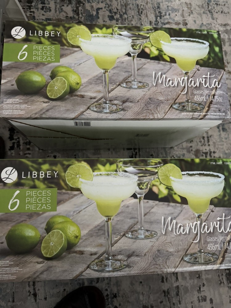 New authentic original 2X 6 Pack Libbey Margarita Glasses 14.75oz Each Thick Rim Wide Bowl Total 12 Sk-8-1642wrp