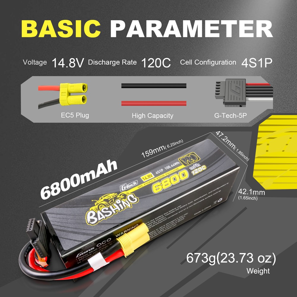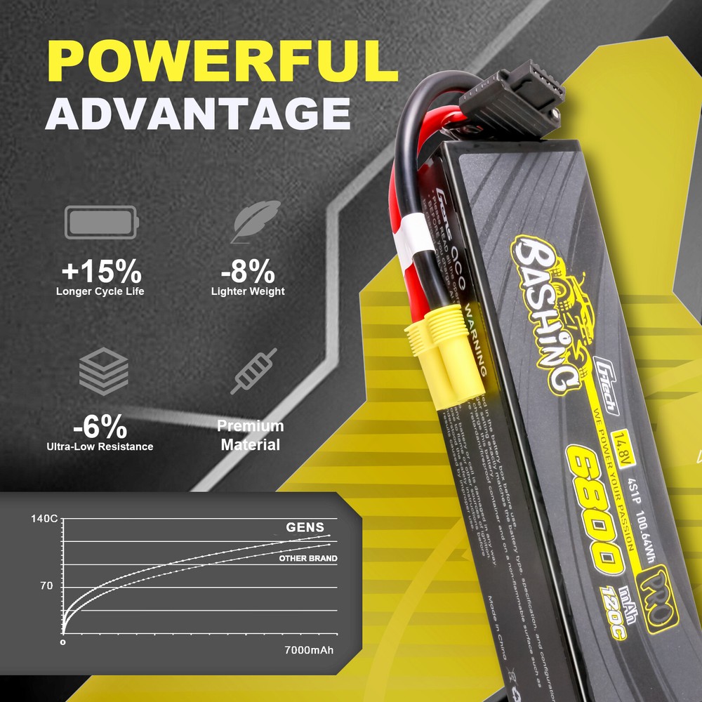 2X Gens Ace G-Tech Bashing 6800mAh 14.8V 120C 4S Lipo Battery EC5 For 1/8 RC Car 2X Gens Ace G-Tech Bashing 6800mAh 14.8V 120C 4S Lipo Battery EC5 For 1/8 RC Car US This Gens ace Bashing Series 6800mAh 4S1P Lipo Battery Pack comes pre-equipped with the industry standard EC5 connector, no soldering required! With a maximum discharge rate of 120C, this 4S 6800mAh lipo pack is ready to give you all the power you need, whatever your application. Gens Ace batteries deliver full capacity & discharge as well as being the best value batteries in the hobby market today! Trust Gens Ace for long LiFe and consistent durability run after run. This model has now been updated to a more robust version with a hard shell square tube case and eight gauge wire. Please make a note in your order: Send the upgraded version. Specifications: - Minimum Capacity: 6800mAh - Configuration: 4S1P / 14.8 V /4 cells - Discharge Rate: 120C - Max Burst Discharge Rate: 240C - Net Weight(±20g): 673g - Dimensions: 159.07mm Length x 47.19mm Width x 42.15mm Height - Balancer Connector Type:G-tech-5P Features: - Stable automatic stacking technology enables single-cell capacities of 6800mAh. - Best raw material and excellent workmanship to fulfill customer needs. - High reliability and automatic production line to guarantee high quality and consistent performance. - Small in size and light in weight. Application: Gens Ace 6800mAh 14.8V 120C 4S1P Lipo Battery Pack is suitable for Arrma 1/5 Scale, 1/7 and 1/8 scale, sledge etc. Our Advantage: 1.Your orders will be dispatched via FedEx or UPS from the USA directly. 2.Fast shipping and excellent local after-sale service guaranteed in the USA. 3.Service-priority in the online shop, like the long warranty period and the lower price. 4.Energy Density:Specially adapted to each UAV type and RC car/boat/heli type. Very High according to capacity/weight. In fact, we are specialists in High Power Lipo Batteries. It is our unique technology, the highest power of our battery is 120C. Another technology is our batteries are able to be stably discharged simultaneously. 5.Low IR: Provides stable voltage until the end of your mission. Package included: 2 X Gens Ace G-Tech Bashing 6800mAh 14.8V 120C 4S Lipo Battery EC5 Payment Delivery details Return & Warranty About us Feedback Payment 1 .Your can choose from any of the following payment methods: Visa Mastercard Discover American Express PayPal PayPal Credit Apple Pay (through the eBay app and mobile website only) Google Pay (through the eBay app, mobile website and desktop) 2 .NOTE : Payment should be sent within 1-3 (Three ) days of auction closing. Or unpaid dispute will be filed for closing auction. Delivery details 1. All items will be shipped within 1-2 business day upon receipt of payment. 2. Items will be sent from USA directly by USPS or UPS or FedEx, it usually takes approximately 4-7 business days to receive order. 3. All items will be shipped to buyer's eBay address. Before you pay, please make sure your address on eBay matches the address you would like us to ship to. 4.Fast shipping and excellent local after-sales service guaranteed in USA Return & Warranty 1.Our items come with 90-Day warranty. 2.Our warranty does not extended to any products that are physically damaged or that are not under normal operating conditions as a result of misuse or improper installation on the buyer/user's part. 3.This product comes with 30-Day Money Back Guarantee. 4.We stand behind every product we sell. If you're not pleased with your purchase, we'll be happy to make an exchange or refund. About us Gens Ace is one of the top rank battery corporations with deep research and manufacturing on NIMH, LI-PO, LI-FE by the effort of 200 professional engineers and technicians with 20 years exquisite battery technology. The Gens Ace brand holds the traditional concept of "excellent quality", "Optimization"& "Priority" on Sales & Services. All batteries are tailored for various scales of the RC Models such as electronic cars, nitro cars, aero planes, vessels and also other models, toys, electric tools, electric bikes, electric autos, digital products etc. Feedback Customer satisfaction is very important to us. If you have any problem with your order , please contact us and we will do our best to make you satisfied, please do not leave a negative feedback before we resolve your problem. We guarantee that your issue will be solved quickly. As long as you are happy with your purchase of , please leave us a positive feedback. Your feedback is very important to us it affects our search placement on eBay. You will receive our positive feedback as soon as you pay for your item. If you have any concern , please contact us first via Ask a Question or via Contact Seller. We usually respond within 24 hours on weekdays.