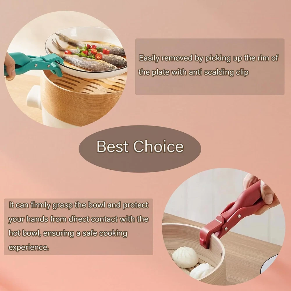 Multi-Purpose Anti-Scald Bowl Holder Clip for Kitchen, 2 Pcs Silicone Non-Slip Heat Insulation Anti-Scald Clip, Hot Bowl Dish Plate Gripper Clips Tongs Clamp Holder, Hot Pan Gripper Tool (Red+Green) 【Efficient Kitchen Aid】:Are you still worrying about how to serve the steaming hot plate? Our anti-scald bowl clip hot plate gripper can solve your trouble, it can firmly grasp the bowl and protect your hands from direct contact with the hot bowl, ensuring a safe cooking experience. 【High Quality Assurance】:This silicone anti-scald bowl holder clip is made of higher quality silicone, heat resistant and can withstand high temperatures. The non-slip design keeps the handle from slipping in your hand. Multi-angle design, you can be used horizontally or vertically according to your needs. 【Easy to Use】:This anti scalding clip is easy and simple to use, when you use it, you just need to clip the end of the clip tightly on the plate, you can easily clip it without any effort and it will not burn your hand. Compact and delicate size, easy to carry on the go. 【Easy to Clean】:Designed for easy cleaning and maintenance, this anti-scald bowl clip hot plate gripper can be used again after use by simply placing it in the dishwasher or rinsing with water. 【Wide Range of Uses】:Whether it's a hot plate or a boiling skillet, this multi-purpose anti-scald bowl holder clip for kitchen will do the job with ease. It also holds different sized bowls so you can stir, whisk or pour ingredients as you please. Specifications: Material: Nylon, silicone Size: 19*4cm / 7.48in * 1.57in Note: Due to the screen lighting effect, the actual color of the product may be slightly different. Due to manual measurement, please allow size error. Packa ge includin g: 2*Bowl Clip