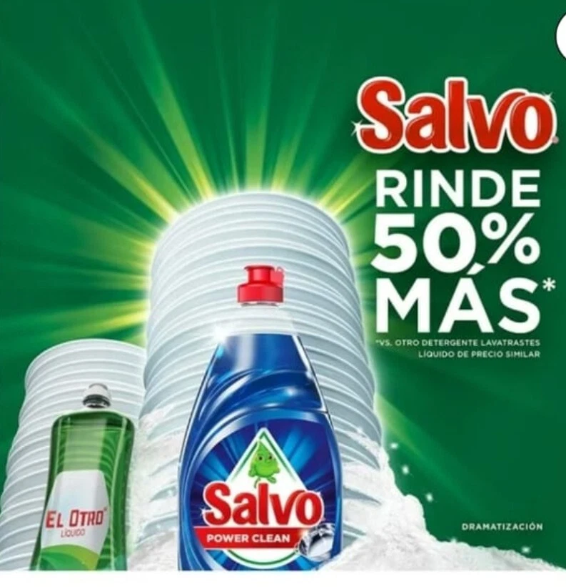 This is a bundle of 2 bottles of Salvo Lavatrastes Power Clean dishwashing soap, each containing 1.2 liters. The liquid soap is in a lemon scent and is suitable for use on dishes, countertops, and multi-surfaces. It is non-toxic, eco-friendly, and cuts through grease effectively. The soap is branded as Salvo Limon Lavatrastes and is designed for dishwashing and general cleaning purposes.