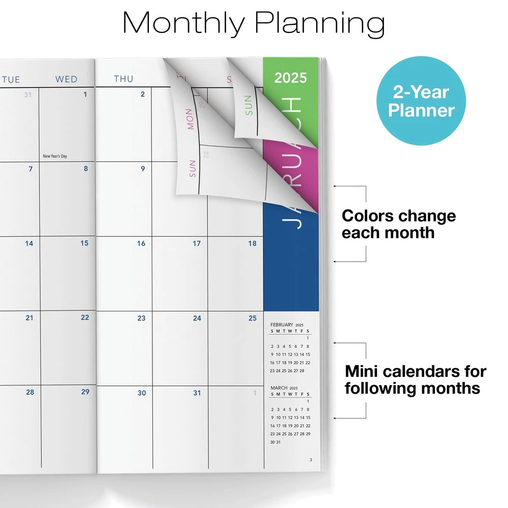 2-Year Monthly Pocket Planner/Pocket Calendar, 3.5"x6.5", 2025-2026: Weekly Planner/Weekly Agenda/Monthly Calendar Organizer (Rainbow Gold Marble) 2-Year Monthly Pocket Planner/Pocket Calendar, 3.5"x6.5", 2025 - 2026: Weekly Planner / Weekly Agenda / Monthly Calendar Organizer TWO-YEAR PLANNING - This pocket-sized planner covers an extensive timeframe, spanning from January 2025 to December 2026, providing you with long-term organization and future event tracking. COLOR-CODED MONTHS - Stay on track with ease thanks to our intuitive color-coded months. Quickly identify and flip to the right section, making monthly planning a breeze. MINI CALENDARS FOR FOLLOWING MONTHS - Plan efficiently with mini calendars for the following months, allowing you to make future arrangements without flipping back and forth between sections. COMPACT AND PORTABLE - Measuring at a convenient 6.5 x 3.5 inches, this planner is designed for on-the-go individuals. Slip it into your pocket, purse, or backpack, ensuring you are always prepared. VARIETY OF STUNNING COVERS - Express your style with our selection of six beautiful and classic cover designs. Whether you prefer a timeless look or something more vibrant, there's a cover to match your personality. Shipping from the USA All of our products are shipped from the USA, ensuring quick delivery to your destination. Payment We offer the following payment methods: PayPal, credit card, bank transfer, and eBay's secure payment system. Free Shipping & Free Returns Shipping within the USA is FREE. Additionally, any return is absolutely free for you. Risk-Free Purchase You have the option to return an item within 30 days without any justification. We cover the return shipping costs! Fast Shipping We ship immediately upon receipt of payment. Generally, the package is delivered within 2-3 days in the USA. If it takes longer, we will contact you. Quality and Costs Made in Europe, USA, China No customs fees or additional charges Total satisfaction guarantee Invoice with declared VAT available upon request in .pdf format Feedback Your feedback is very important to us. After you pay for your purchase, you will automatically receive positive feedback from us.