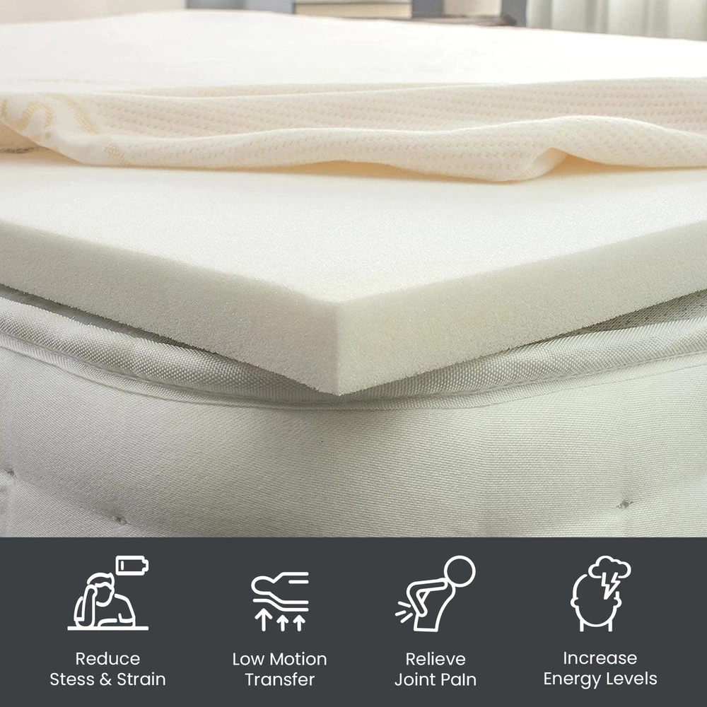 The premium foam adds luxurious softness while not taking away from the support of the mattress. These bed toppers have been effective in enhancing the comfort level of new and old mattresses alike, providing a better sleep experience for most people. This Convoluted Egg Shell Breathable Foam Topper is made from good quality foam that gently cradles you in individualized comfort and support. It also provides you with pressure-relieving cushioning in the hip and shoulder areas while still supplying enough support, so the body doesn't get imbalanced. These unique mattress toppers are to be used on top of your mattress for additional comfort. This prevents your body from sinking and curling while sleeping and promotes a better posture, which reduces and strain on your spine and increases energy levels during the day. Our premium-level mattresses are here to help you get the best possible comfort at all times when you sleep or lie down to relax. Comfort: A mattress topper can add an extra layer of comfort to your mattress, making it feel softer and more luxurious. This can be especially beneficial if you have a firm or uncomfortable mattress. Support: Toppers can provide additional support to your body while you sleep. This can help alleviate pain and pressure points and promote better alignment of your spine. CertiPUR-US certified foam: Rest easy knowing that the topper's foams are CertiPUR-US certified, meeting stringent standards for durability, performance, and content. Quality you can trust. Temperature regulation: Mattress toppers are designed to regulate temperature and keep you cool during the night. This can be especially beneficial if you tend to overheat while you sleep. Cost-effective: If you're not ready to invest in a new mattress, a mattress topper can be a cost-effective solution to improve your sleep experience. It's also easier to replace a topper than a mattress, which can be a more affordable option in the long run.