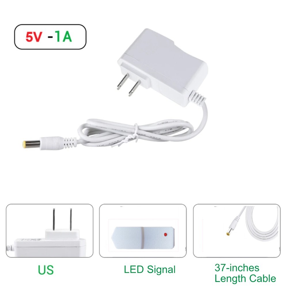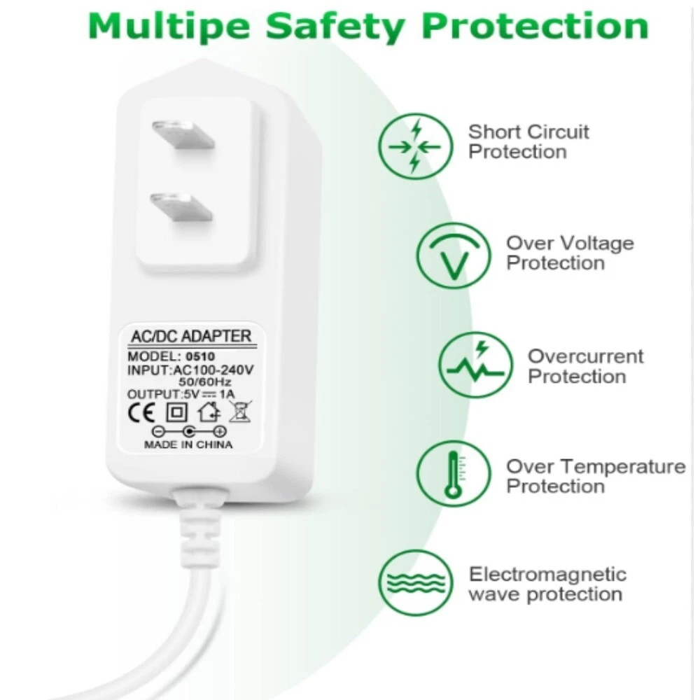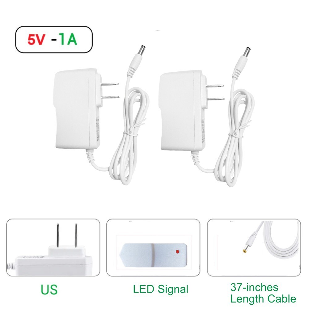 1pc/2pcs 5V 1A AC/DC Adapter, 5W Power Supply DC Power Adapter, 110V - 240V Slim Design AC power Adapter wall Charger for LED Strip Android Tablets Webcam Routers Toys Recorder Speaker & Mores Akihalo 1pc/2pcs 5V 1A AC Adapter Specification: High-cost performance, safe and reliable! Built-in overvoltage, overcurrent, short circuit, overheat protection! Parameters: Output voltage: 5V+/-5% Output current: 1A Ripple and noise: 50~200mmVP-P Linear adjustment rate: 0.5%max Operating temperature: 0~40C, 10%~90%RH Storage temperature: -20~85C, 5~95%RH Features. 1.5V 1A Power Supply: Input: AC 100~240V, 50/60Hz; Output: DC 5V 1A 5W(Max). Polarity: Center Positive (+). Ouput current is 1A max it means that it can supply with all amperage which smaller than 1000mA, such as 5v 1A 0.8A 0.5A 1000mA 900mA 800mA 700mA 600mA 500mA 400mA 300mA 200mA 100mA etc. 2. AC adatper comes with : 3.5*1.35mm terminal connector, Please reconfirm the DC jack size before purchase and use to ensure compatibility. 3. 5V 1A power adapter would meet your 90% power need for 5V household and office electronics, like portable, wireless receivers, electrical toys, LED strip lights, more 5V devices. 4. Much more sturdy design than the others, this adapter was the perfect replacement for your lost 5V power cord. 5V adaptor manufactured with the highest quality materials and include multiple safe guarding against over voltage, short circuit,internal overheating. 5. Package includes : 2 x 5V 1A ac/dc adapter. Built-in multiple safety protection systems and safe to use.