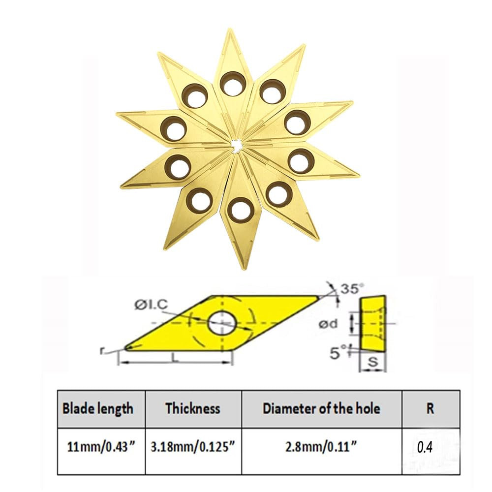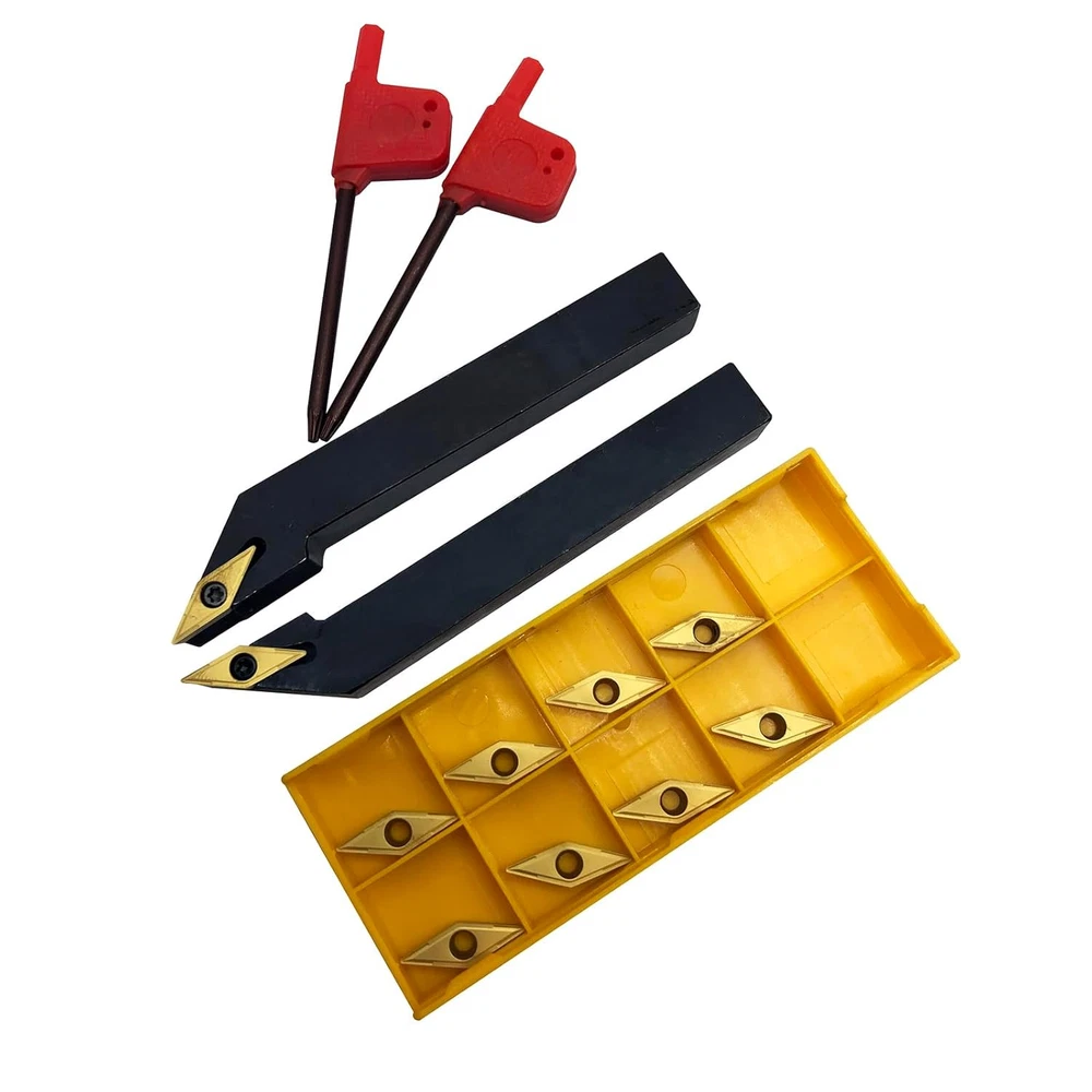 2pcs 1/2" Indexable Metal Lather Turning Tool Holder Boring Bars with VCMT110304/VCMT32.51 Carbide Turning Inserts,VCMT Insert Mutilayer Coated CNC Lathe Replacement Cutters Inserts Product Details Package Dimensions : 6.18 x 5.51 x 1.77 inches; 10.23 ounces Manufacturer : Hunricho Country of Origin : China VCMT110304/VCMT32.51 -- 35° indexable carbide insert, blade length:0.43”,Thickness: 0.125”, ,inner Φ= 0.11”, Radius: 1/64,,single sided, solid carbide with mutilayer coated; SVJCR/L1212H11 -- 3 degrees cutting edge angle ,40CrMnTi substrate with blackened finished, length=3.9in , shank dia=1/2",high strength, high stiffness, good cushioning performance; Designed for Stainless steel , Steel, cast iron and non-ferrous materials; Wear-resistant and heat-resistant, not easy to stick to the holders or workpieces or break up.Vacuum hardening, exquisite craftsmanship, easy cutting. Package: 2pcs 1/2in SVJCR/L1212H11 right /left hand lather turning tool holders + 10pcs VCMT110304/VCMT32.51 indexable Carbide turning inserts +2pcsT8 wrenches.