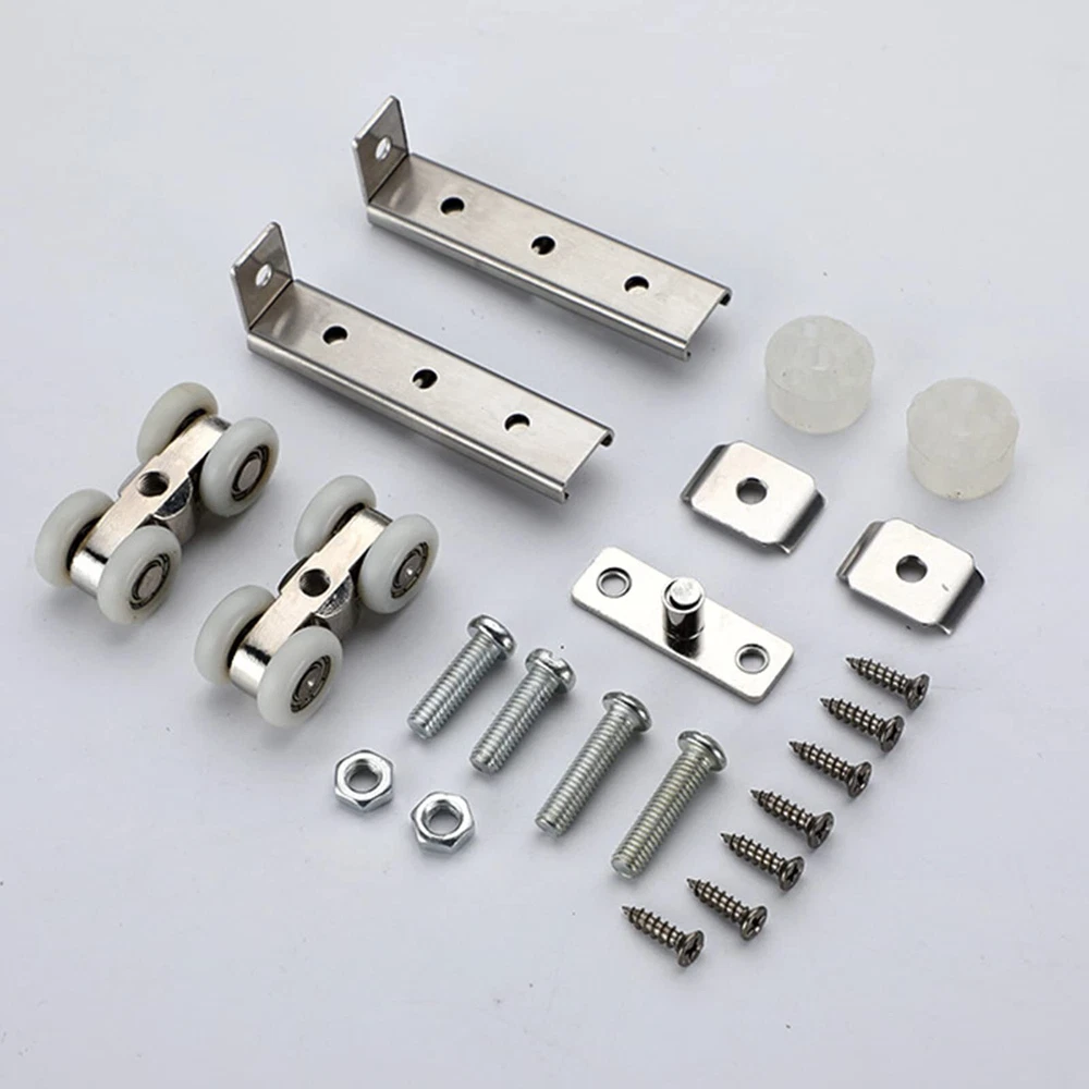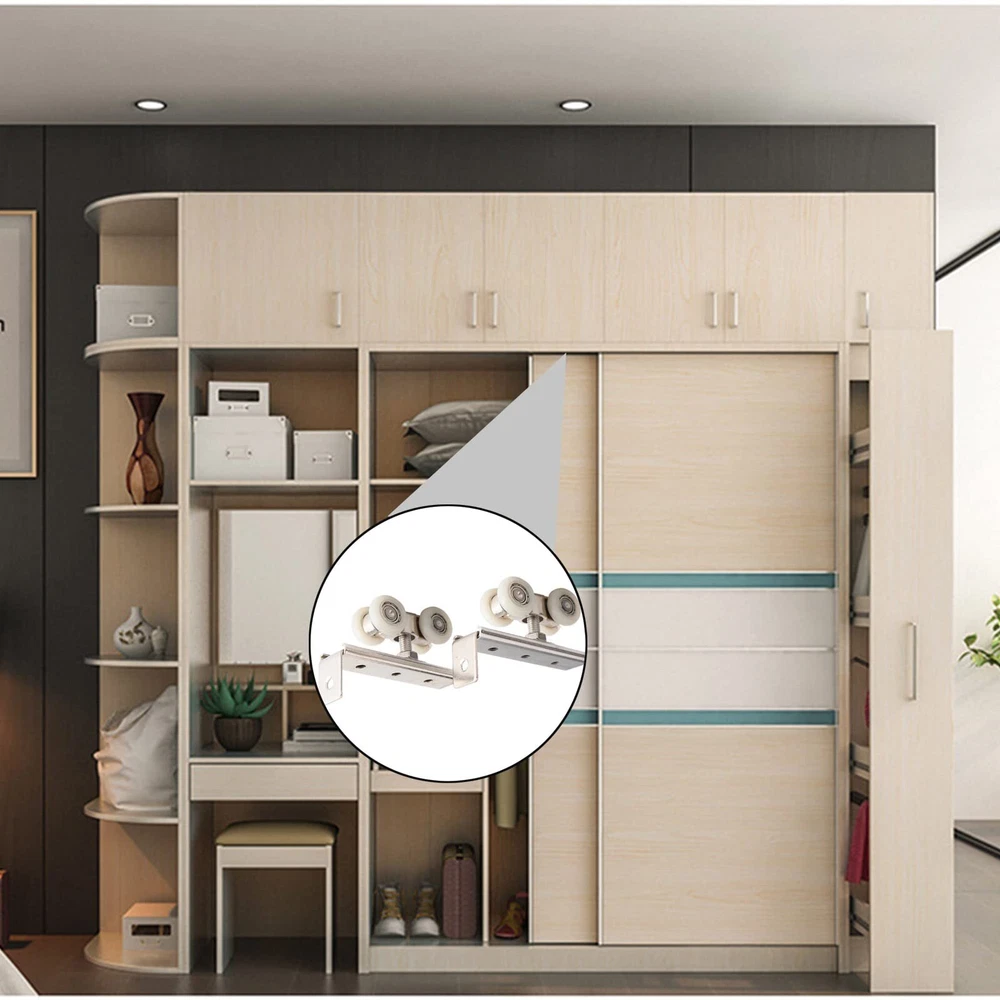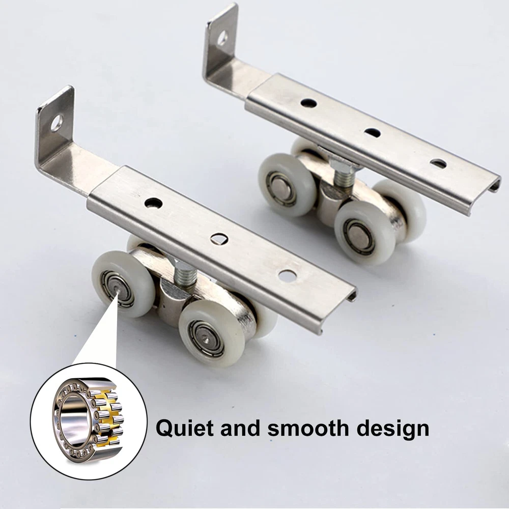 2pcs 4-Wheel Metal Sliding Track Wheel Set Hanger Ball Bearing Pulley Kit for...