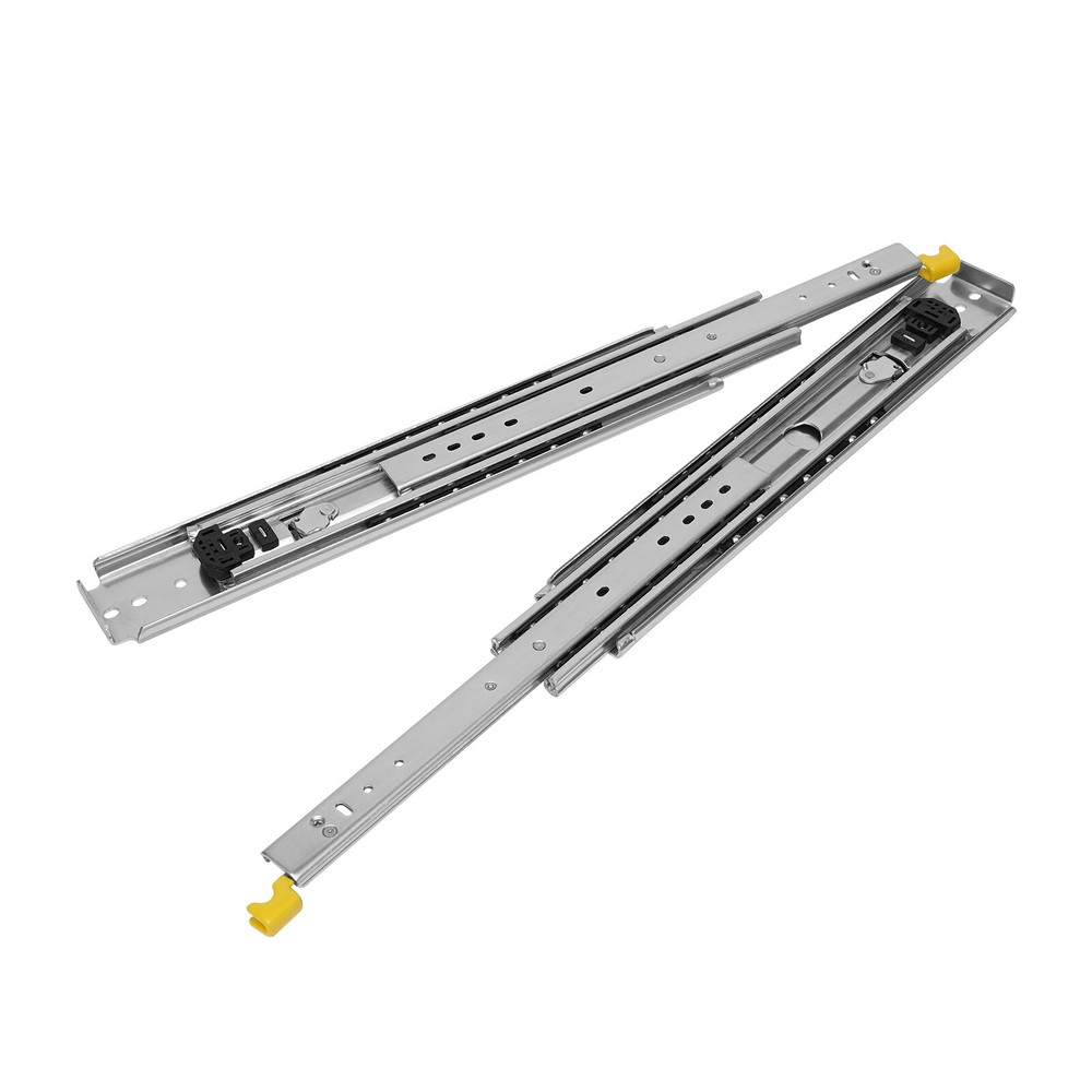 Description This heavy-duty drawer slide is made of cold-rolled steel Q235 which is durable and has a long service life. Cold-rolled steel has good corrosion resistance and heat resistance, so it won't rust or jam under proper use. This heavy-duty drawer slide has double rows of solid steel balls to ensure a smooth and silent push and pull. Key Features Excellent Material: This heavy-duty drawer slide is made of cold rolled steel Q235 which is durable, sturdy, rust-resistant, not easily deformed, and has a long service life. After testing, the number of times the slide rail is opened and closed is as high as 100,000 times. Push and Pull Silent: This heavy-duty drawer slide has double rows of solid steel balls to ensure a silent and smooth push and pull, which is very thoughtful. 2pcs 500lb 60" Heavy Duty Drawer Slides Full Extension Ball Bearing w/ Lock New Hardware 1 Pair of 60 Inch Heavy Duty Drawer Slides 500LB Full Extension Side Mount Ball Bearing Drawer Rails with Lock Description This heavy-duty drawer slide is made of cold-rolled steel Q235 which is durable and has a long service life. Cold-rolled steel has good corrosion resistance and heat resistance, so it won't rust or jam under proper use. This heavy-duty drawer slide has double rows of solid steel balls to ensure a smooth and silent push and pull. Key Features Excellent Material: This heavy-duty drawer slide is made of cold rolled steel Q235 which is durable, sturdy, rust-resistant, not easily deformed, and has a long service life. After testing, the number of times the slide rail is opened and closed is as high as 100,000 times. Push and Pull Silent: This heavy-duty drawer slide has double rows of solid steel balls to ensure a silent and smooth push and pull, which is very thoughtful. Even if installed in the bedroom, it will not disturb you. Lock Function: This heavy-duty drawer slide comes with a locking device that prevents the drawer from accidentally sliding out. You can unlock the drawer by gently tugging the lock handle which is very convenient. High Load-bearing Capacity: Its high-quality cold-rolled steel material and stable structure provide strong stability with a maximum load capacity of 226.8kg/500lbs. You can use it with confidence. Full Extension: This 3-fold heavy-duty drawer slide support access to the entire space, and drawers can be pulled out completely for easy storage of items. The pull-out distance is much longer than the double-section ones for ease of use. Easy to Install: The structure of this heavy-duty drawer slide is simple and is a one-piece slide, you can easily install it. Space Saving: The size of this heavy-duty drawer slide is only 60*3in which is lightweight and easy to carry. It does not take up much space when installed on the drawer. Easy To Clean: Because of its smooth surface, you only need to wipe it with a cloth, and then it can shine like a brand-new one. Customer Service: We aim to provide quality products and services. If you have any problems, please feel free to contact us. We will reply and solve the problem for you as soon as possible. Details ① Galvanized Finish: The surface of this heavy-duty drawer slide is galvanized, which is anti-oxidation and anti-rust. ② Buffer Cushion: This heavy-duty drawer slide has a buffer cushion, which can prevent the collision between the three slides and play a buffer and silent effect. Application This heavy-duty drawer slide is suitable for modifying RV equipment, heavy-duty tool cabinets, shelves, cabinets, industrial drawers, trucks, vending machines, etc. Installation Steps 1. Find two horizontal lines in the installation position on both sides of the cabinet, and fix the outer fixed slides to the horizontal lines on both sides with screws; (Note: the positioning of both sides must be parallel). 2. Completely pull the slide rail, and fix the drawer to the inner fixed rail with screws according to the horizontal line. 3. The installation is finished. Specification -Style: Simple, Modern -Material: Cold Rolled Steel Q235 -Color: Silver -Quantity: 2 -Process: Galvanized Finish -Load-Bearing Capacity: 226.8kg/500lbs -Slide Length: 152.4cm/60in -Slide Width: 7.6cm/3in -Package Size: 160*18*6cm/63*7.08*2.36in -Gross Weight: 15kg/33lbs Package Included 1 Pair of Heavy-Duty Drawer Slides Notes 1.Please note that the locking mechanism only works when the drawer is fully closed or fully open. 2.Please note that in order to ensure the safety of users, the heavy-duty slide rails cannot be disassembled. 3.Please note that screws are not included in the package, you need to purchase your own M4 and M6 half-round head screws. 4.Please note that the installation gap on both sides should be more than 20mm/0.79in. 5.Please allow the slight color difference caused by the shooting light and 1-3 cm error due to manual measurement, and make sure you do not mind before ordering. Payment Delivery details Terms of sales About us Contact us Payment We accept ebay payment 。 Fees such as import duties, taxes are not included in the item price or shipping costs. These charges are the buyer's responsibility. Delivery details Shipping: 2-9 working days to: USA Terms of sales We maintain high standards of excellence and strive for hundred percent customer satisfaction. Feedback is very important to us. We hope that you contact us immediately before you give neutral or negative feedback, so that we can address your concerns. It is impossible to address issues if we do not know about them! About us Your satis faction is our ultimate goal. We work hard to earn your trust and future business. Our certified technicians have tested each item before shipping. The unit comes with 1 year limited warranty on all manufacturing defects. a) If you receive a defective item, you may return it or ask for a discount. Please contact us within 14 days after you receive the package. b) What you returned must be intact and in its original packaging as re? u. Customer is responsible