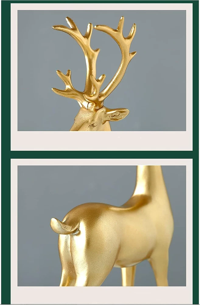 Small Reindeer Sculpture Resin Christmas Reindeer Elk 2pcs Christmas Home Decor Statues for Living Room, Bedroom, Office Desktop, Cabinets (Golden Small) Item Description Golden Reindeer Sculpture is our guardian angel that brings us inspirations and hope. Please notice that they are small displays. Pair of elk figurines are crafted from quality resin and glazed gold, giving lifelike look, glossy finish but easy to be scratched. Please Handle Fragile Items with Care. A Christmas Bell Bowknot will be given to you - hang it on elk's neck to make it look prettier and cuter. Decorative Gift: Nicely packaged small pair gold deer ornaments set is a wonderful gift choice to your Kids, Lovers, Family or Friends, Teacher; ideal to decorate Mantel, Tabletop, Nightstands, TV Cabinet, Bookshelf, Office etc. Always in Seasons: Delicate Couple Golden Elk Statues will not only look gorgeous in winter Christmas season; also eye-catching golden decorations for all seasons, adding a classy, homey and artistic atmosphere. Size of Pair Deer: kneeling reindeer Small 3.3’’ x 4.5’’; standing reindeer Small 3.7’’ x 6.8’’. *Material: Vivid elk statue is made of high-quality resin and coated by gold and white glaze. Shiny smooth couple elk figurines can garnish your living room, bedroom, bathroom, bookshelf, TV cabinet, nightstands, mantelpiece, tabletop, etc. *Perfect Ornaments as Gifts: Nicely packaged gold modeling pair reindeer figurine is a perfect present choice to Lovers, Family, or Friends as Christmas setting or beautiful crafted decorations, creating a bright, homey and artistic atmosphere at your home or office. *Two Sizes for Different Needs: kneeling reindeer Small 3.3''x 4.5''; standing reindeer Small 3.7'' x 6.8''. Payment Fast and Free Shipping Shipping safe payment via eBay . Return 30 Day's returns