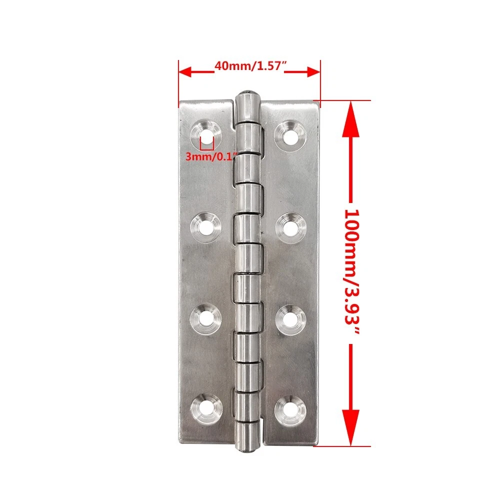 Heavy Duty Piano Hinge 40 X 100mm Stainless Steel Hinges for Cabinet Door DESCRIPTION: Type: Piano hinge Product Material: 304 Stainless steel Product Color: Silver External Dimensions: Length: 3.93 in / 10cm Overall Width: 1.57 in / 4cm Features: - Made of stainless steel material: Much more durable and can be used under any weather condition such as windy, cloudy, raining, snowing days. - With Ball Bearing, these door hinges are more quiet and smoother when you are closing & opening the door. - Each steering joint of the hinge is a load-bearing point, with uniform force and smooth opening and closing, ensuring stable installation and resistance to detachment. - With 4 x 10cm size, which is also a standard size, easily replaced your old hinges with these. PAYMENT: 1.We accept Payp al only. 2.Unpaid dispute will automatically open when item is not paid within 7 business days. SHIPPING: 1.Please make sure your shipping address is correct and tell me your phone number. 2.PS:Import duties,taxes and charges are not included in price or shipping charges. 3.If you don't get packge in time,please contact us.We are happy to check shipping information and help you. ABOUT US: 1.Please contact us with any questions or concerns. We will reply to messages within 2 business days. Emails, which are received during the weekend, will be replied on Monday. If you do not received a response in expected time period from us, please check your junk or spam mail. 2.If you are happy with our item and service, please do leave us positive feedback and 5 star rate. Please DO contact us before leaving Neutral or Negative feedback. We thank you for your effort to make this sale and purchase experience a happy one!
