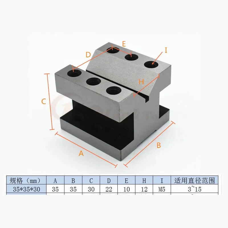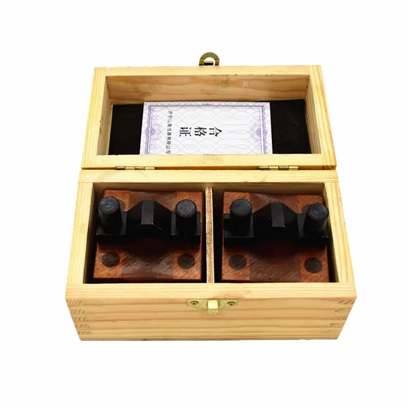 Features: 1. Size: 35x35x30mm. Clamping size of the shank: 3-15mm. 2. Use completely hardened and ground tool steel. HRC52-58 3. The V-blocks are parallel,square and centered within 0.0002" . 4. Packed in wooden case.