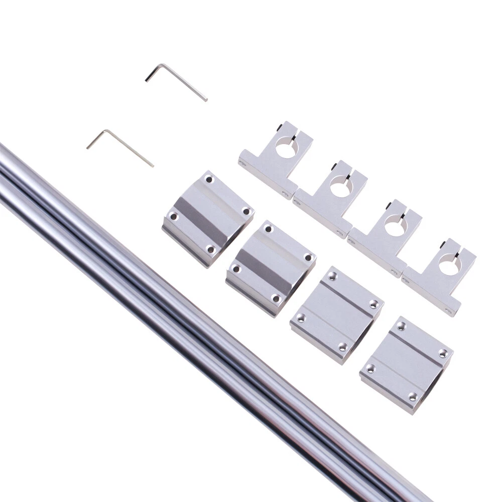 Description Welcome to our eBay store. We focus on commercial and industrial products, household and garden products for many years.we have other CNC products, such as linear rails, ballskrews, aluminum extrusions etc, if you need, we can offer customizable and loose discounts!!! 【HIGH-QUALITY STEEL MATERIAL】- Linear motion bearing kit are made of carbon steel, linear Bearings made of GCr15 bearing steel with aluminum alloy housing. Surface chrome plating treatment beautiful anti-rust, hardness can as high as HRC62, more durable. 【PREMIER LINEAR GUIDING SYSTEM】- Perfect combination of main axle bearing rail and aluminum alloy support, which nicely stabilizes the original rail. Industrial-grade standard SBR block, with high precision linear bearing inside. 【EASY TO INSTALL】- Aluminum alloy shaft support with pre-drilled holes for ease of mounting. Stainless steel Linear optical axis guide bearings linear movement. Easy to install, no need to maintenance. 【WIDE APPLICATION】- Linear motion ball bearing set is widely used for installation on all kinds of machinery; such as: engraving machine, woodworking machinery, printing machinery, machinery, etc. Specifications Type: Linear slide rail set Material: bearing steel,GCr15 SUJ-2 Condition: 100% brand new Performance: Low noise Length: 1000/1200mm Outer diameter: 16/20mm Hardness: About HRC60° Package included: 2PCS OD16/20 Optical Axis 4PCS SCS16UU/SCS20UU 4PCS SK16/SK20 Bearing Block Support 2PCS Wrench Shipping ◆ Our warehouse is in California.Items will be shipped within 2 business day when we received payment. ◆ Most items will be shipped within 1 business days after receiving your payment. We will provide tracking number and you can always find your tracking number on ebay. Payment & Feedback ◆ We accept PayPal only. ◆We left positive feedback for you after receiving payment. Your feedback is very important for us, positive feedback and 5 Score DSR is highly appreciated. ◆Please let us know before leaving any negative feedback or 1 point, 2 point low DSR or open any disputes on Paypal and Ebay, please give us the opportunity to resolve any problems and we will try our best to satisfy your needs.