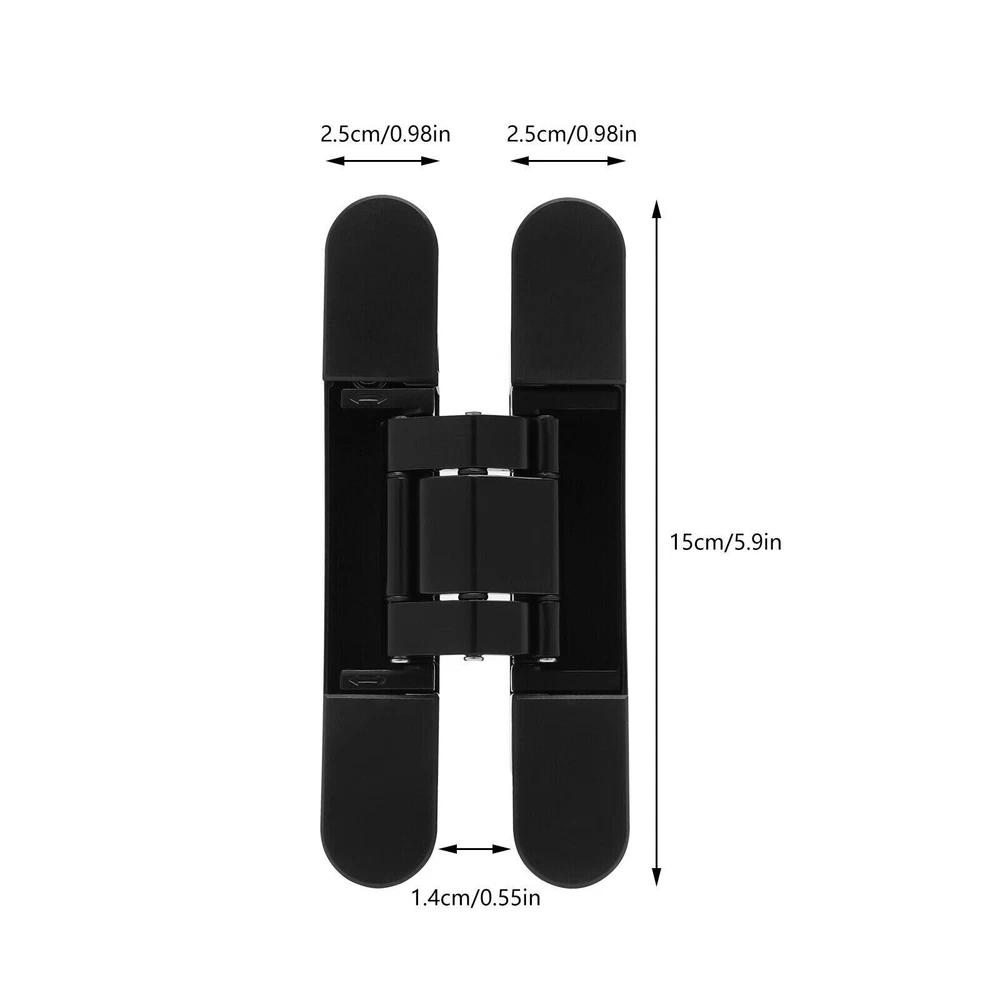 Specification Model: DFL-L030 Material: Zinc Alloy Color: Black Surface Treatment: Painting Mounting Type: Door Mount Number Of Pieces: 2 Maximum Opening Angle: 180° 2 Hinges Hanging Weight Limit: 40kg/88lbs Applicable Door Thickness: 35-850mm/1.4-33.5in Adjustable Range: ±3.0mm/0.12in Vertically, ±3.0mm/0.12in Horizontally and ±1.0mm/0.04in in Depth Gap Between Door and Frame: 14mm/0.55in Package Size: 18.8*6.3*6cm/7.4*2.5*2.4in Each Hinge Size: 150*64*22.5mm/6*2.5*0.9in Gross Weight: 1.2kg/2.65lbs Net Weight: 1kg/2.2lbs Package Included 2*Hidden Door Hinges 8*Covers All Accessories for Assembly 2x 6" Hidden Door Pivot Hinge 180° Degree Rotation Pivot Hinge Shaft Invisible Black Invisible Heavy Duty Door Hinges, Pack of 2 Zinc Alloy 6 inch with Screws Specification Model: DFL-L030 Material: Zinc Alloy Color: Black Surface Treatment: Painting Mounting Type: Door Mount Number Of Pieces: 2 Maximum Opening Angle: 180° 2 Hinges Hanging Weight Limit: 40kg/88lbs Applicable Door Thickness: 35-850mm/1.4-33.5in Adjustable Range: ±3.0mm/0.12in Vertically, ±3.0mm/0.12in Horizontally and ±1.0mm/0.04in in Depth Gap Between Door and Frame: 14mm/0.55in Package Size: 18.8*6.3*6cm/7.4*2.5*2.4in Each Hinge Size: 150*64*22.5mm/6*2.5*0.9in Gross Weight: 1.2kg/2.65lbs Net Weight: 1kg/2.2lbs Description The door of your house must need an excellent hinge to set off. This hidden door hinge is made of high-quality zinc alloy and can withstand forceful opening and closing. 180° flexible opening and closing makes it easier for you to control your door. It can support heavier doors than normal butt hinges and is an ideal alternative to traditional door frame butt hinges. It can easily rotate around a central axis to help you create a stylish and edgy home. Key Features Selected Material : These 2 hidden door hinges are made of high-quality zinc alloy, which makes them quite strong and heavy-duty, capable of bearing 88lbs. Three-dimensional Adjustable : The adjustable range during installation is ±3.0mm vertically, ±3.0mm horizontally and ±1.0mm in depth, allowing you to adjust without removing the door. Easy to Use : It can ensure a maximum opening angle of 180 degrees. Opening and closing will be flexi ble, effortless and with little noise. Wide Application : It is suitable for door thickness within 1.4-33.5inch . Whether it is an inward and outward door, or a left and right door, you will find that this fits your needs easily. Humanized Design : The gap between the door and frame is as small as 0.55inch, so you don't have to worry about pinching your hand when installing and using it. Aesthetically Pleasing : It is decorated with a separate cover plate, making the surface free of screw holes. In addition, its rounded and smooth lines show the beauty of the design, which is b oth dustproof and beauti ful. Invisible : It is a completely hidden door hinge. Once installed correctly, they work smoothly without visible external hinges for a better finish. Guaranteed Customer Service: We aim to provide quality products and services. If you have any problems, please feel free to contact us. We will reply and solve the problem for you as soon as possible. Details Painting Finish : The painting finish will not rust and will resist ever yday scratches, corrosion and fading. Two Pieces : The package includes two door pivot hinges, so they have a stronger stability and fixation than one hinge. Application It is suitable for wooden doors, aluminum doors, fire doors, smoke doors, soundproof doors, security doors, etc. with door thickness within 1.4-33.5 inch, but it is usually used for wooden doors. Package Included 2*Hidden Door Hinges 8*Covers All Accessories for Assembly Notes Please allow the slight color difference caused by the shooting light and 1-3cm error due to manual measurement, and make sure you do not mind before you place the order. Payment Delivery details Terms of sales About us Contact us Payment We accept ebay payment 。 Fees such as import duties, taxes are not included in the item price or shipping costs. These charges are the buyer's responsibility. Delivery details Shipping: 2-9 working days to: USA Terms of sales We maintain high standards of excellence and strive for hundred percent customer satisfaction. Feedback is very important to us. We hope that you contact us immediately before you give neutral or negative feedback, so that we can address your concerns. It is impossible to address issues if we do not know about them! About us Your satis faction is our ultimate goal. We work hard to earn your trust and future business. Our certified technicians have tested each item before shipping. The unit comes with 1 year limited warranty on all manufacturing defects. a) If you receive a defective item, you may return it or ask for a discount. Please contact us within 14 days after you receive the package. b) What you returned must be intact and in its original packaging as re? u. Customer is responsible for shipping costs of the returned item. c) We will cover the cost of shipping back t with the shipping rate indicated in the registration page. We will send you a new unit or refund the full payment you paid. Thank you. Contact us Business Hour Business Hour: Monday To Friday: 8:30 AM to 5:00 PM (Beijing China time) Due to time zones, our reply to your questions may not be immediately. But within above working time, we will reply your email within 24 hours. If it's non-workdays, please kindly be patient and wait till Monday. Please contact us with ebay message. Please feel free to contact us if you have any questions. Monday To Friday: 8:30 AM to 5:00 PM (Beijing China time) Due to time zones, our reply to your questions may not be immediately. But within above working time, we will reply your email within 24 hours. If it's non-workdays, please kindly be patient and wait till Monday. Please contact us with ebay message. Please feel free to contact us if you have any questions. Highlights Compac