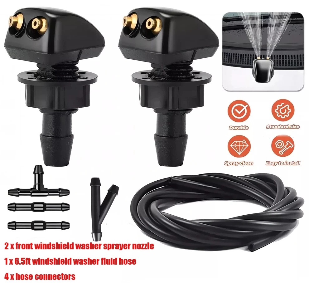 Specification Compatible :Fits most car models Material: ABS Plastic Size: As The Picture Shown Package: 2 PCS x Washer Nozzles 1 Pcs 2 meter hose 2 Pcs 2-way hose connector(I-type) 1 Pcs 3-way hose connector(T-type) 1 Pcs 3-way hose connector(Y-type) Feature Fine workmanship.Made of high quality material,durable,anti-wear and anti-corrosion. Last for years.Outstanding performance and smooth operation.Save your time and money. Keeping the windshield clear and your vision of the road unobstructed.Safe Driving. Deal replacement for your car, replace the old or broken Windshield Washer Nozzle. Specification Compatible :Fits most car models Material: ABS Plastic Size: As The Picture Shown Package: 2 PCS x Washer Nozzles 1 Pcs 2 meter hose 2 Pcs 2-way hose connector(I-type) 1 Pcs 3-way hose connector(T-type) 1 Pcs 3-way hose connector(Y-type) Feature Fine workmanship.Made of high quality material,durable,anti-wear and anti-corrosion. Last for years.Outstanding performance and smooth operation.Save your time and money. Keeping the windshield clear and your vision of the road unobstructed.Safe Driving. Deal replacement for your car, replace the old or broken Windshield Washer Nozzle. Note: We provide clear pictures, measurements where possible. Please check as much as possible to make sure the item is the one that you need. Please allow a slight difference due to manual measurement. Brand Unbranded Country/Region of Manufacture China Manufacturer Warranty 3 Months Universal Fitment Yes Placement on Vehicle Front, Left, Rear, Right Type Washer Nozzle Color Black Features Easy Installation, Quick Spray Hose Length 6.5ft Fitment Type Direct Replacement Material Plastic