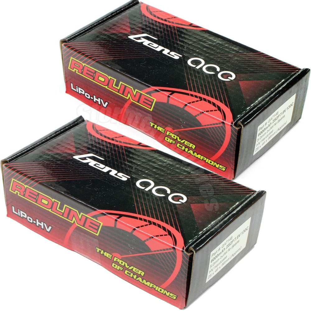 Gens Ace Redline Series 2S 130C 6000mAh Hardcase LiPo Battery Pack. Hardcase LiPo Battery Pack with 5.0mm bullet. Consumers trust the Gens Ace name to deliver the dependability and high performance they expect. The Gens Ace 130C 2S 6000mAh 7.6V LiPo battery pack has a high-capacity, high-discharge rate that gives you the power and run-time you expect from all Gens ace RC Car lipo batteries. Specifications: Capacity: 6000mAh Voltage: 7.6V / 2S2P / 4 Cell Discharge Rate: 130C Max Burst Discharge Rate: 260C Weight: 220g Size: 96mm x 46mm x 25mm (L x W x H) Connector Type: 5.0mm bullet