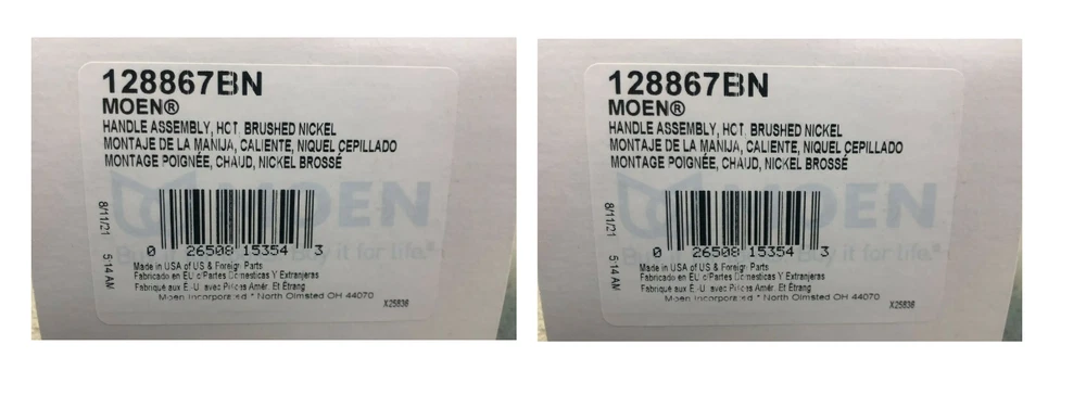2x Moen Brushed Nickel Handle Kit 128867BN From finishes that are guaranteed to last a lifetime, to faucets that perfectly balance your water pressure, Moen sets the standard for exceptional beauty and reliable, innovative design. Bring elegance to your home with premium selections from Moen. From the sophistication of period Traditional to the streamlined refinement of minimalist contemporary, you'll find a host of amazing ways to express your style with products from Moen.