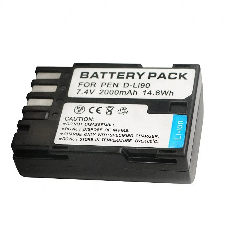 D-LI90 DLi90 7.4V 2000mah Replacement Battery for Pentax K-7, K-7D, K-5, K-52, 645D, K-5IIs, K-5II, K-01, K-3, K-3 II, 645Z, D-BG4 Cell Specifications: Battery Model: D-LI90 Battery Type: Rechargeable Li-ion Battery Pack Battery Voltage: 7.4V Battery Capacity: 2000mah Compatible with: For Pentax 645, 645D, 645Z, K-1, K-01, K-3, K-3II, K-3 2, K-5, K-5D, K-5II, K-5 2, K-5IIs, K-52s, K-7, K-7D, Pentax K1, K01, K3, K3II, K3 2, K5, K5D, K5II, K5 2, K5IIs, K52s, K7, K7D Package Included: 2 x D-LI90 DLi90 7.4V 2000mah Replacement Battery