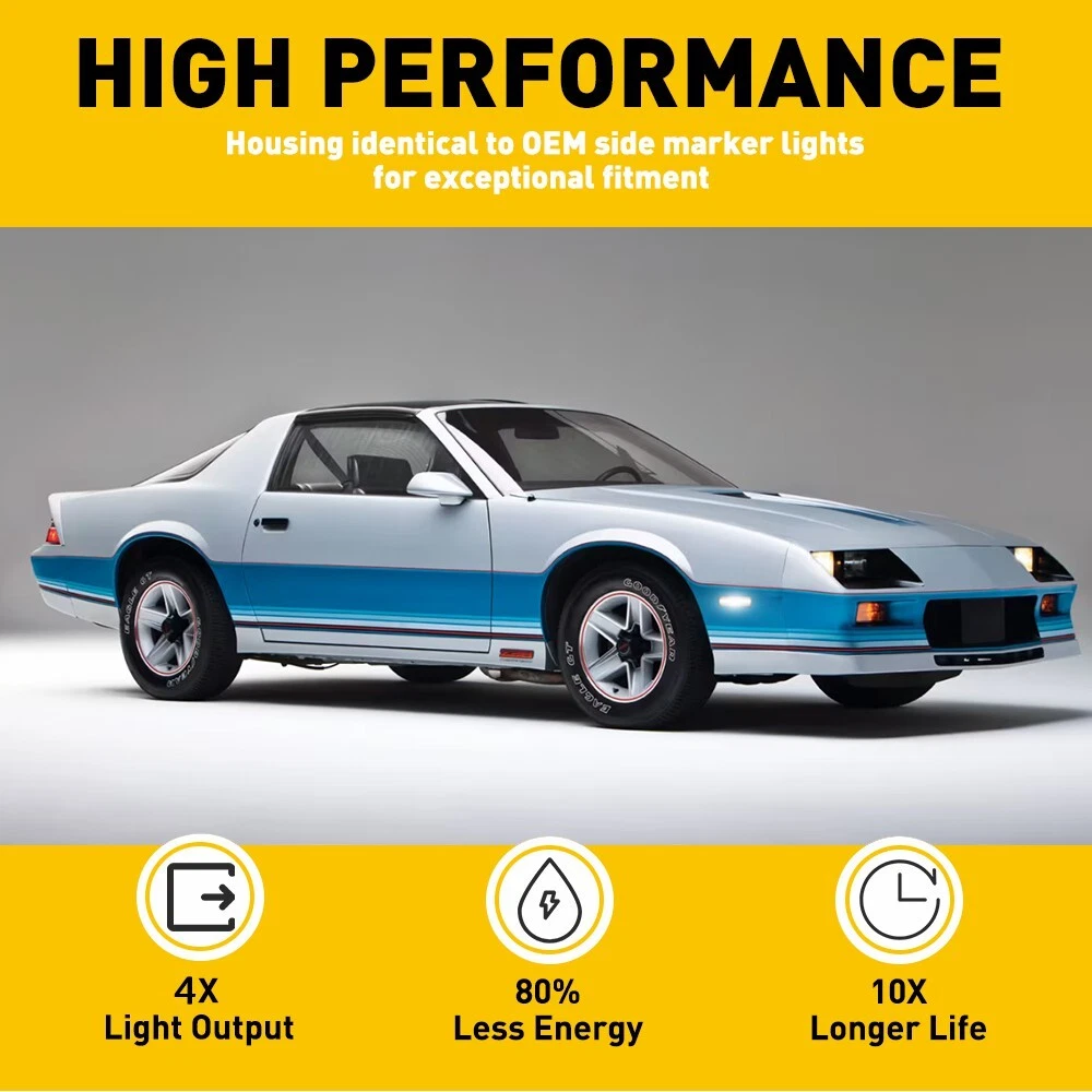 LED Strip Rear Side Marker Lights Fit For Chevy Camaro,Pontiac Firebird etc Fit for: 1982-1992 Chevy Camaro 1982-1992 Pontiac Firebird Specifications: Lens color:Smoked Mode:Normal lighting(white) Waterproof grade:IP67 Service life:50000h+ Placement on vehicle:Rear OE:915589, GM2551110, 915590, GM2550118 Features: Exquisite Appearance: Our side light is 1:1 design according to the vehicle model, it adopts smoked lens on appearance for becoming more attractive and fitting the car perfectly. High Brightness: 2x Smoked LED Front Side Marker Lights For 1982-92 Chevy Camaro Pontiac Firebird LED Strip Rear Side Marker Lights Fit For Chevy Camaro,Pontiac Firebird etc Fit for: 1982-1992 Chevy Camaro 1982-1992 Pontiac Firebird Specifications: Lens color:Smoked Mode:Normal lighting(white) Waterproof grade:IP67 Service life:50000h+ Placement on vehicle:Rear OE:915589, GM2551110, 915590, GM2550118 Features: Exquisite Appearance: Our side light is 1:1 design according to the vehicle model, it adopts smoked lens on appearance for becoming more attractive and fitting the car perfectly. High Brightness: Compared with other similar side light products,powerful LEDs designed to be visually striking and enhance visibility in our products. At the same time,it can make the reminder function of turn signal light becoming additional obvious in the course of driving and getting rid of the dim light from now on. Stable Performance: Our product is quite stable,with longer service life(service life: more than 50,000 hours).we usually provide 1 year replacement warranty and friendly customer support for bringing satisfied shopping experience. Less Consumption: Our light can reduce the energy waste with lower power consumption to creat better energy-saving effect, which is friendly for environmental protection. Note: In order to ensure the item fit your vehicle properly, please check and confirm the model before purchasing!!! Packaging include: 2X LED Side Lights Item Specifics Brand AUXITO Interchange Part Number Made by ISO2001 certified manufacturer, Excellent Quality! Euro Style Smoked Lens SideMarker Signal Light Reflectors Set Corner Light Corner Light Kit Set Pair Front Left Right Driver Side Passenger Side For 1982-1992 Chevy Camaro, Manufacturer Part Number 915589, GM2551110, 915590, GM2550118 Manufacturer Warranty 2 Years Placement on Vehicle Left Right Front Fitment Type Direct Replacement Lens Color Smoke/Tinted Certifications DOT SAE Features DOT-Certified,SAE-Certified,Sealed Assembly,Reflector Housing Type Side Repeater Light Assembly OE/OEM Part Number 915589, GM2551110, 915590, GM2550118 Finish Smooth Housing Color Black Light Color Cold White Number of Bulbs 2 Lighting Technology LED Bulb Shape Code W5W (168) Wattage High Power Items Included Bulbs Voltage 12 V Color Temperature 6000K FAQ ♥ If you have a decoding problem or any other problems, please contact us first, we will help you with it. We will reply you within 24 hours in working days. I'm a new seller, thanks a lot for your trust and convince! I will serve you with all my heart. ♥ Q1: Will this bulb fit my vehicle? A: We can match almost any vehicle to one of our bulb sizes. eBay only lets us include some vehicle fitments per listing, but if your vehicle does not show up on the compatibility table at the top of our listings, welcome you to contact us for free consulation before purchasing a product. Q2: My item has not arrived, what's taking so long? A: Sometimes items take longer than expected, especially if it’s going far or to rural area. Check with your post office to see if your item has been held up. Sometimes Royal Mail will not update a tracking number until it has arrived at its destination. If your item still don't arrive after a few days, let us know so we can double check for you and help solve it asap. Q3: My bulbs won't fit, help! A: Special bulb holder may be required. See if you can take the holder from the stock bulb. If not, let us know. The bulb size may be wrong, double check the item you received with the item you ordered. Do you have an aftermarket lighting housing? These may not be perfectly fitted for aftermarket bulbs and will require some manual modifications. Q4: Neither side lighting up? Both sides flicker, hyper flash, or work inconsistantly. A:Check the light fuses, and then check the ballast plugs to insure correct installation. If this doesn't work, there may be a voltage problem with the vehicle. You probably just need a relay or capacitor. Even though some bulbs are builtin resistors, they may still need a decoder. Pay & Ship (1). We gladly accepts payment via PayPal, We will ship your item(s) within 24 hours. (2). Before payment, please keep the consistency of Paypal address and ebay address. (3). Quantity orders are welcome! Returns (1). We offer 60 days free return policy. Please contact us within 60 days from the date you receive your order if you have any issues with the product or want return. Refund will be send after we got your resend package. (2). All returned items should be in the original packaging , return tracking information should be provided . Contact Us (1).Negative feedback will not help resolve any problems you have, please contact us via eBay messages before leaving negative feedback , our customer service will make best effort to help you with the issues. (2).We maintain high standards of excellenceand strive for 100% customer satisfaction! Feedback is very important to us. We request that you contact us immediately before you give us neutral or negative feedback, so that we can satisfactorily address your concerns. About us We're professional in car and motorcycle accessories, especially in LED bulbs. We have our own factory and R&D team. Our belief is to sell top quality items that fit your car and serve you with our heart. Anything please feel free to contact us! Our customer service is very responsibility. Come and follow us! DESCRIPTION NEW ARRIVED HOT SALE CONTACT US SAVE