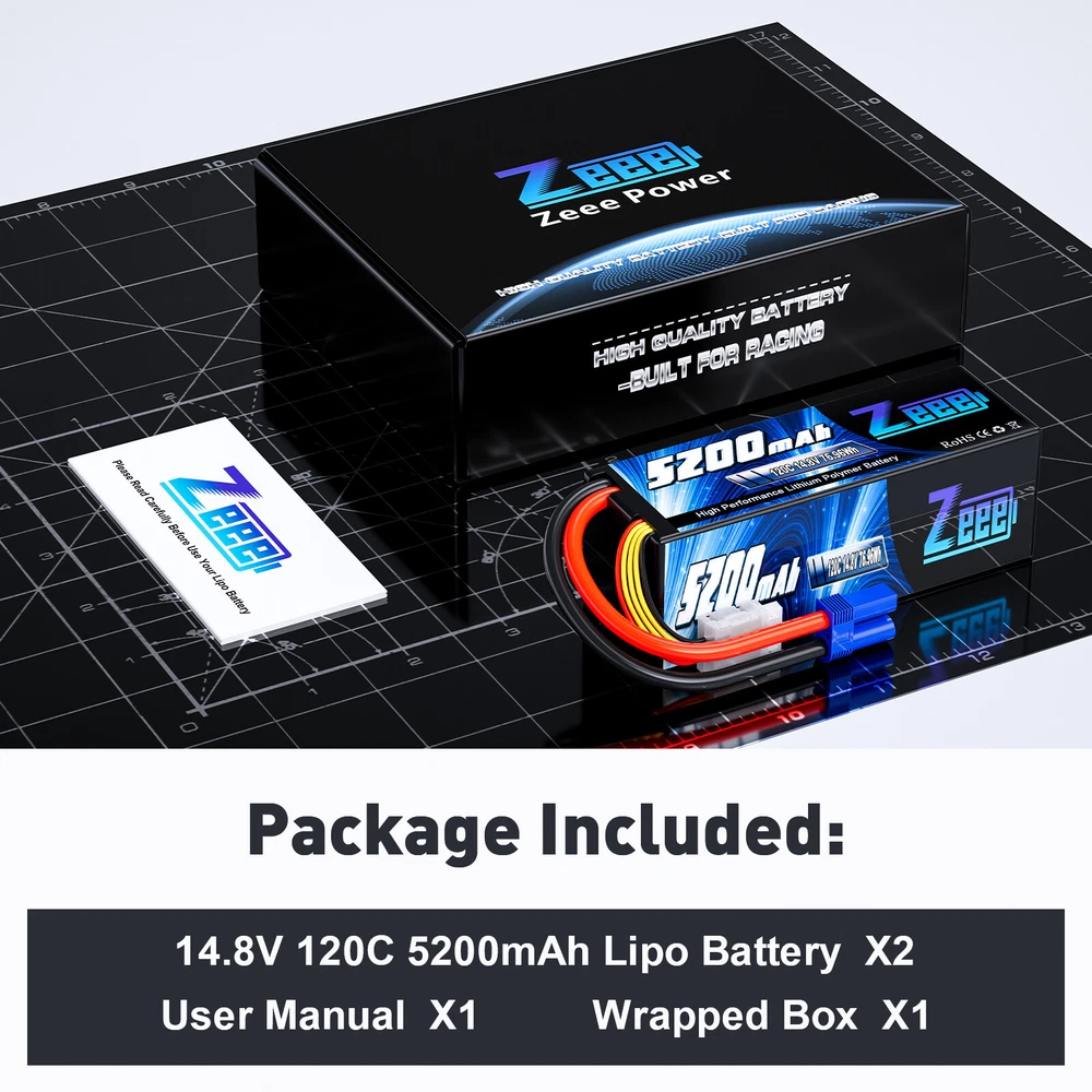 7.4V 2S 7.6V 2S 11.1V 3S 14.8V 4S 18.5V 5S 22.2V 6S Safe Bag zeee_official_store 7.4V 2S LiPo Battery 7.6V 2S LiPo Battery 11.1V 3S LiPo Battery 14.8V 4S LiPo Battery 18.5V 5S LiPo Battery 22.2V 6S LiPo Battery Zeee LiPo Battery Bag Other 2x Zeee 4S LiPo Battery 5200mAh 14.8V 120C EC5 for RC Car Truck Crawler Monster Zeee 4S Lipo Battery 5200mAh 14.8V 120C Hard Case Battery with EC5 Plug for RC Buggy Truggy Crawler Monster Car Boat Truck(2 Pack) Specifications: Brand: Zeee Voltage: 14.8V Capacity: 5200mAh Discharge Rate(C): 120C Configuration: 4S1P Connector Type: EC5 Connector Balancer Connector Type: JST-XH Length: 138mm/5.43inch Width: 47mm/1.85inch Height: 48mm/1.89inch Approx Weight(dev.10g): 470g/16.58oz/pc Compatible with: Zeee 4S 5200mAh lipo battery compatible with 1/8 and 1/10 rc car, Losi, HPI Strada XB 1/10 RTR Electric Buggy, Team Associated, Axial, Duratrax, Jammin, Emaxx, Bandit, Rustler version, etc. (Only if the voltage, dimension and the plug match, then it will fit). Package Content: 2 x Zeee 4S LiPo Battery 14.8V 120C 5200mAh with EC5 Connector HardCase 1 x User manual 1 x Wrapped box About Us Payment Shipment Return and Warranty Feedback About Us Zeee Power established at 2011, which has grown to the leading manufacturer of RC lithium battery in China. Over the past years, we boast of more than 300 trained workers, 36 experienced engineers and technicians in RC lithium battery R&D solution to ensure that we provide high quality products and first-class services to our global customers. All of Zeee RC LiPo Batteries are designed with safe and steady formula of raw material, smooth and steady discharge curve and rigorous scientific quality control system, in order to ensure longevity and reliability. Our batteries are manufactured using the superior ‘stacking’ method, which provides you with reliable capacity and consistent power. Payment Payment should be Complete within 5 days after the end of the Auction. Non-paying winners will be filed for closing auction. Shipment 1. All items will be shipped to buyer's eBay address. Before you pay, please make sure your address on eBay matches the address you would like us to ship to. 2. All items will be shipped within 1 business day upon receipt of payment. 3. Items will be sent from USA directly, it usually takes approximately 4-7 business days to receive order. Return and Warranty 1. Our items come with 180-Day warranty. 2. Our warranty does not extended to any products that are physically damaged or that are not under normal operating conditions as a result of misuse or improper installation on the buyer/user's part. 3. This product comes with 30-Day Money Back Guarantee. 4. We stand behind every product we sell. If you're not pleased with your purchase, we'll be happy to make an exchange or refund. Feedback 1. We value your feedbacks, please leave your feedback and comment. 2. We will automatically leave positive feedback to every buyer who completed the transaction and left positive feedback to us. 3. Your better comments will be an encouragement for us to offer the better quality and the better service in future. 4. If you have any problems, pls contact us, we will try our best to help you to solve it.