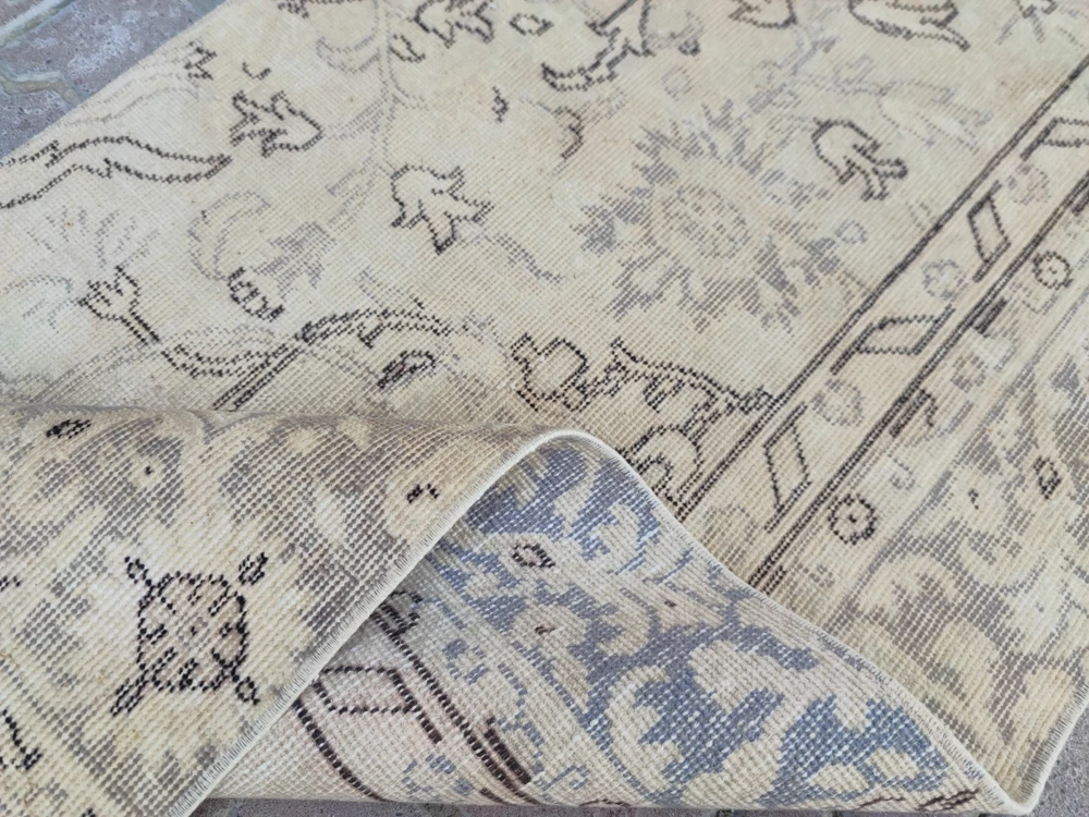 Sweet Product Story Indulge in the timeless charm of this Vintage Runner Rug , a stunning Oushak Runner that whispers stories of Anatolian heritage and artistry. Handwoven decades ago by skilled Turkish artisans, its soft Neutral Rug palette of elegant blue and white tones exudes understated luxury, perfect for sophisticated interiors. This masterpiece is not merely a floor covering; it’s a slice of history, adding depth and soul to your living space. As trends come and go, a genuine Turkish Runner Rug remains a lasting investment—a piece that sparks conversations and transforms your home into an artistic sanctuary. Whether styled in modern minimalism or eclectic Bohemian Rugs decor, it effortlessly blends in, yet stands out. Production Process (Craftsmanship & Techniques) Every inch of this exquisite Handmade Runner Rug was created using traditional Oushak weaving techniques passed down through generations. Looms echo with rhythmic movement as artisans tie each knot with precision and patience, ensuring lasting durability and unique artistry. This is not machine-made; it’s human touch woven into art. The Wool Rug is dyed using natural vegetal pigments, giving it a sophisticated, muted finish that ages gracefully over time. The slightly distressed look—a signature feature of Vintage Rugs —creates a soulful patina that modern reproductions can never replicate. Materials Used 100% High-Quality Wool Pile Cotton Foundation Product Dimensions Metric: 72 x 293 cm ( 2,3 x 9,6 feet ) Usage & Care Instructions Vacuum gently without a beater bar. Rotate the rug every few months for even wear. Spot clean spills immediately with a damp cloth. For deep cleaning, consult a professional specializing in Vintage Rugs . Avoid prolonged direct sunlight to preserve natural dyes. Processing Time Your rug ships within 1-3 business days after your payment is received. We take pride in secure and careful packaging to ensure your Decorative Runner Rug arrives in pristine condition. Return Policy We gladly accept returns or exchanges if you wish to return your item for any reason. Please contact us within 14 days of delivery and ship items back within 30 days. Buyers are responsible for return shipping costs unless the item arrives damaged or faulty. If the item is not returned in its original condition, the buyer is responsible for any loss in value. If your package arrives damaged, please photograph it immediately and contact us so we can arrange a replacement or refund. Important Information Each Vintage Handmade Runner Rug is entirely unique and crafted by hand. If you order more than one piece, please note that subtle differences in color tones, shapes, and measurements may occur. These variations are not flaws but an inherent part of the artistry and individuality of genuine vintage works. Other Details Please feel free to message us with any questions about this Hallway Runner Rug or any other listings. We respond promptly despite any time zone differences. Interested in custom or wholesale orders? Drop us a message! ⭐ We offer discount coupons for buyers who leave a 5-star review. Your satisfaction means everything to us.