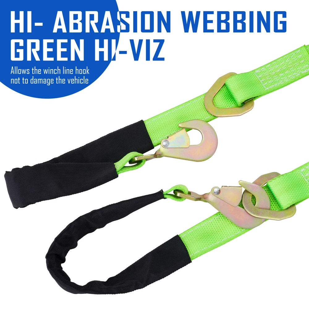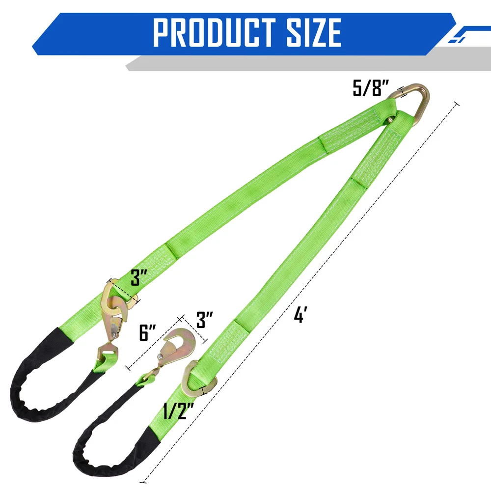 This V-bridle strap is a game-changer for towing! The heavy-duty Cordura sleeve and high-visibility webbing make it super durable and easy to spot. The snap hooks and axle straps provide a secure connection, and the 4,700 lb working load limit gives me total peace of mind when hauling. Love how the oblong link protects my vehicle from winch damage—such a smart design. Perfect for trailers and emergency towing situations!