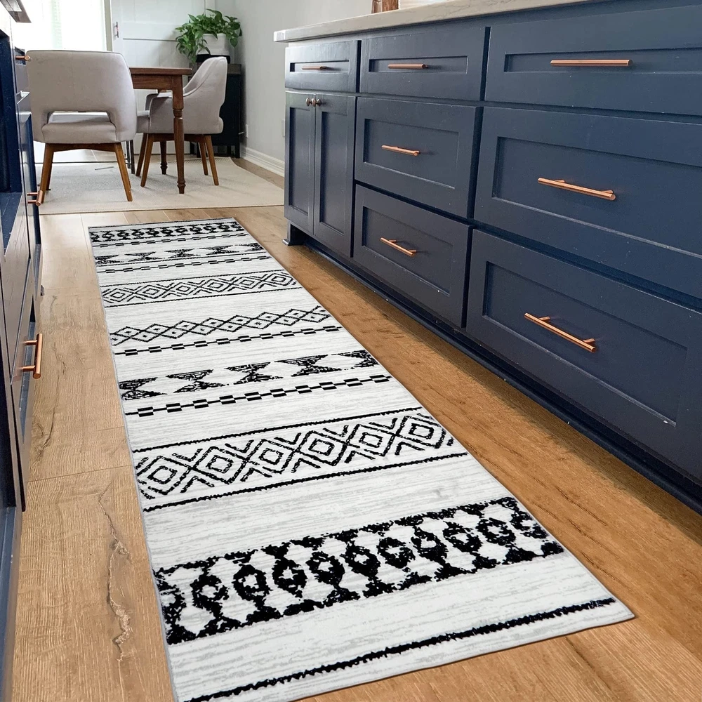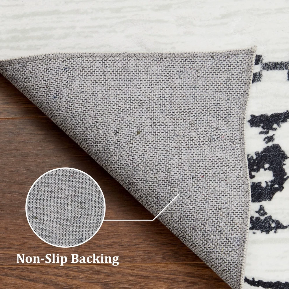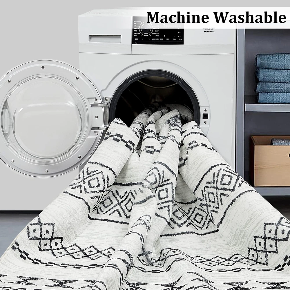 MACHINE WASHABLE: The low pile and lightweight Rug Cover is stain & water Resistant, simply toss in the machine for a quick wash, and line dry or dry on air-only cycle without heat. Your machine washable area rug is so easy to clean and care for! MACHINE WASHABLE: The low pile and lightweight Rug Cover is stain & water Resistant, simply toss in the machine for a quick wash, and line dry or dry on air-only cycle without heat. Your machine washable area rug is so easy to clean and care for! NON-SLIP: Our non-slip Rug Pad is made of high quality TPR backing, keeps the rug securely in place and effective at preventing the rug from sliding on the floor, while protecting the floor from scratches made by heels and sharp objects, for children playing on the floor is a great choice, perfect fit for high traffic areas DURABLE AND PET-FRIENDLY: Durable enough for high-traffic areas, this comfortable area rug is perfect for families with . Low-pile waterproof rug fibers won’t trap dirt and debris, so they’re pet-friendly. Our trendsetting rug designs are perfect for the living room, dining room, entry, bedroom, or home office MODERN DESIGN: This rug's modern geometric design is stylish and versatile, with a classic design at a reasonable price point. Each rug prints with a geometric pattern in modern design, to create a peaceful atmosphere for your home. This purposefully Boho-inspired rug embodies a global look that never goes out of style EASY CARE: Please unfold the rug when you receive it. There will be creases at the beginning, please don't worry. Use your hand to gently smooth them out, flatten them on the floor and walk around, the creases will relax within a week