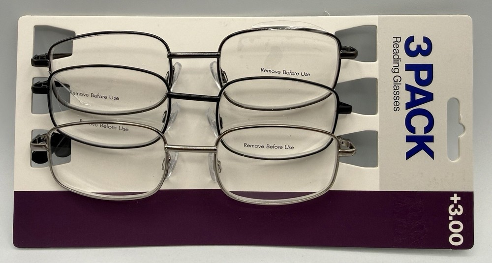 3 Adult Reading Glasses Wire Frame +3.00 Metal Frame 3 Pack.