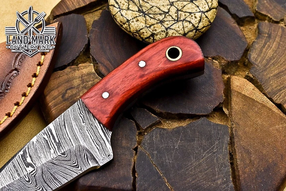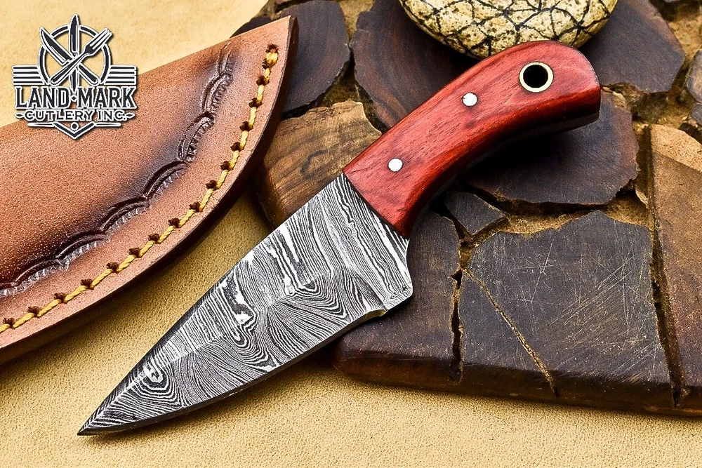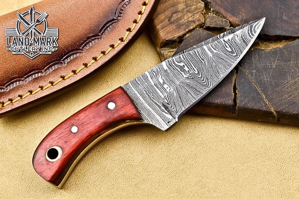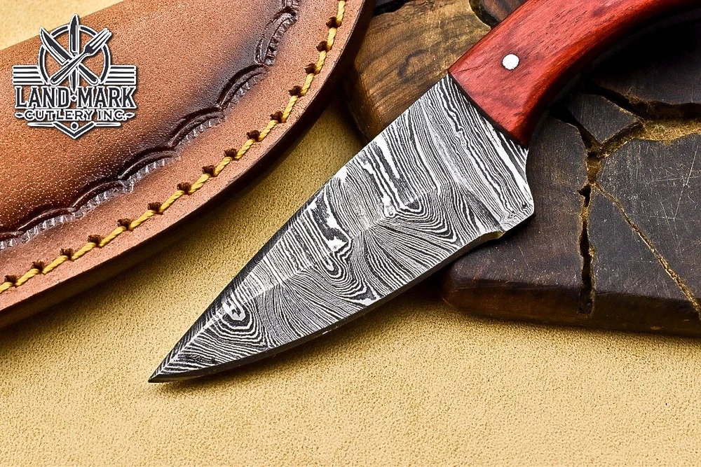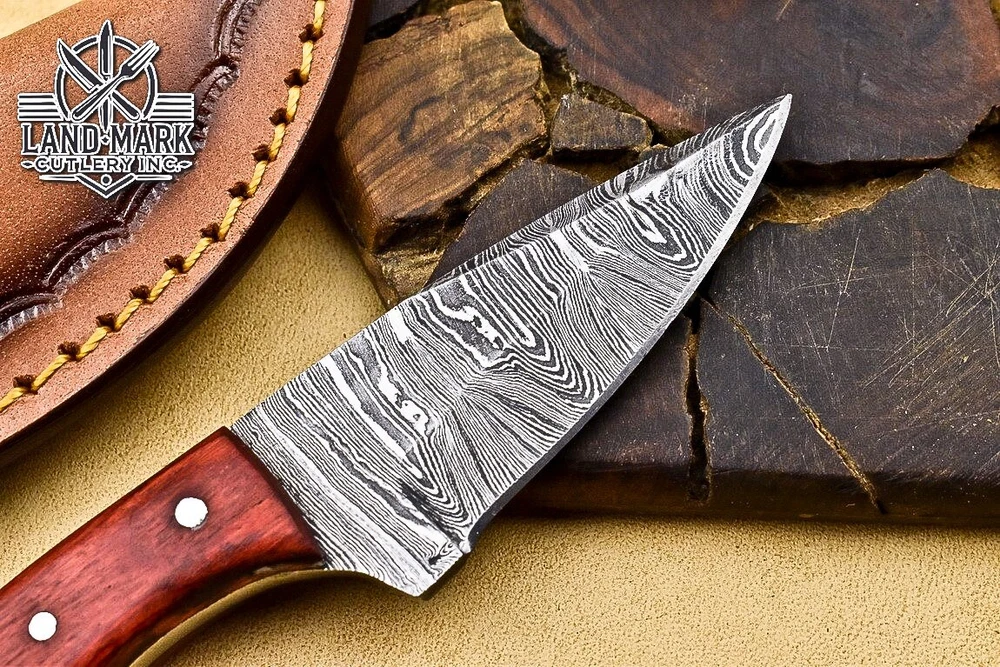 3" BEAUTIFUL DAMASCUS STEEL HUNTING SKINNER KNIFE WITH PAKKA WOOD HANDLE
