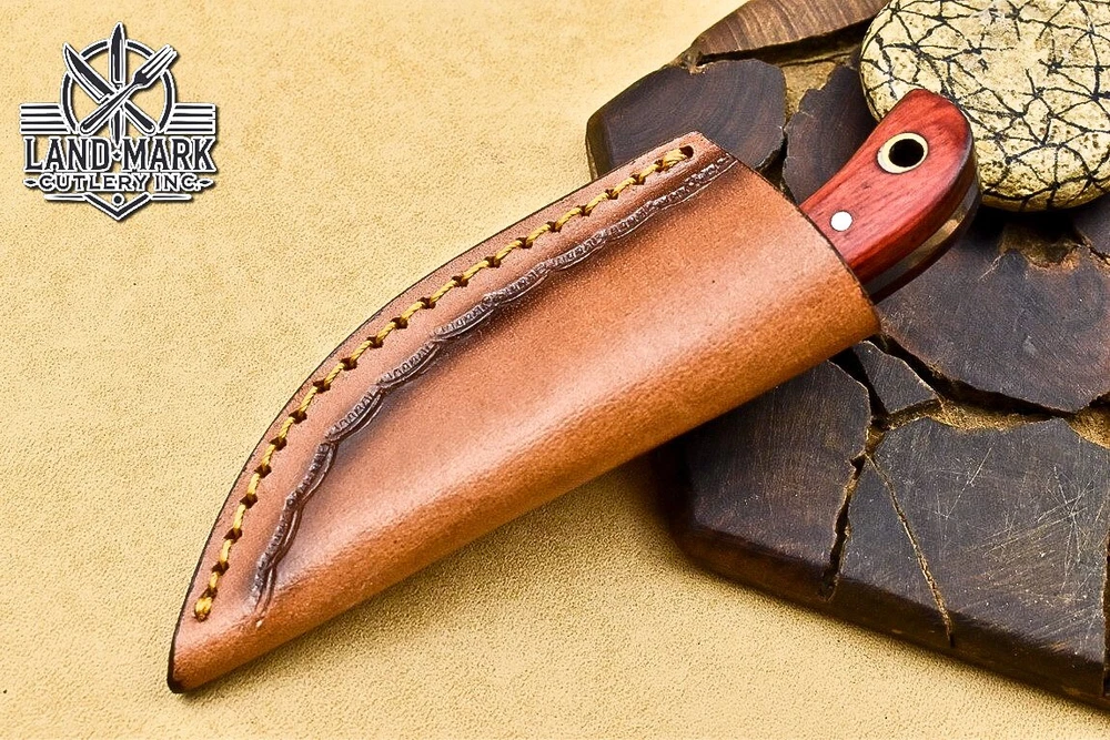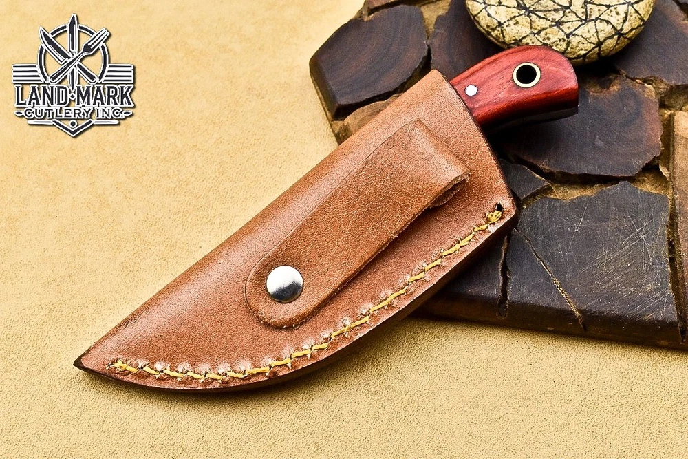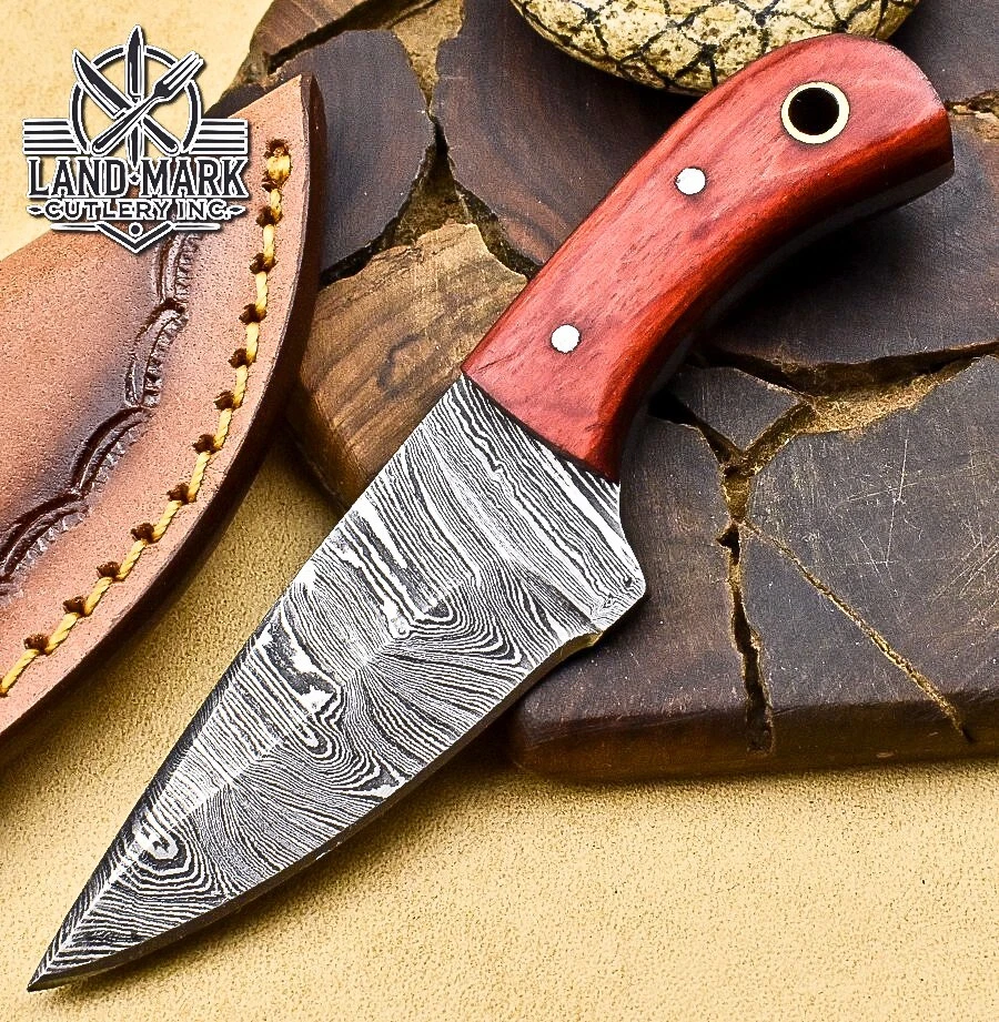 Custom Hand Made DAMASCUS STEEL HUNTING KNIFE WITH PAKKA WOOD HANDLE We offer a shipping discount for More then one purchased . And discount will be apply on combine invoice, Discount will not apply on separate payment. ITEM DETAILS OVER ALL LENGTH 3.0 inches long (Approx) HANDLE LENGTH 1.5 inches long (Approx) BLADE LENGTH 1.5 inches long (Approx) BLADE HARDNESS 58-60 HRC Which Holds The Sharp Edge For Long Time. HANDLE PAKKA WOOD COVER LEATHER SHEATH This Awesome custom made KNIFE has a nice hand forged with the combination of 4340 & 1080 steel. HOW OUR DAMASCUS IS MADE: All our Damascus is real and not just an acid etch. Damascus is a mixture of 1080HC and 4340 nickel carbon. You heat them up together and then fold the bar over and over to get the desired layers, ours are 396 layers. Then you burn the blade in acid, and it turns the nickel satin color and the high carbon turns blackish gray. This is how the layers are exposed to show the layers of the new steel created coined "Damascus". All Damascus is acid etched to show the layers. If you high polish the metal it will be shinny satin like all steels. Only after you burn the sides of the blade with acid do you see the layers of the two steels. Makes sense? After we make our knives we high polish the handles and put an edge on the blade. The high polishing buffs off the acid burned layer of the handle, and the blade edge is sharpened and the acid burned edge becomes satin. You can re-burn the tang of the blade near the handles and the edge of the blade and it will show the layers once more. All our knives are hand made, durable and unique ***** YOU WILL RECEIVED THE SAME KNIFE Qality Standards Our Damascus blades are made from high quality non-stainless steels which rival or exceed any Damascus blade made from the 10 series with 4340. Our Damascus combination has taken years to perfect and has been tested under a variety of application which will offer professional performance in categories of toughness, strength (lateral stress) and edge honing and holding ability. In a 5 spot Rockwell test our blades will average near or close to 58 which offers a perfect balances between its toughness and strength.Our blades due to carbon content need to be regularly treated with wax and/or 3 in 1 oil to maintain its superior quality. Questions if you have any question feel free to send us message we aim to answer all questions within 24 hours Feedback If you are not satisfied with our service please contact us before leaving any negative or natural feedback. We will resolve all issues as quickly as possible. Disclaimer We are not responsible for any injuries associated with the use of our tools. Our products are intended for legal use only by responsible buyers. Therefore, we will not sell our products to anyone under the age of 18. Before bidding please check your country laws as some countries Custom don't allow this. If your purchase is held by Custom Authorities in your country/State we will not be responsible for that and no refund will be issued Shipping We offer a 20% shipping discount for More then one purchased . And discount will be apply on combine invoice, Discount will not apply on separate payment We ship within 24 hours after receiving complete payment but this can be delayed due to week ends or Governments and Religious Festivals . . This is beyond our control and we apologize for this inconvenience. Precautions Our Tools are very sharp so open and use them very carefully We are not responsible for any injuries associated with the use of our tools Tips to Care knife 1. NEVER STORE YOUR KNIFE FOR LONG TIME IN LEATHER SHEATH. 2. LEATHER CAN ABSORB WATER, WHICH WILL RUST THE KNIFE. 3. ALWAYS CLEAN THE BLADE AFTER USING WITH OIL OR WAX