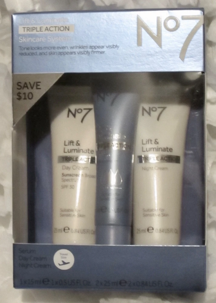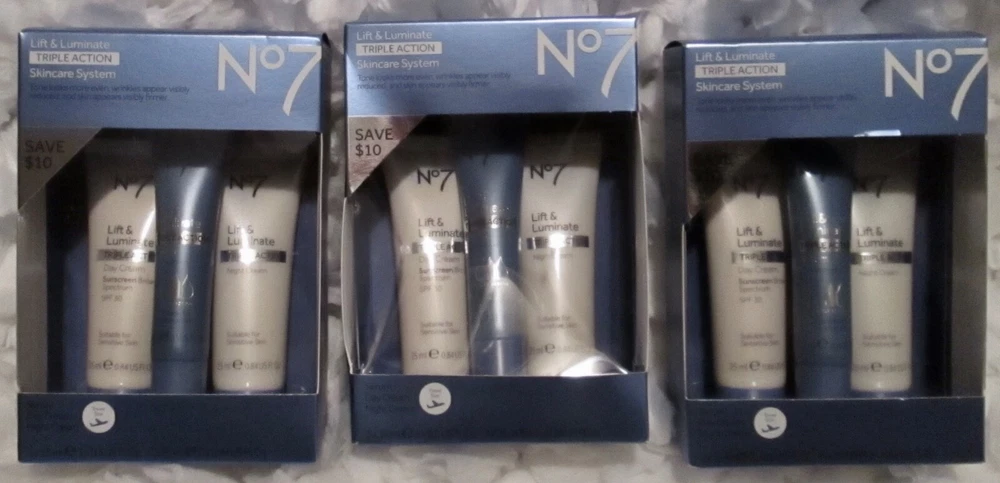 BRAND NEW. SEALED. ***3*** X BOXES No7 LIFT & LUMINATE TRIPLE ACTION SKINCARE SYSTEM ~EACH BOX CONTAINS: SERUM. 1 X 15 ml/ 0.5 US FL OZ DAY CREAM. 1 X 25 ml / 0.84 US FL OZ NIGHT CREAM. 1 X 25 ml / 0.84 US FL OZ *PLEASE NOTE EXP 07 2023* PRICED TO SELL. ALL SALES ARE FINAL. SEE PICS PROVIDED-WHAT YOU SEE IS EXACTLY WHAT YOU WILL RECEIVE *FREE SHIPPING IN THE USA ONLY* THANK YOU FOR VIEWING THIS LISTING HAVE YOURSELF A GREAT DAY