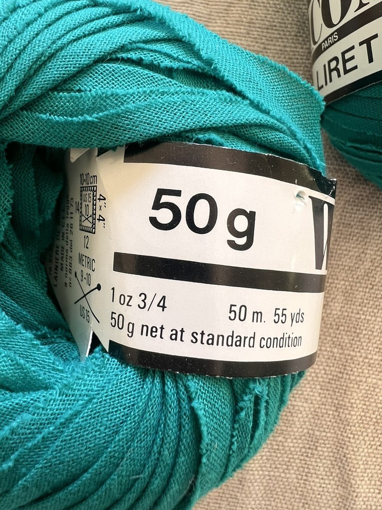 3 Balls Welcomme La Lirette Ribbon Tape Yarn in Turquoise 100% Cotton Rare Discontinued
