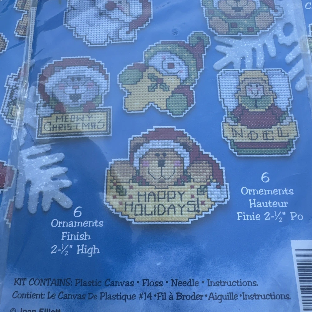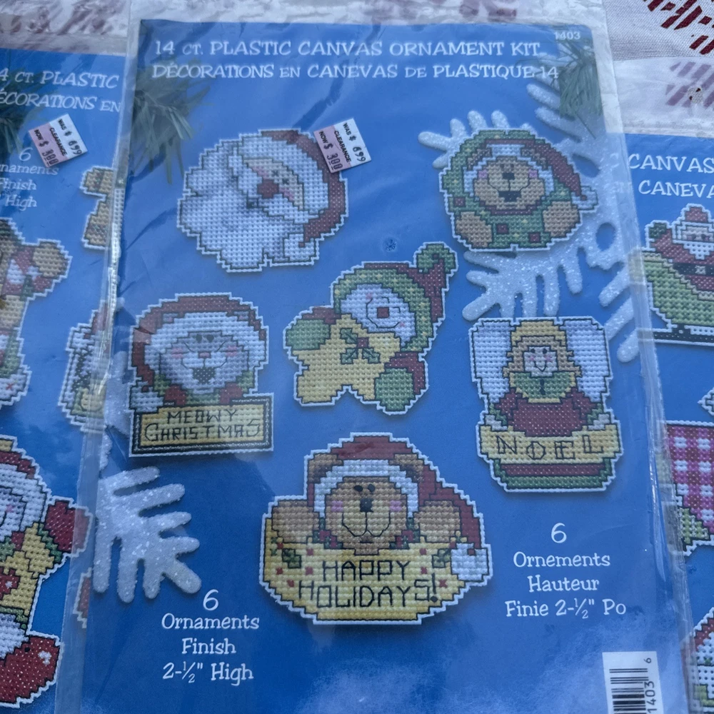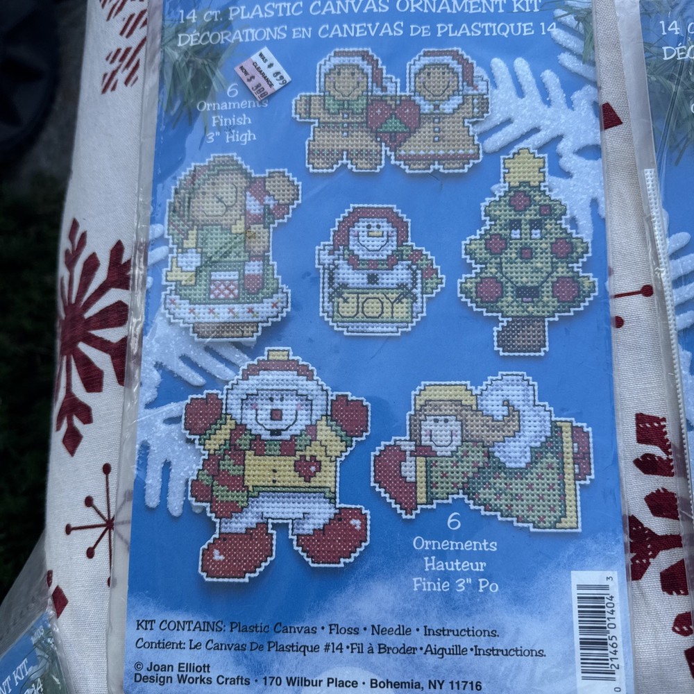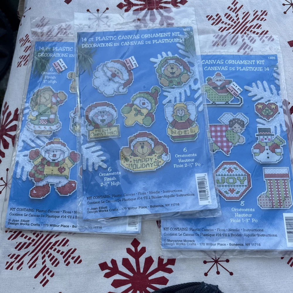 The Christmas Plastic Canvas Kit by Design Works includes 14 multicolor ornaments designed for hand embroidery on plastic canvas. Made in the USA, this kit comes with everything you need to create festive Christmas decorations. The blank pattern application allows for personalized customization, making it a fun and creative project for crafters and embroidery enthusiasts. Perfect for adding a homemade touch to your holiday decor, this kit is sure to bring joy and nostalgia to your Christmas season. Include 3 kits of plastic canvas # 1403 #1404 #1405