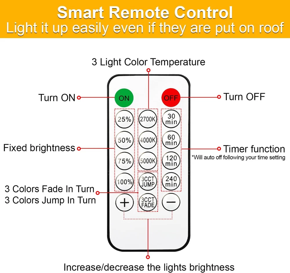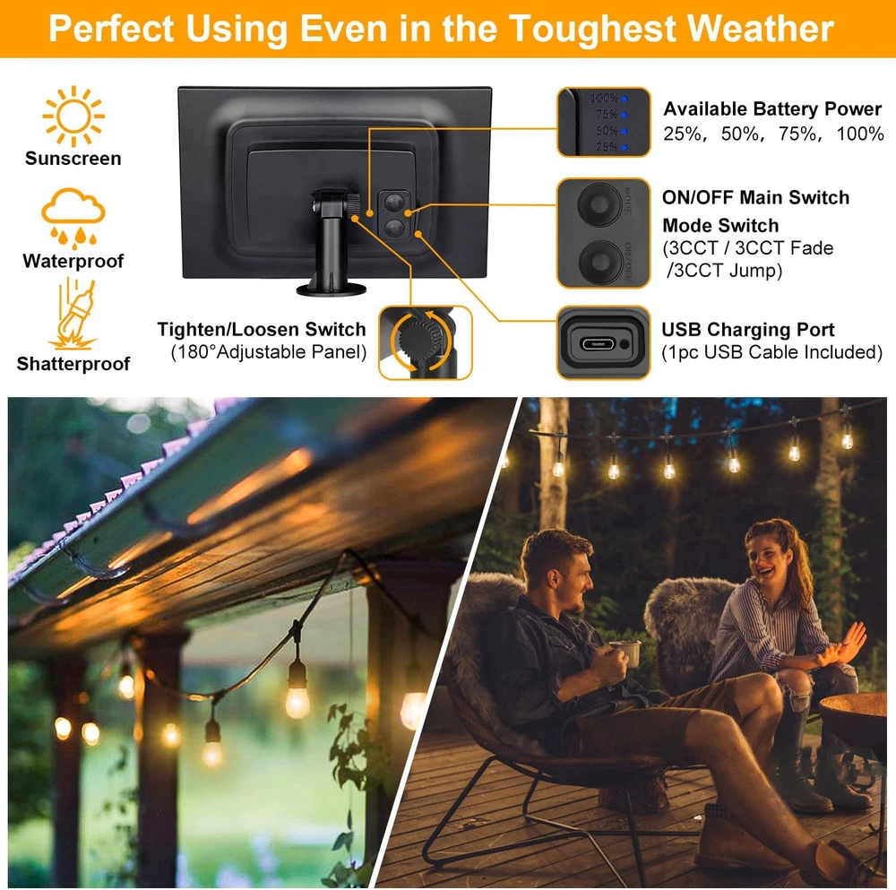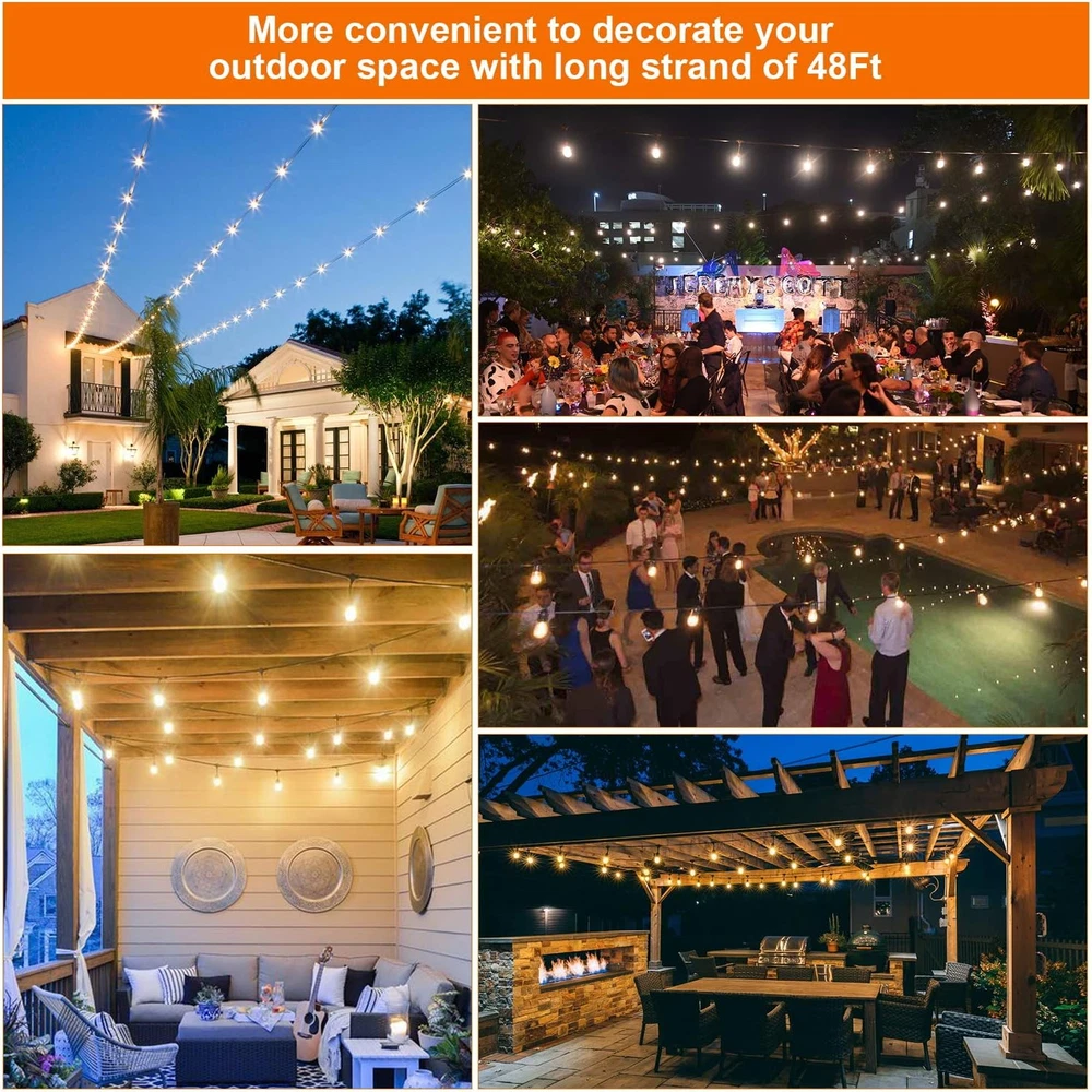 3 Color In 1 Solar String Lights Waterproof Dimmable 48 Ft Remote LED Patio New 3-Color in 1 Solar String Lights Outdoor Waterproof Dimmable, 48ft Remote LED Patio Lights,15 Hanging Sockets Shatterproof Light for Backyard Product Description: Transform your outdoor space with these 48-ft Solar String Lights. Featuring 3 colors in 1, dimmable settings, and a waterproof design, these LED lights provide the perfect ambiance for patios, gardens, and more, all controlled via a convenient remote. Features: 3 Colors in 1: Choose between warm white, cool white, or multicolor to create the perfect atmosphere for any occasion. Dimmable: Adjust the brightness to your desired level for a custom lighting experience. 48 Ft Length: Provides ample coverage for large outdoor areas like patios, decks, gardens, or balconies. Solar Powered: Eco-friendly and energy-efficient, these lights are powered by solar energy for hassle-free operation. Waterproof Design: Built to withstand the elements, making them ideal for outdoor use year-round. Remote Control: Convenient remote lets you control the lights from a distance, adjusting settings with ease. Easy Installation: Simple to hang or drape, with no wiring required for quick setup. Durable LED Bulbs: Long-lasting and energy-efficient LED bulbs for consistent and bright lighting. Perfect for adding a festive touch to your outdoor spaces or creating a cozy, inviting atmosphere for gatherings and events. Item model number YGM-S14-15S Light Source Type LED Style Antique / Modern / Classic / Traditional / Commercial / Vintage Number of Items 1 Power Source Solar Powered Number of Light Sources 15 Control Method Remote Theme Space, Lantern, Christmas, Halloween, Thanksgiving Style Number YGM-S14-15S Controller Type Remote Control Occasion Type Engagement, Wedding, Anniversary, Birthday, Seasons, Winter Holidays Seasons All Seasons Number of Batteries 3 AAA batteries required. (included) Additional Features Remote Controlled, Energy Efficient, Dimmable, Waterproof, Shatterproof Package Dimensions 10.31 x 9.29 x 6.54 inches; 5.09 Pounds Indoor/Outdoor Usage Outdoor Material Type Plastic Light Color Yellow, White (Warm White, Nature White, Daylight White) Water Resistance Level Waterproof Item Weight 5.1 Pounds Occasion Engagement, Wedding, Anniversary, Birthday, Seasons, Winter Holidays Special Feature Remote Controlled, Energy Efficient, Dimmable, Waterproof, Shatterproof Bulb Base E26 Bulb Shape Size S14 Color Black Wattage 3.5 watts Indoor Outdoor Usage Outdoor Batteries 3 AAA batteries required. (included) Voltage 5 Volts Included Components 2 * Remote, 1 * User Guide, 1 * 48FT Solar String Lights, 18 * E26 S14 LED Bulbs (3 Spares), 1* Solar Panel with Clip & Stake Style Name Antique / Modern / Classic / Traditional / Commercial / Vintage Size 48FT Shipping Fast shipping is very important for us. Our standard USA shipping service is FREE. Your order will be shipped within 1-2 business days upon full payment received. Your order will be delivered within 1-3 business days after the handling time. We only ship to the confirmed address. We reserve the right to cancel any order for any reason at any time. We are not responsible for undeliverable addresses. Returns and payment We offer a 30 days return policy from checkout winning date. FeedBack Your feedback very important to us, after you get your package and you are satisfied with our service please leave us positive feedback If you have any problem with your order / any questions please before leave any type of feedback For any questions, using eBay contact system Please visit our eBay store to check out other items for sale! Thank you for shopping at our store.