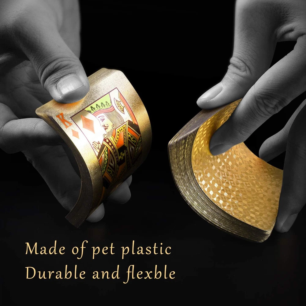 Pack Of 3 Unique Trick Cards Deck- package contain 3 cool black gold and rose gold deck of cards, each one with 55 cards: (13 hearts/13 spades/13 diamonds/13 clubs) plus 2 jokers, 1 pet certificate, measuring 2.5" X 3.5" With a standard index .additional each cards with an attractive gift box with hard plastic easy for preservation, and the shrinkable film wrapped protect the cards. Flexible & Superior Material Standard Card- these playing cards are made of high-grade PET material, plastic is much more durable that paper and will last longer, which feature unmatched flexibility and durability. Scuff and break resistant, won't fade last significantly longer then traditional cards. 100% Waterproof Cards- easy to clean the dirt, fingerprints or smudges on the surface of the card, easy to clean with water and not easy to fade. Feel free to wash them under running water after use. No need to worry about the deck of cards getting wet or dirty, whatever pool, beach, bar,camping et. Sand, water, grass or greasy hands will do no harm to these Delicate Mettalic Foil Patterns- the base card with an eye-catching reflective holographic-type texture,features a deep emboss surface and exquisite appearance, they can bring you a comfortable playing experience,which makes it look valuable and attractive. The characters are printed in a 3d gold/silver ink, it ensures maximum clarity for players to view in play. Fun Party Favor Supplies- get ready to create great moments with friends or family over poker night! If you love to play pinochle, hearts, blackjack, euchre, canasta, bridge, and any other card games.an ideal gift for your lover, family and friends on children's day, christmas day, birthday,bar,new year party ,family gathering party,. Product Description Are you tired form the classic playing cards? Luxury plastic playing cards,if you are collector, it would be an awesome addition to collection. brand new, shiny, dazzling, pure, luxury, a better choice for party. You will receive: 3 pack gold,black, rose gold poker cards Marked cards feature: *designed for poker ,a breathtaking union of style, elegance, and sophistication *poker sized (3.5" X 2.5") *superb hand feel, ideal for shuffling and dealing,not easy to adhere *each deck contains 55 cards (13 hearts/13 spades/13 diamonds/13 clubs) plus 2 jokers, 1 pet certificate *premium plastic coated finish, luxury high-grade gold foil and features a deep emboss surface,refraction texture shining like gold *attractive gift package box with hard plastic,and the shrinkable film wrapped protect the cards *100% pet waterproof-perfect, highly flexible, durable, scratch less, won't fade