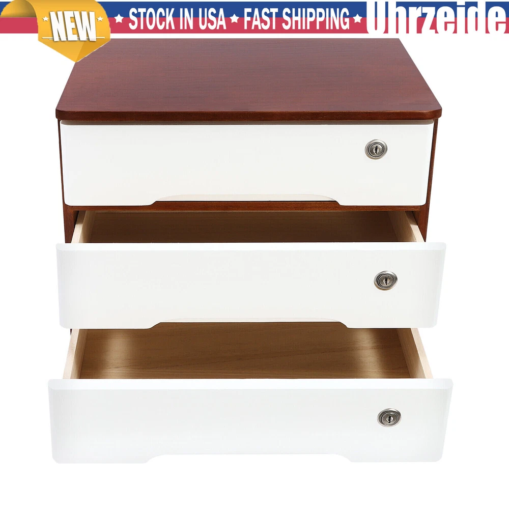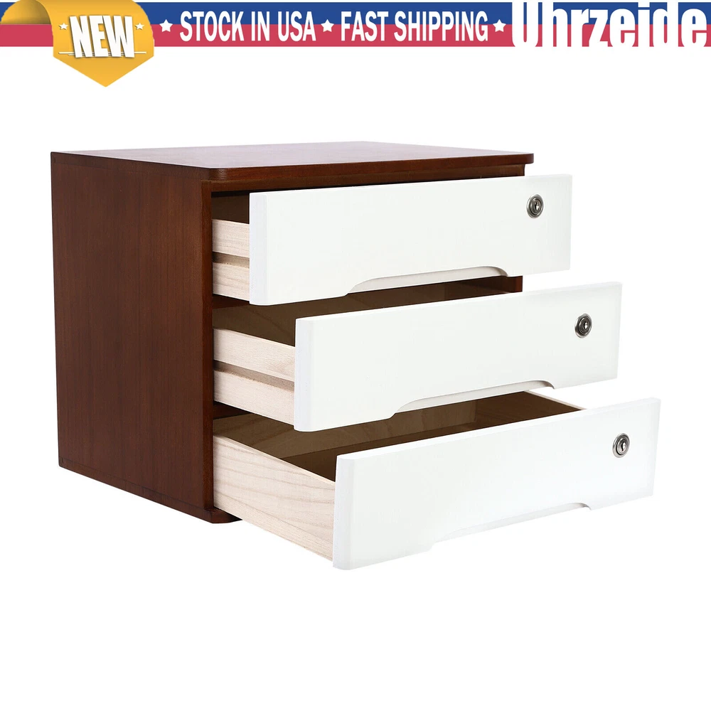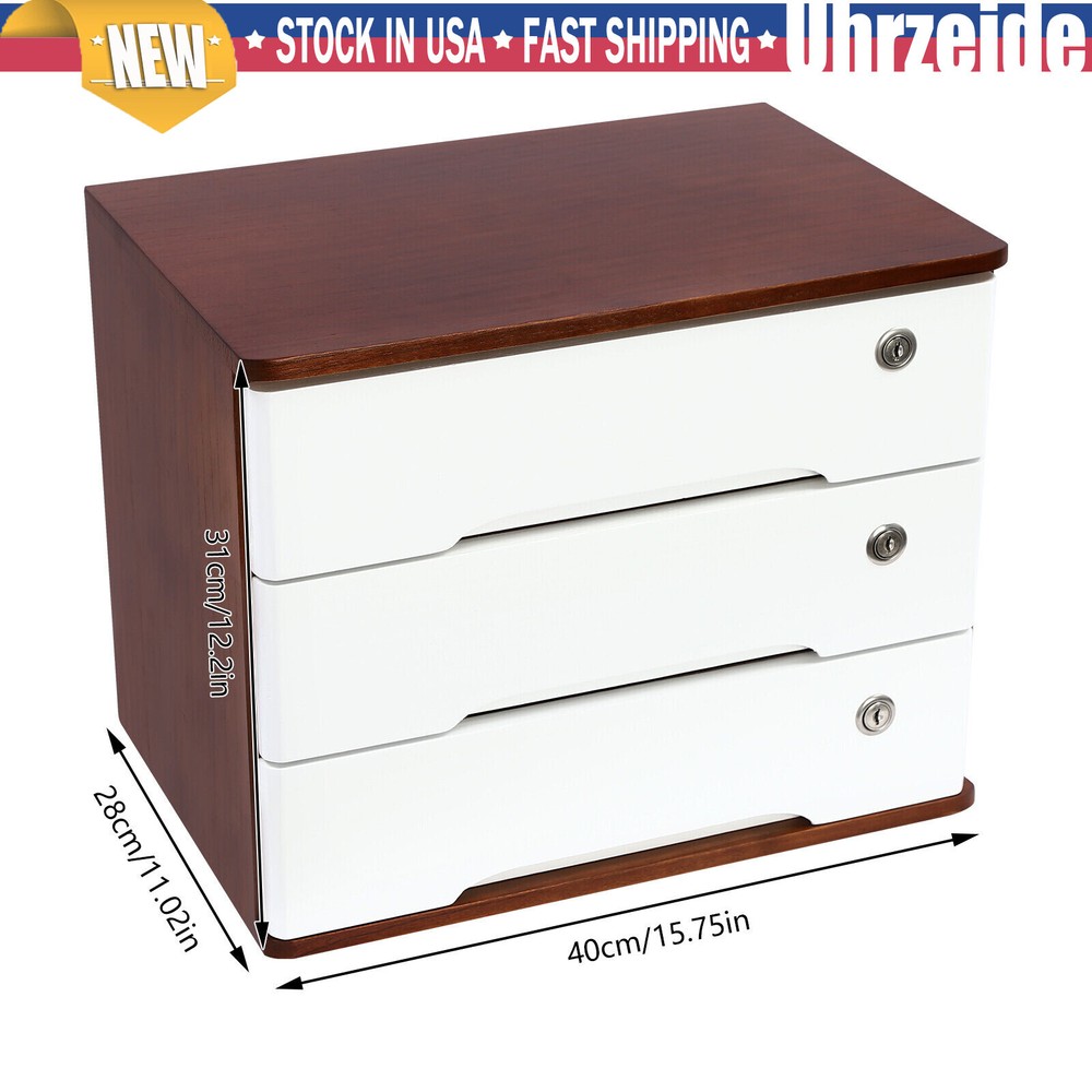 Specification Color: Walnut + White Shape: Rectangle Style: Modern Material: Tung Wood Process: Spray Paint Assembly Required: No Number of Tiers: 3 Number of Locks: 3 Number of Keys: 6 Max. Load Capacity: About 30kg/ 66.14 lbs Gross Weight: 5kg/ 11.02 lbs Package Size: 45*33*36 cm/ 17.72*12.99*14.17 in Product Size: 40*28*31 cm/ 15.75*11.02*12.2 in Package Included 1* 3-Tier Storage Cabinet 6* Keys 4* Anti-slip Pads Notes Please allow the slight color difference caused by the shooting light and the 1-3 cm error due to manual measurement, and make sure you do not mind before ordering. 3 Drawer Desktop File Cabinet Storage Filing Cabinet Lockable Office File Sorter Description Do you feel annoyed by too many items on your desktop that are cluttered and unorganized? Our 3-tier storage cabinet can help you solve this problem. This product is made of high-quality material, which ensures a long service life. The 3 drawers are convenient for you to organize different daily items, and the locking design effective ly protects your privacy. It can effectively help you reduce the pressure on your countertop, which is an ideal choice for you. Key Features Good Material: This product is made of high-quality tung wood with a spray painting process, which is hard, strong, anti-corrosion , not easy to deform, and has a long service life. Categorized Storage: The product has 3 drawers, so you can categorize and store your items in different drawers to give your desktop a neat look. In addition, the top can also be used to hold items, allowing you to maximize the use of your space. Protect Your Privacy: This product features the locking design that locks the drawer and can only be opened with the included key to protect your property. Strong Load-bearing Capacity: High-quality material and stable construction give the product a weight capacity of about 66.14 lbs , so you can store items on it with confidence. Save Space: This product is small in size ( 15.75*11.02*12.2 in) , fully utilizing vertical space, thereby reducing the burden on the countertop. Ready to Use: This product does not require assembly, and you can start using it once you receive it, saving the tedious installation process and making it more convenient. Effortless Cleaning: Thanks to the smooth surface and simple construction, you can easily wipe off the dirt on it with a soft cloth. Thoughtful Gift: This is an ideal gift for colleagues, friends, and family to help them organize their belongings and keep their desks tidy. Good Customer Service: We stand behind all our guests and look forward to assisting you with your purchase. It is our pleasure to answer your confusion and questions. The end of the story between us is not "we sell and you buy". Details Comfortable Handles: Each drawer has an ergonomic handle that is not only comfortable but also easy for you to pull the drawer. Smooth Edge: The rounded and smooth edges not only add to the aesthetics of the product but also improve the safety of use. Anti-slip Pad: It can keep the product stable and less likely to slip off while you use it. Application This product can be used in an office, study, bedroom, dresser, kitchen, etc. It is suitable for organizing documents, files, pens, notebooks, handy stickers, remote controls, staplers, cosmetics, greeting cards, tickets, business cards, stationery, jewelry, hair accessories, and so on. Specification Color: Walnut + White Shape: Rectangle Style: Modern Material: Tung Wood Process: Spray Paint Assembly Required: No Number of Tiers: 3 Number of Locks: 3 Number of Keys: 6 Max. Load Capacity: About 30kg/ 66.14 lbs Gross Weight: 5kg/ 11.02 lbs Package Size: 45*33*36 cm/ 17.72*12.99*14.17 in Product Size: 40*28*31 cm/ 15.75*11.02*12.2 in Package Included 1* 3-Tier Storage Cabinet 6* Keys 4* Anti-slip Pads Notes Please allow the slight color difference caused by the shooting light and the 1-3 cm error due to manual measurement, and make sure you do not mind before ordering. Payment Delivery details Terms of sales About us Contact us Payment We accept ebay payment 。 Fees such as import duties, taxes are not included in the item price or shipping costs. These charges are the buyer's responsibility. Delivery details Shipping: 2-9 working days to: USA Terms of sales We maintain high standards of excellence and strive for hundred percent customer satisfaction. Feedback is very important to us. We hope that you contact us immediately before you give neutral or negative feedback, so that we can address your concerns. It is impossible to address issues if we do not know about them! About us Your satis faction is our ultimate goal. We work hard to earn your trust and future business. Our certified technicians have tested each item before shipping. The unit comes with 1 year limited warranty on all manufacturing defects. a) If you receive a defective item, you may return it or ask for a discount. Please contact us within 14 days after you receive the package. b) What you returned must be intact and in its original packaging as re? u. Customer is responsible for shipping costs of the returned item. c) We will cover the cost of shipping back t with the shipping rate indicated in the registration page. We will send you a new unit or refund the full payment you paid. Thank you. Contact us Business Hour Business Hour: Monday To Friday: 8:30 AM to 5:00 PM (Beijing China time) Due to time zones, our reply to your questions may not be immediately. But within above working time, we will reply your email within 24 hours. If it's non-workdays, please kindly be patient and wait till Monday. Please contact us with ebay message. Please feel free to contact us if you have any questions. Monday To Friday: 8:30 AM to 5:00 PM (Beijing China time) Due to time zones, our reply to your questions may not be immediately. But within above working time, we will reply your email within 24 hours. If it's non-workdays, please kindly be patient and wait till Monday. Please contac