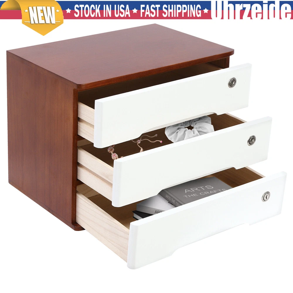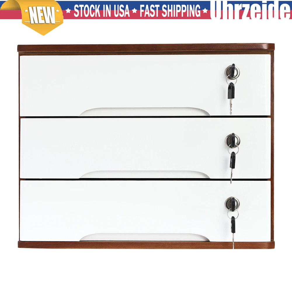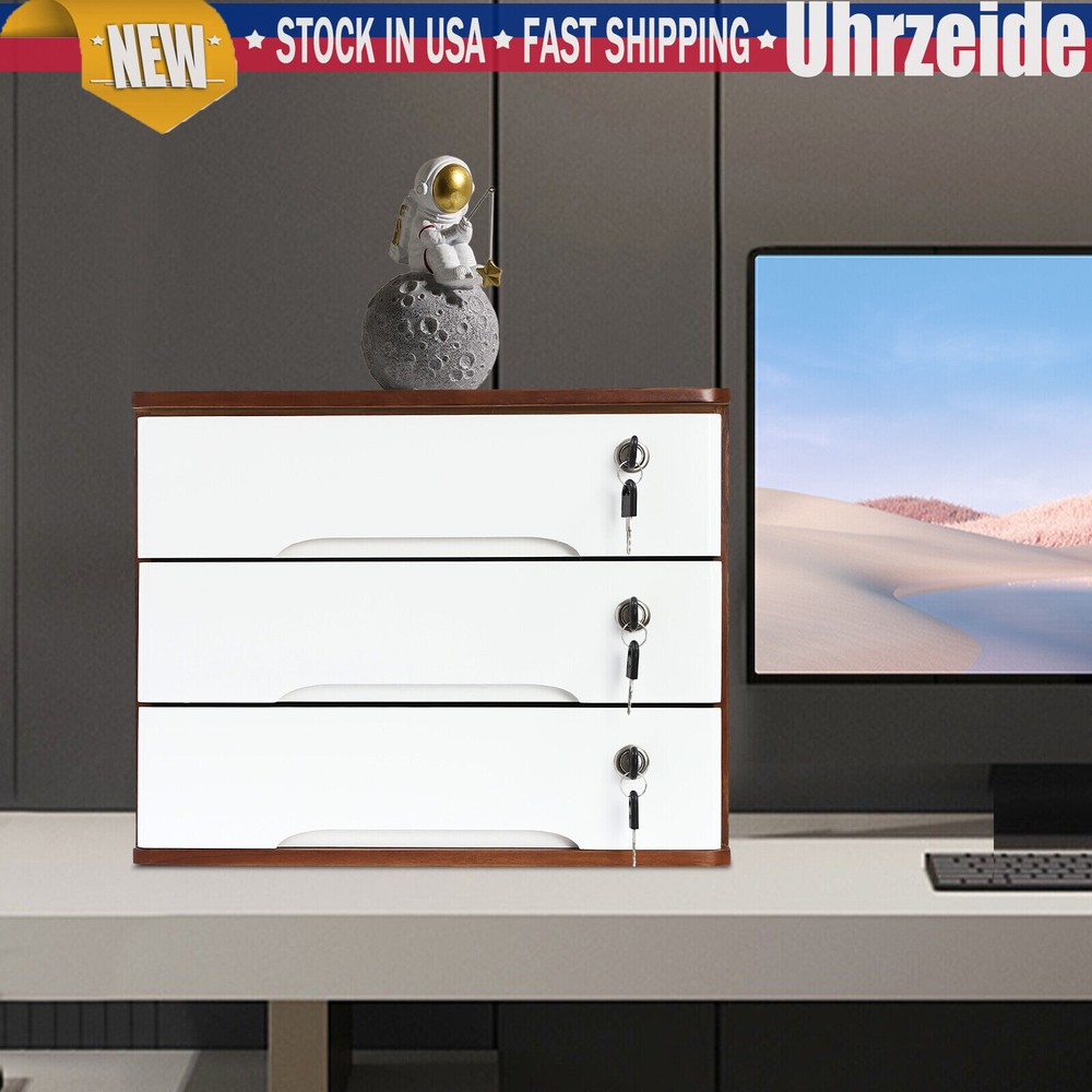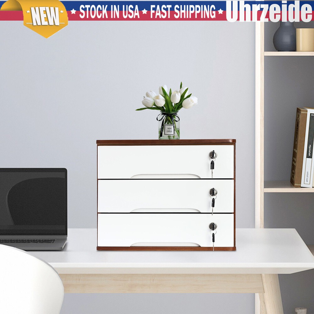 Specification Color: Walnut + White Shape: Rectangle Style: Modern Material: Tung Wood Process: Spray Paint Assembly Required: No Number of Tiers: 3 Number of Locks: 3 Number of Keys: 6 Max. Load Capacity: About 30kg/ 66.14 lbs Gross Weight: 5kg/ 11.02 lbs Package Size: 45*33*36 cm/ 17.72*12.99*14.17 in Product Size: 40*28*31 cm/ 15.75*11.02*12.2 in Package Included 1* 3-Tier Storage Cabinet 6* Keys 4* Anti-slip Pads Notes Please allow the slight color difference caused by the shooting light and the 1-3 cm error due to manual measurement, and make sure you do not mind before ordering. 3 Drawer Desktop File Cabinet Storage Filing Cabinet Lockable Office File Sorter Description Do you feel annoyed by too many items on your desktop that are cluttered and unorganized? Our 3-tier storage cabinet can help you solve this problem. This product is made of high-quality material, which ensures a long service life. The 3 drawers are convenient for you to organize different daily items, and the locking design effective ly protects your privacy. It can effectively help you reduce the pressure on your countertop, which is an ideal choice for you. Key Features Good Material: This product is made of high-quality tung wood with a spray painting process, which is hard, strong, anti-corrosion , not easy to deform, and has a long service life. Categorized Storage: The product has 3 drawers, so you can categorize and store your items in different drawers to give your desktop a neat look. In addition, the top can also be used to hold items, allowing you to maximize the use of your space. Protect Your Privacy: This product features the locking design that locks the drawer and can only be opened with the included key to protect your property. Strong Load-bearing Capacity: High-quality material and stable construction give the product a weight capacity of about 66.14 lbs , so you can store items on it with confidence. Save Space: This product is small in size ( 15.75*11.02*12.2 in) , fully utilizing vertical space, thereby reducing the burden on the countertop. Ready to Use: This product does not require assembly, and you can start using it once you receive it, saving the tedious installation process and making it more convenient. Effortless Cleaning: Thanks to the smooth surface and simple construction, you can easily wipe off the dirt on it with a soft cloth. Thoughtful Gift: This is an ideal gift for colleagues, friends, and family to help them organize their belongings and keep their desks tidy. Good Customer Service: We stand behind all our guests and look forward to assisting you with your purchase. It is our pleasure to answer your confusion and questions. The end of the story between us is not "we sell and you buy". Details Comfortable Handles: Each drawer has an ergonomic handle that is not only comfortable but also easy for you to pull the drawer. Smooth Edge: The rounded and smooth edges not only add to the aesthetics of the product but also improve the safety of use. Anti-slip Pad: It can keep the product stable and less likely to slip off while you use it. Application This product can be used in an office, study, bedroom, dresser, kitchen, etc. It is suitable for organizing documents, files, pens, notebooks, handy stickers, remote controls, staplers, cosmetics, greeting cards, tickets, business cards, stationery, jewelry, hair accessories, and so on. Specification Color: Walnut + White Shape: Rectangle Style: Modern Material: Tung Wood Process: Spray Paint Assembly Required: No Number of Tiers: 3 Number of Locks: 3 Number of Keys: 6 Max. Load Capacity: About 30kg/ 66.14 lbs Gross Weight: 5kg/ 11.02 lbs Package Size: 45*33*36 cm/ 17.72*12.99*14.17 in Product Size: 40*28*31 cm/ 15.75*11.02*12.2 in Package Included 1* 3-Tier Storage Cabinet 6* Keys 4* Anti-slip Pads Notes Please allow the slight color difference caused by the shooting light and the 1-3 cm error due to manual measurement, and make sure you do not mind before ordering. Payment Delivery details Terms of sales About us Contact us Payment We accept ebay payment 。 Fees such as import duties, taxes are not included in the item price or shipping costs. These charges are the buyer's responsibility. Delivery details Shipping: 2-9 working days to: USA Terms of sales We maintain high standards of excellence and strive for hundred percent customer satisfaction. Feedback is very important to us. We hope that you contact us immediately before you give neutral or negative feedback, so that we can address your concerns. It is impossible to address issues if we do not know about them! About us Your satis faction is our ultimate goal. We work hard to earn your trust and future business. Our certified technicians have tested each item before shipping. The unit comes with 1 year limited warranty on all manufacturing defects. a) If you receive a defective item, you may return it or ask for a discount. Please contact us within 14 days after you receive the package. b) What you returned must be intact and in its original packaging as re? u. Customer is responsible for shipping costs of the returned item. c) We will cover the cost of shipping back t with the shipping rate indicated in the registration page. We will send you a new unit or refund the full payment you paid. Thank you. Contact us Business Hour Business Hour: Monday To Friday: 8:30 AM to 5:00 PM (Beijing China time) Due to time zones, our reply to your questions may not be immediately. But within above working time, we will reply your email within 24 hours. If it's non-workdays, please kindly be patient and wait till Monday. Please contact us with ebay message. Please feel free to contact us if you have any questions. Monday To Friday: 8:30 AM to 5:00 PM (Beijing China time) Due to time zones, our reply to your questions may not be immediately. But within above working time, we will reply your email within 24 hours. If it's non-workdays, please kindly be patient and wait till Monday. Please contac