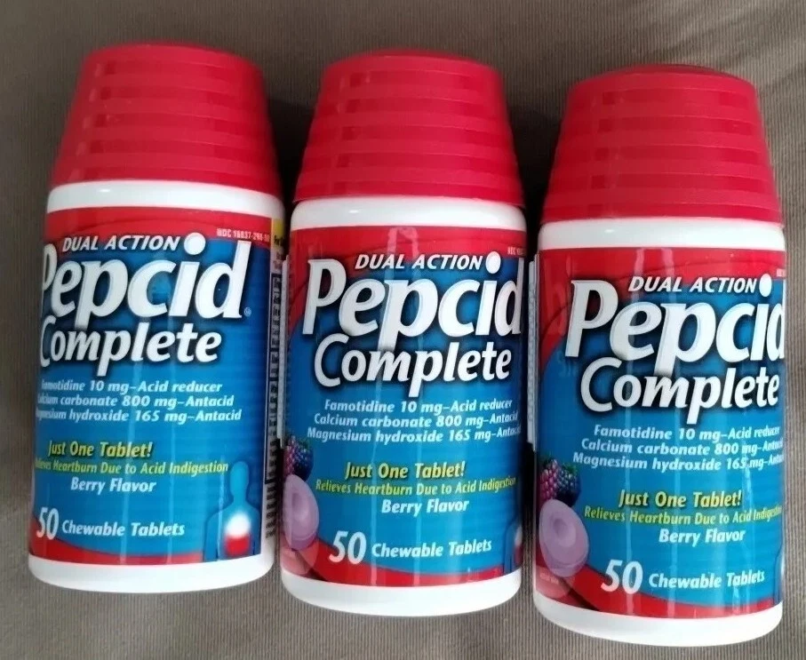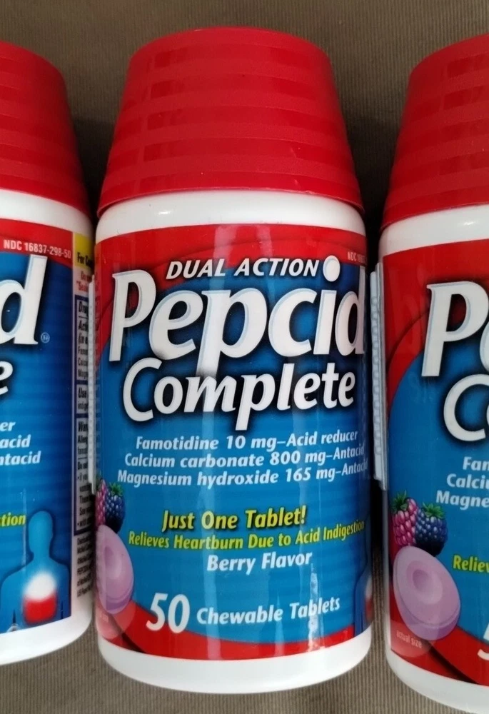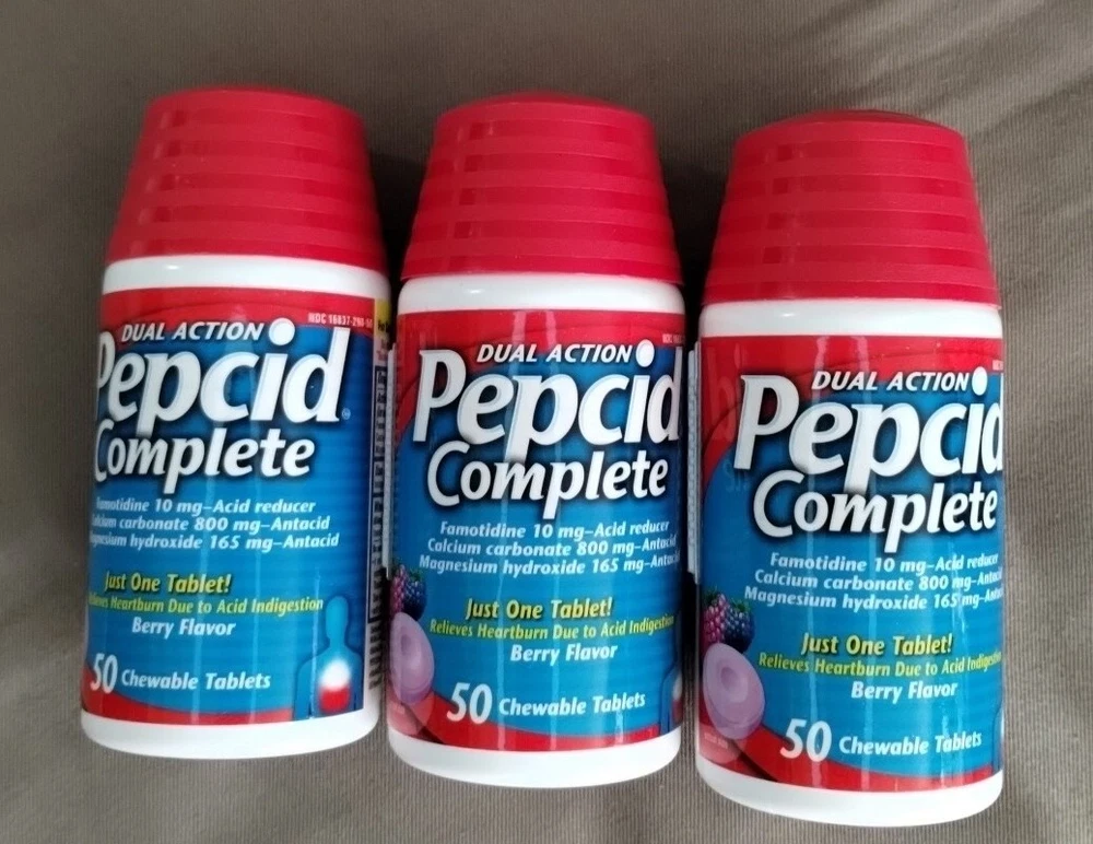 Lot of 3 NEW Dual Action Pepcid Complete Acid Reducer + Antacid Heartburn Relief Chewable Tablets, Berry Flavor, 50 Count Each (50x3=150 Chewable Tablets Total). Expirations in 2026 Free Shipping!